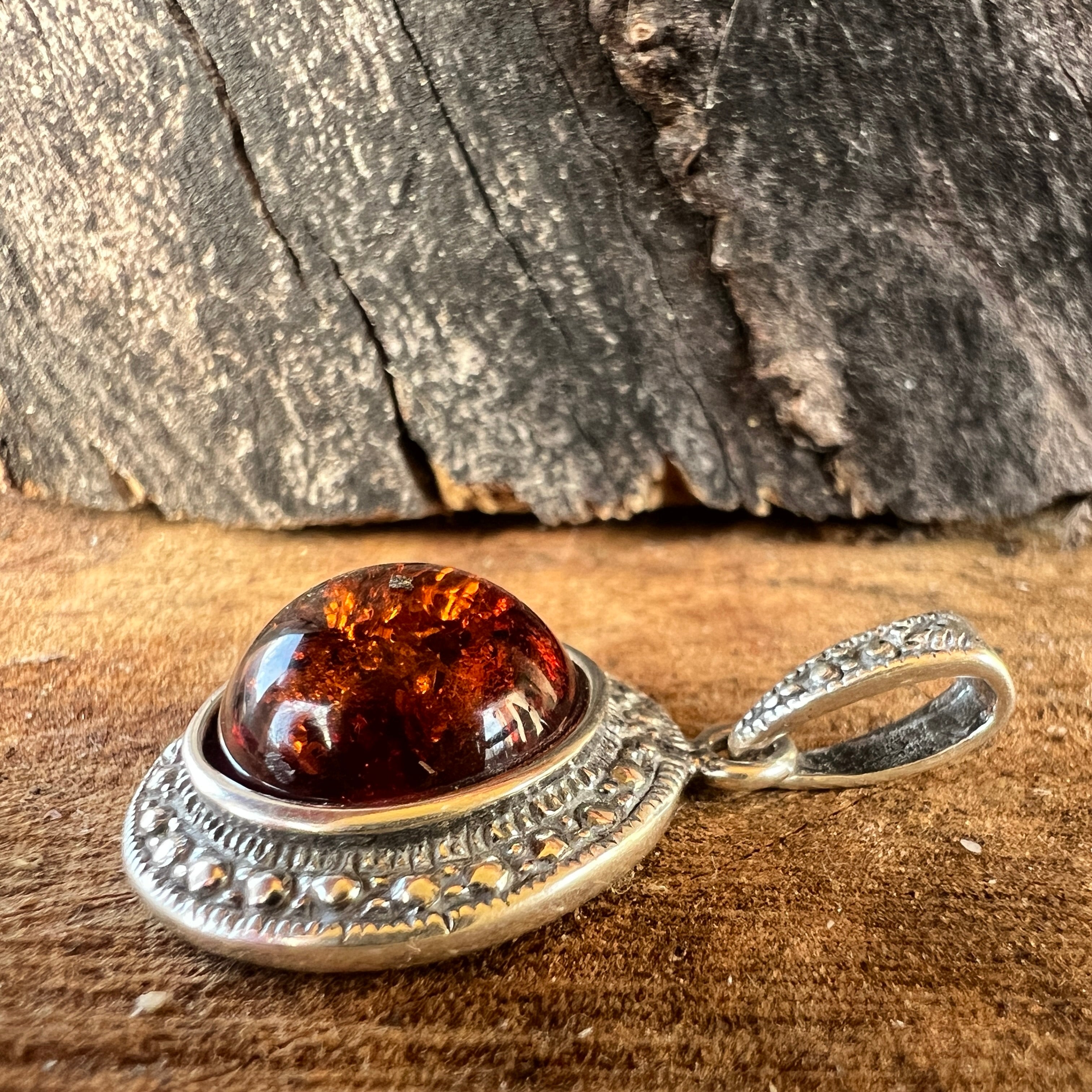 Ревюта – Сребърен висулка с кехлибар Amber24