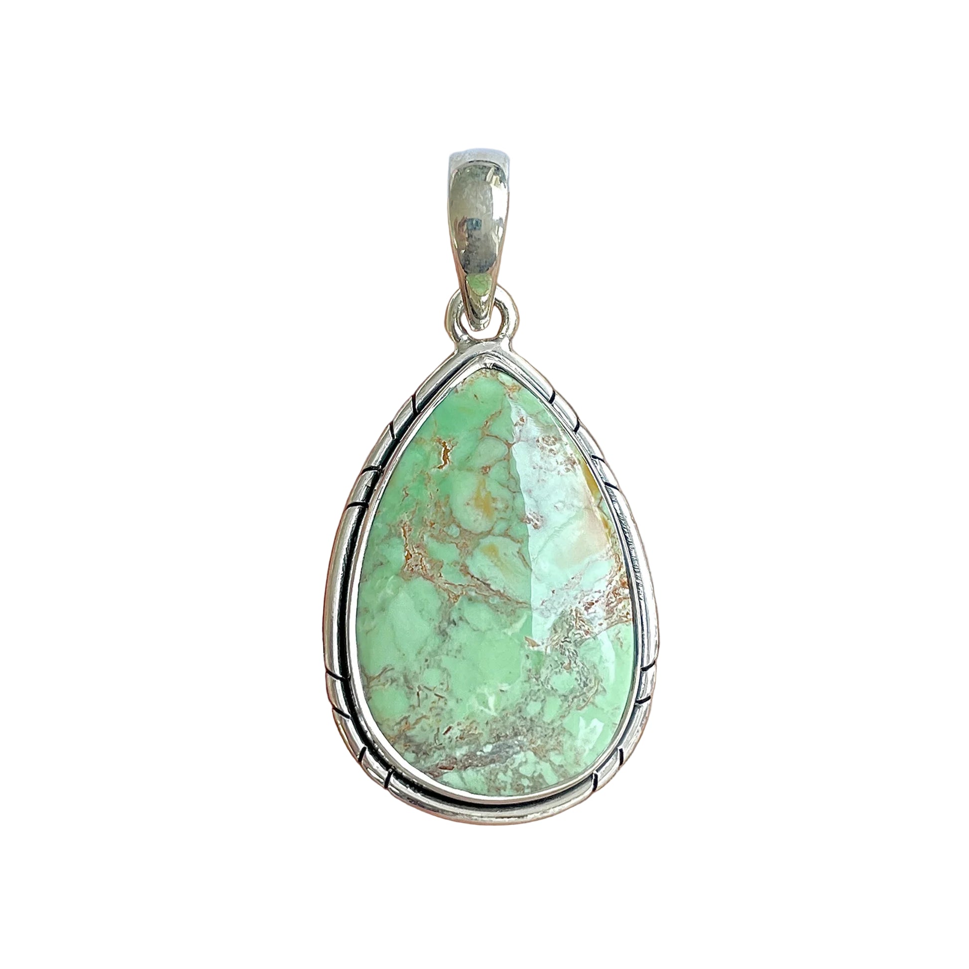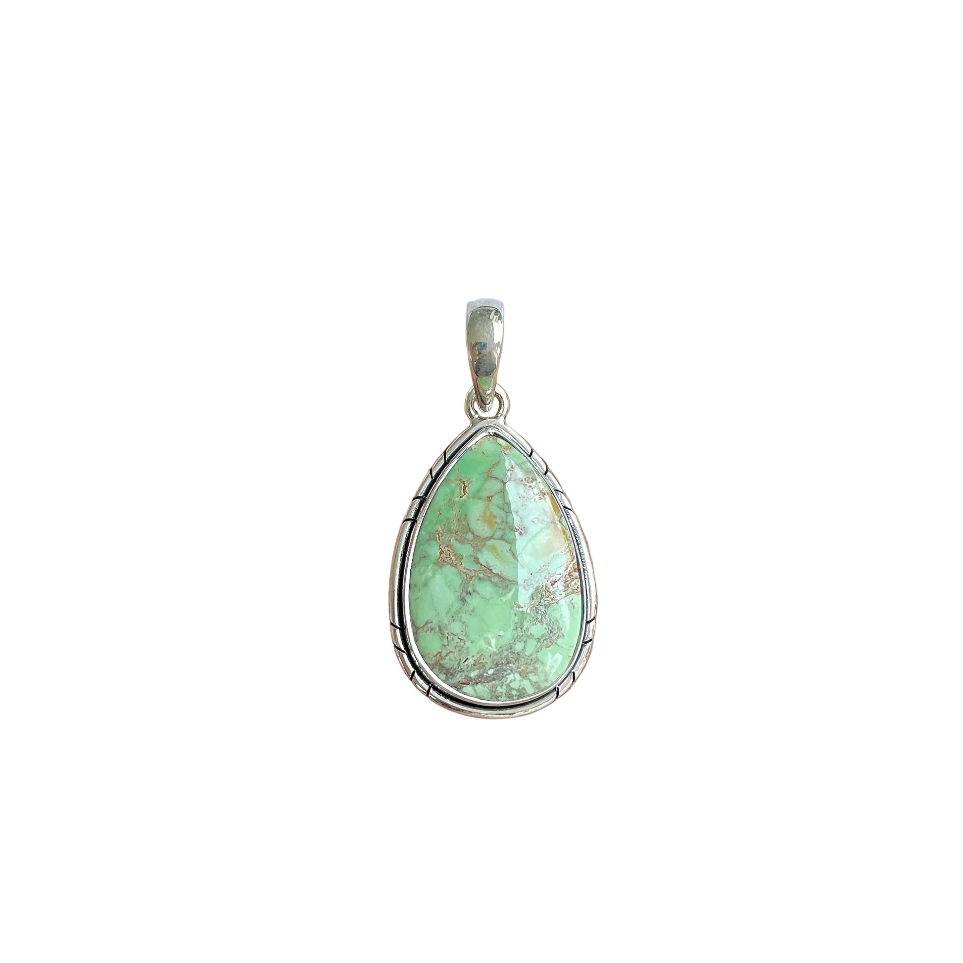 Този уникален медальон от варисцит улавя красотата на природата в баланса между свежата зеленина и топлите земни тонове. Неговите естествени жилки, подобни на минни карти, изрисувани от времето, създават връзката между сърцето и корените, между небето и земята.