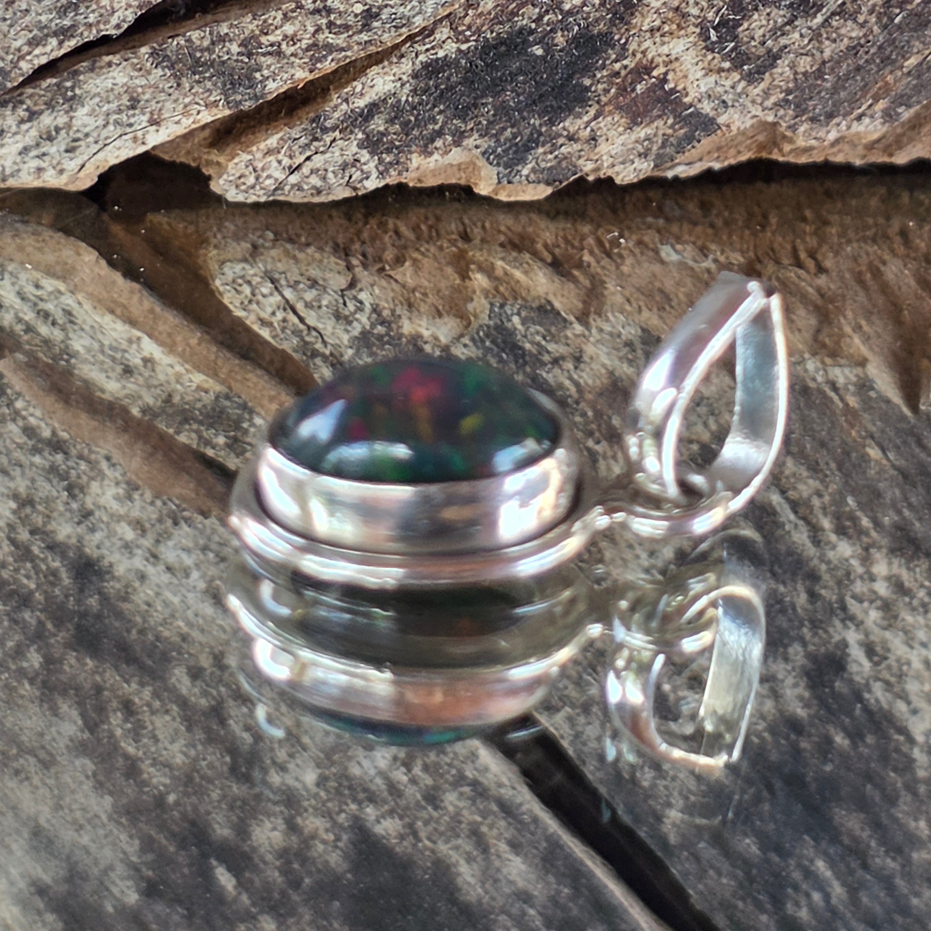 Описание - Сребърен медальон с етиопски черен опал | Модел 3