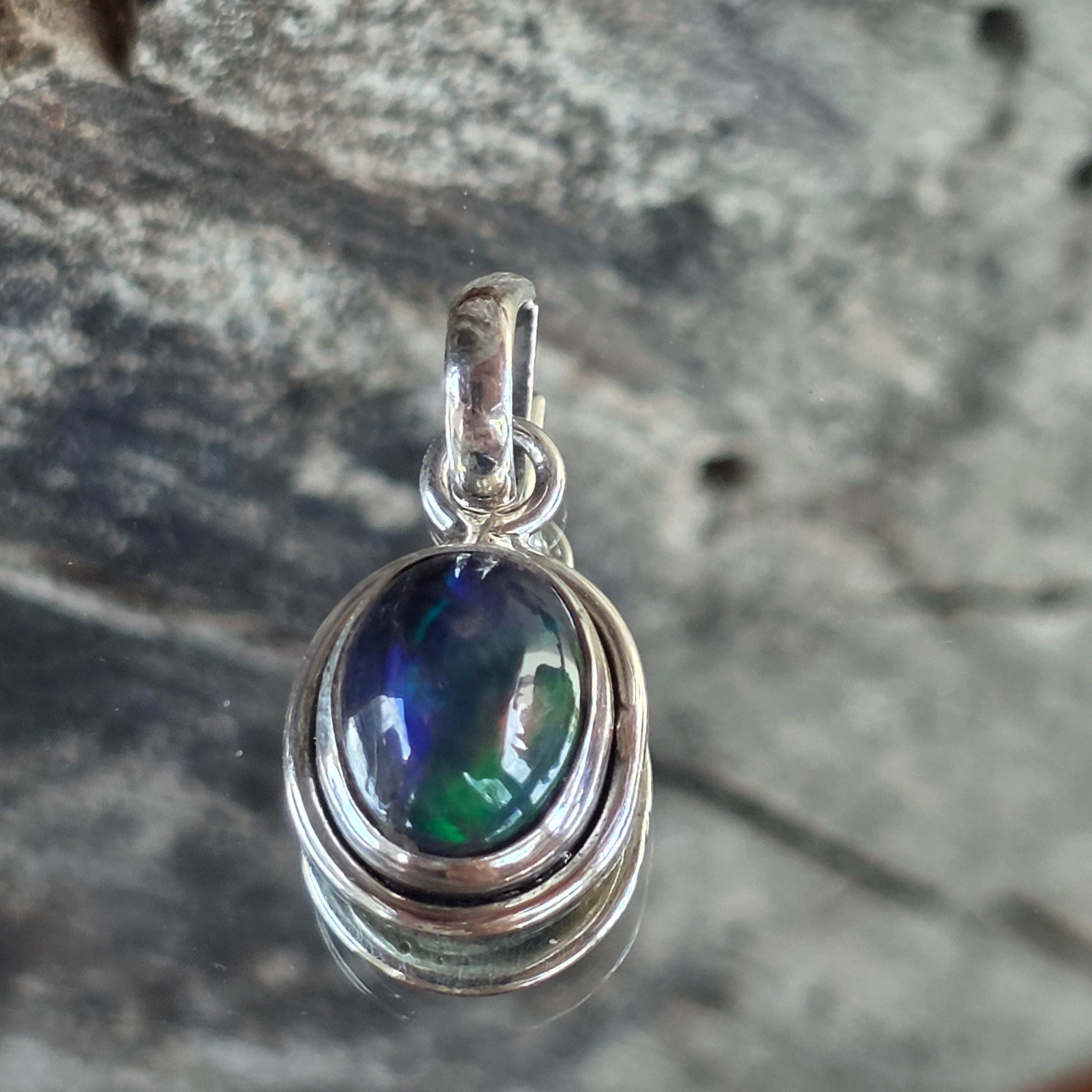 Описание - Сребърен медальон с етиопски черен опал | Модел 4