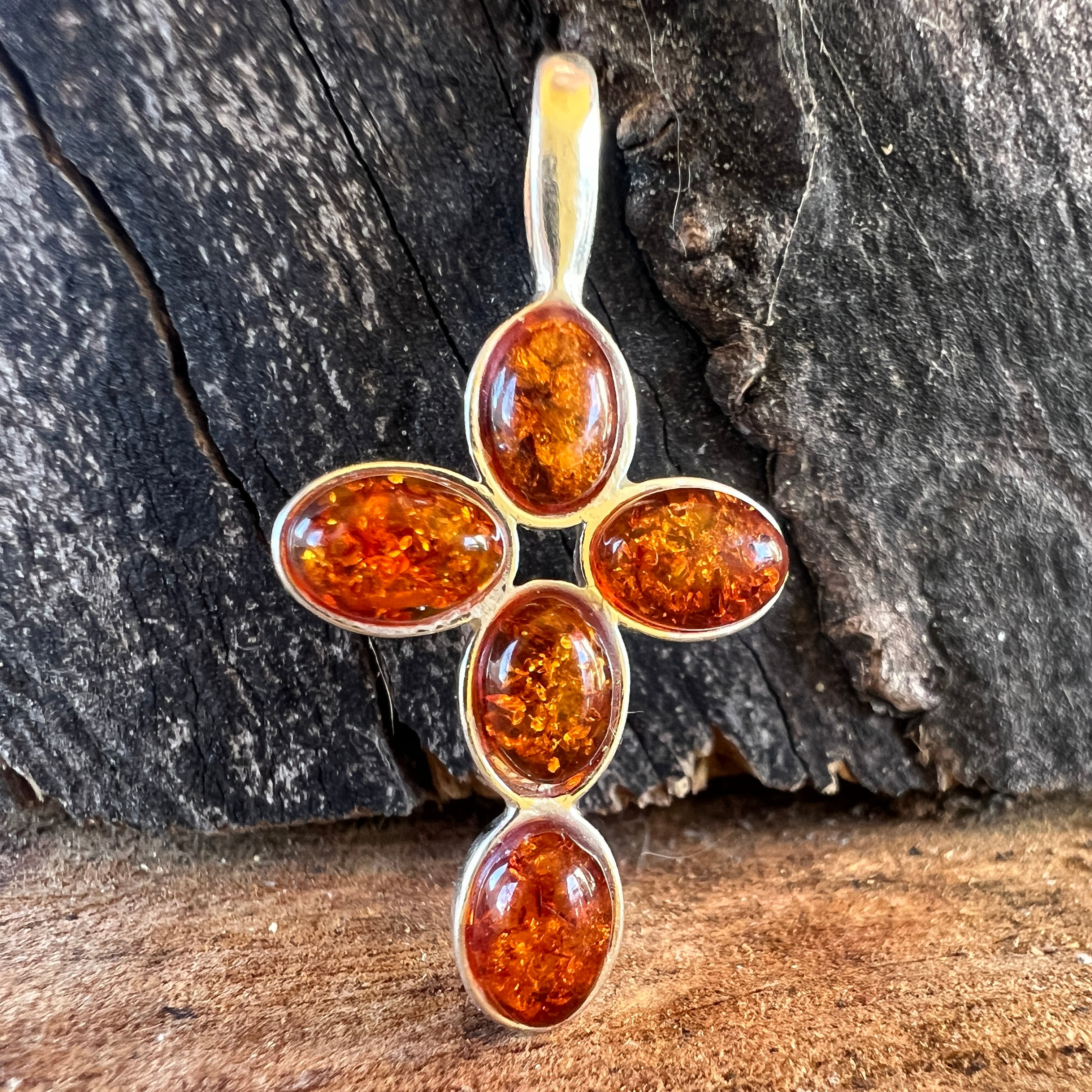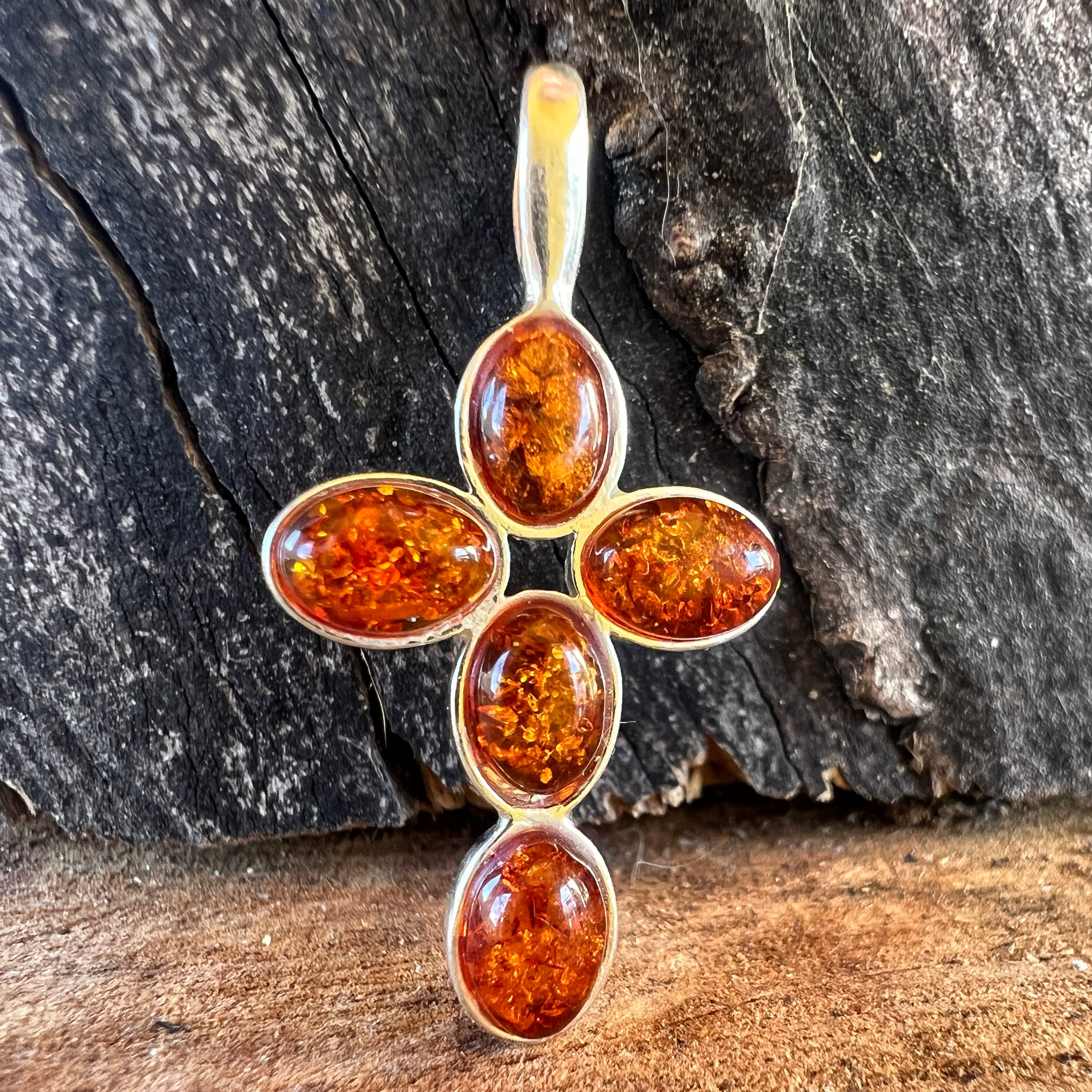 Ревюта – Сребърен медальон с кехлибар, форма кръст Amber30