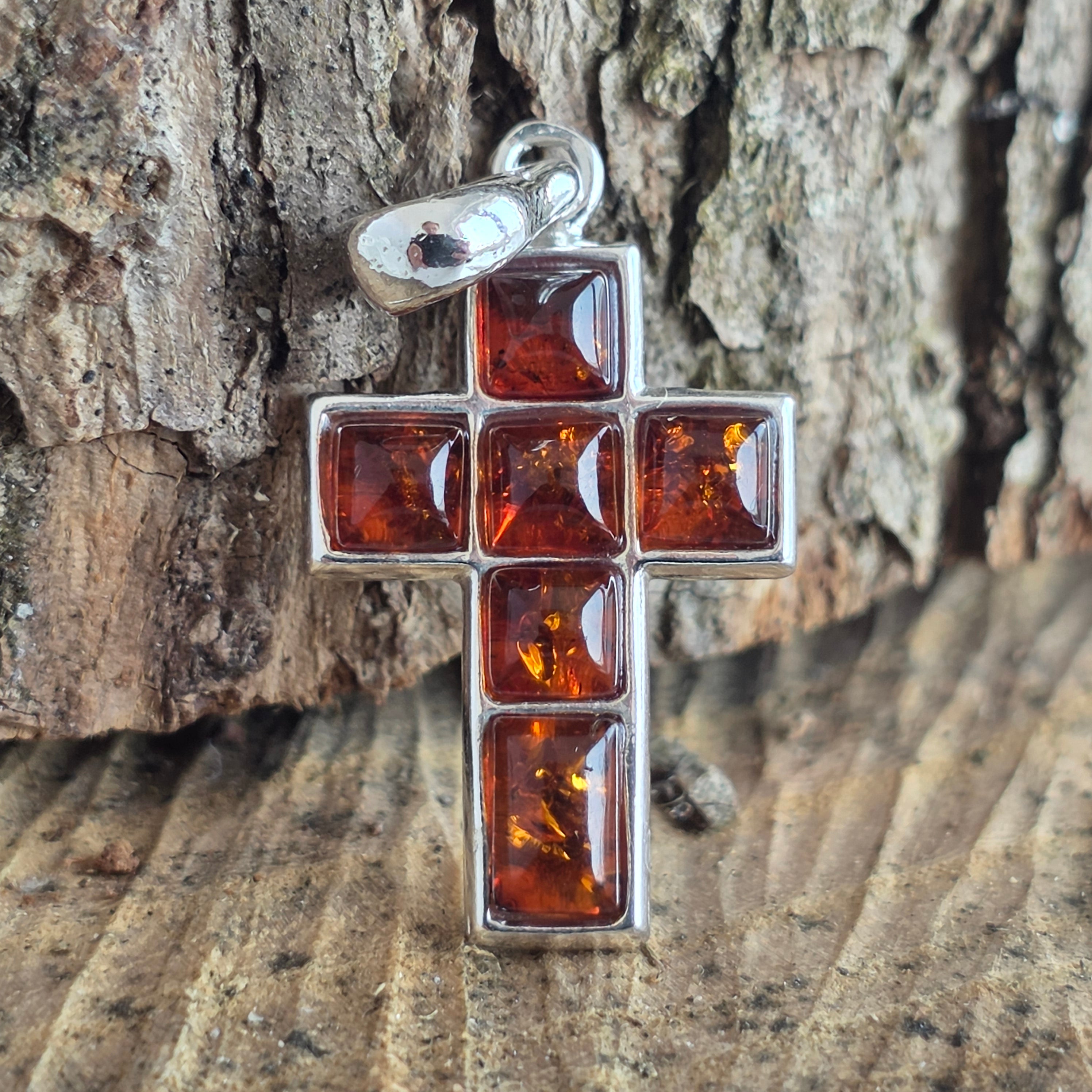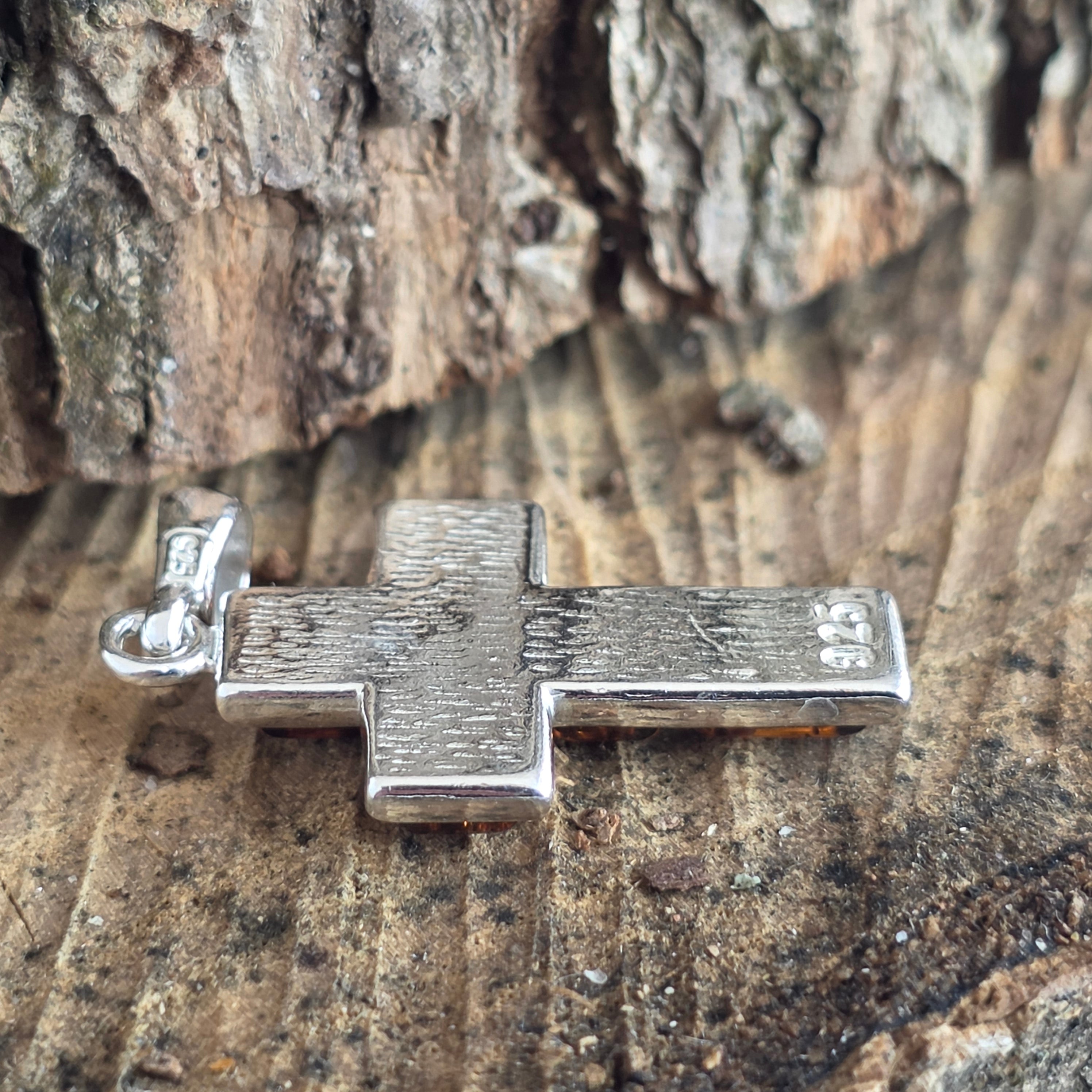 Ревюта - Сребърен медальон с кехлибар във форма на кръст Amber30
