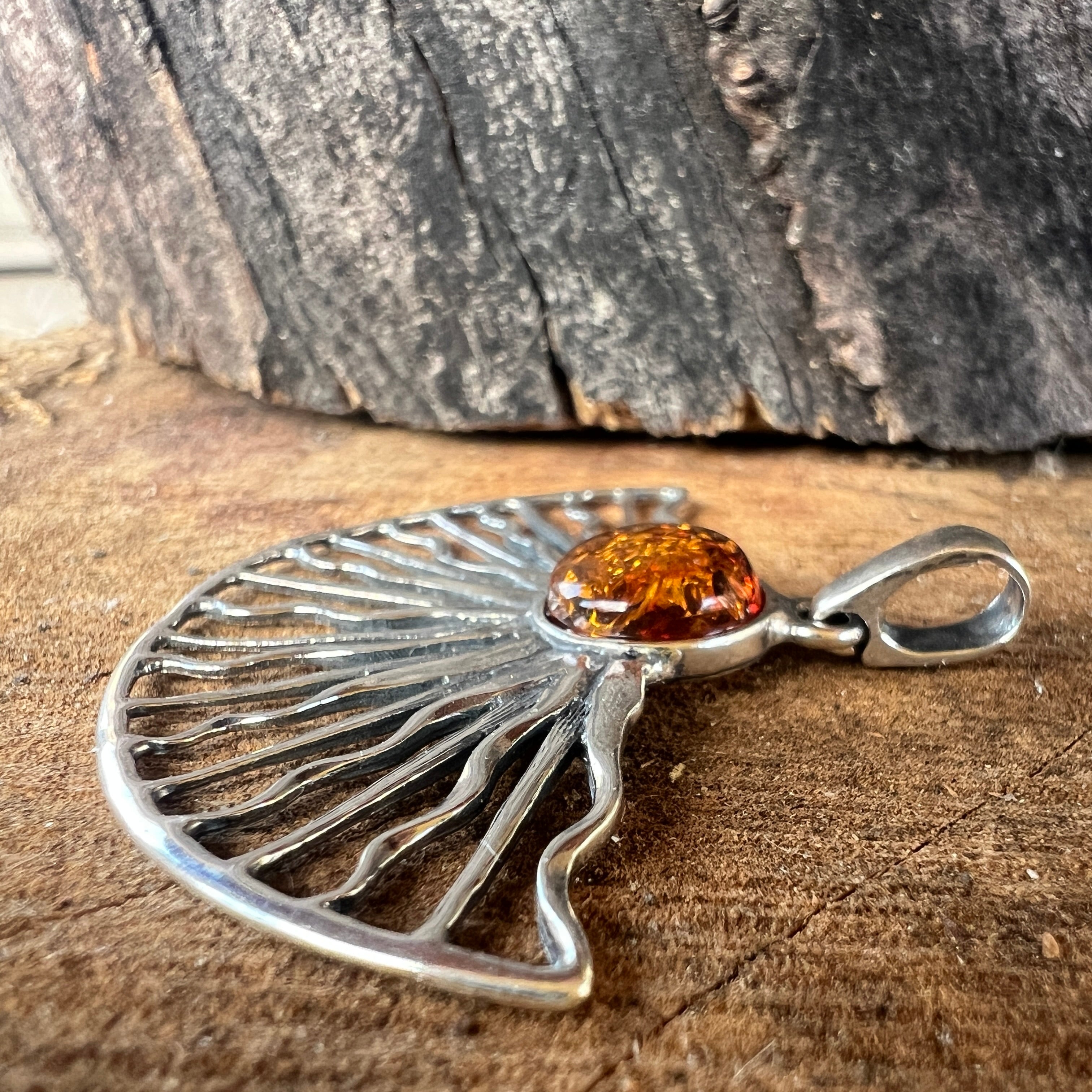 Ревюта – Сребърен медальон с кехлибар Amber19