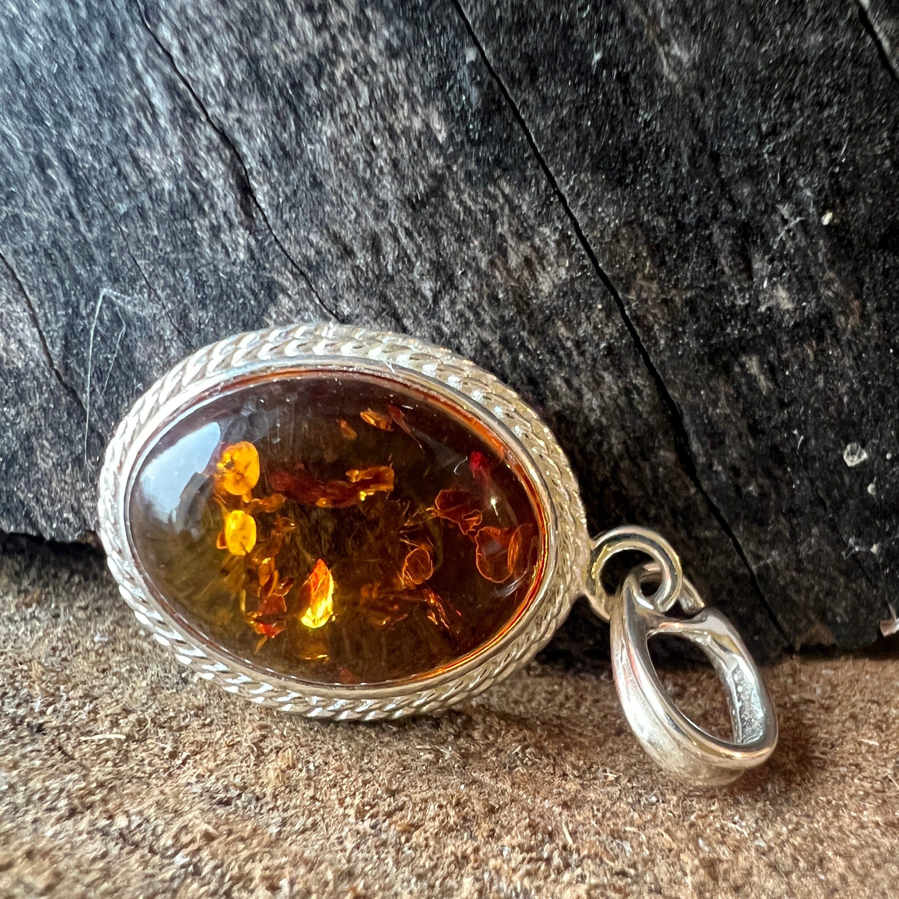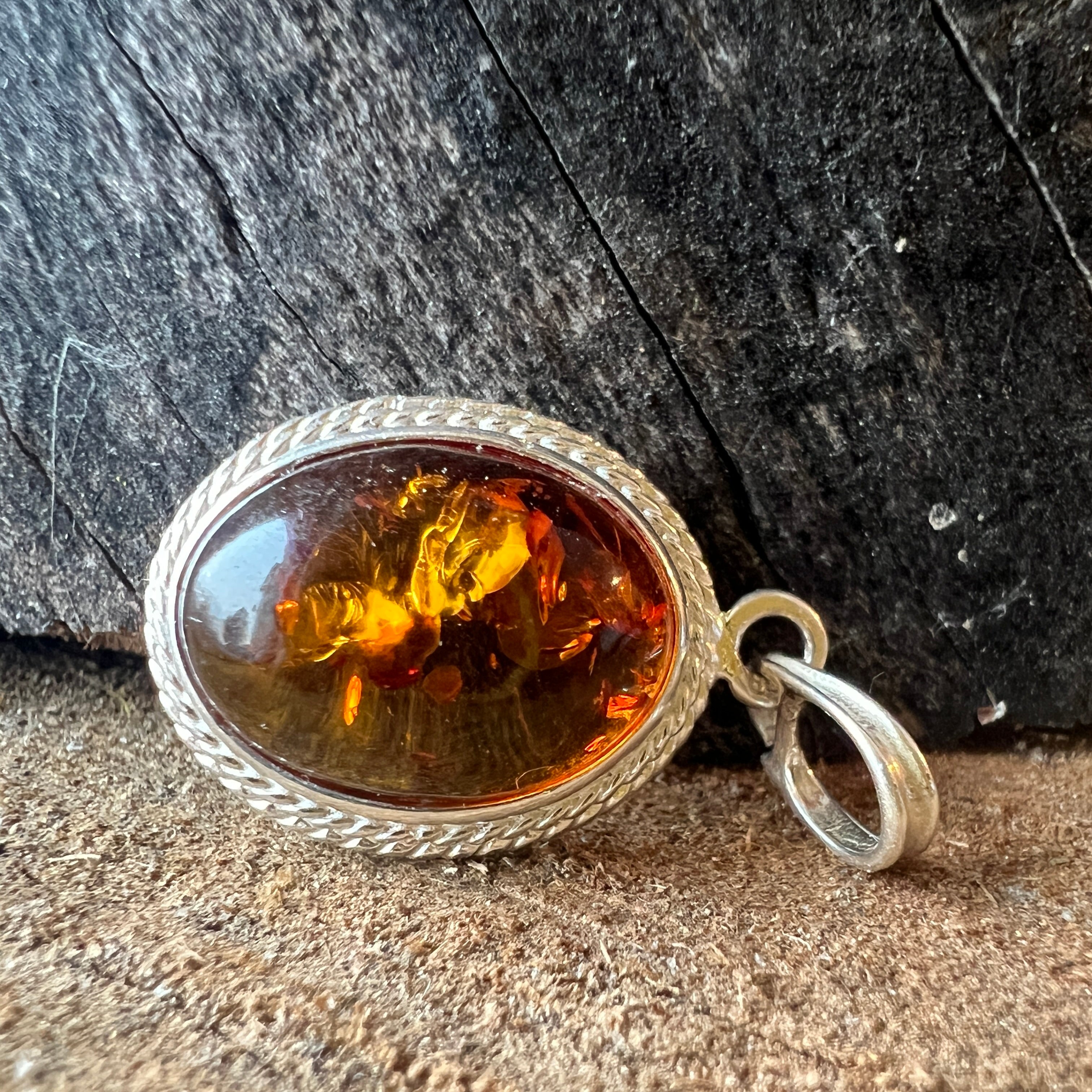 Ревюта – Сребърен медальон с кехлибар Amber46