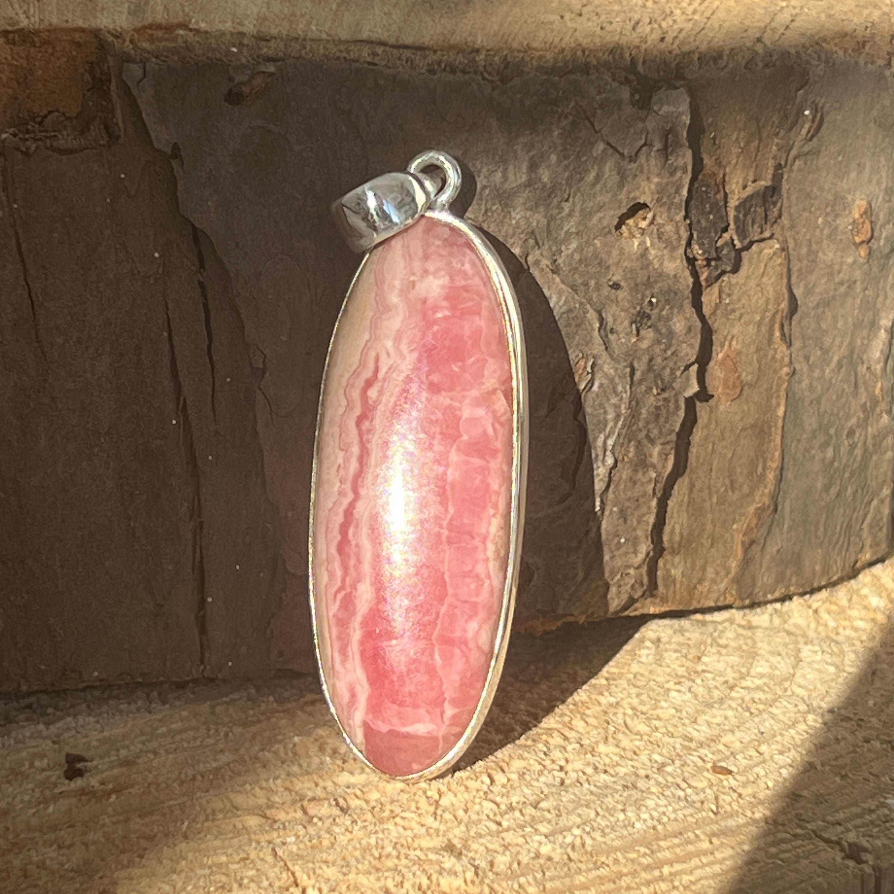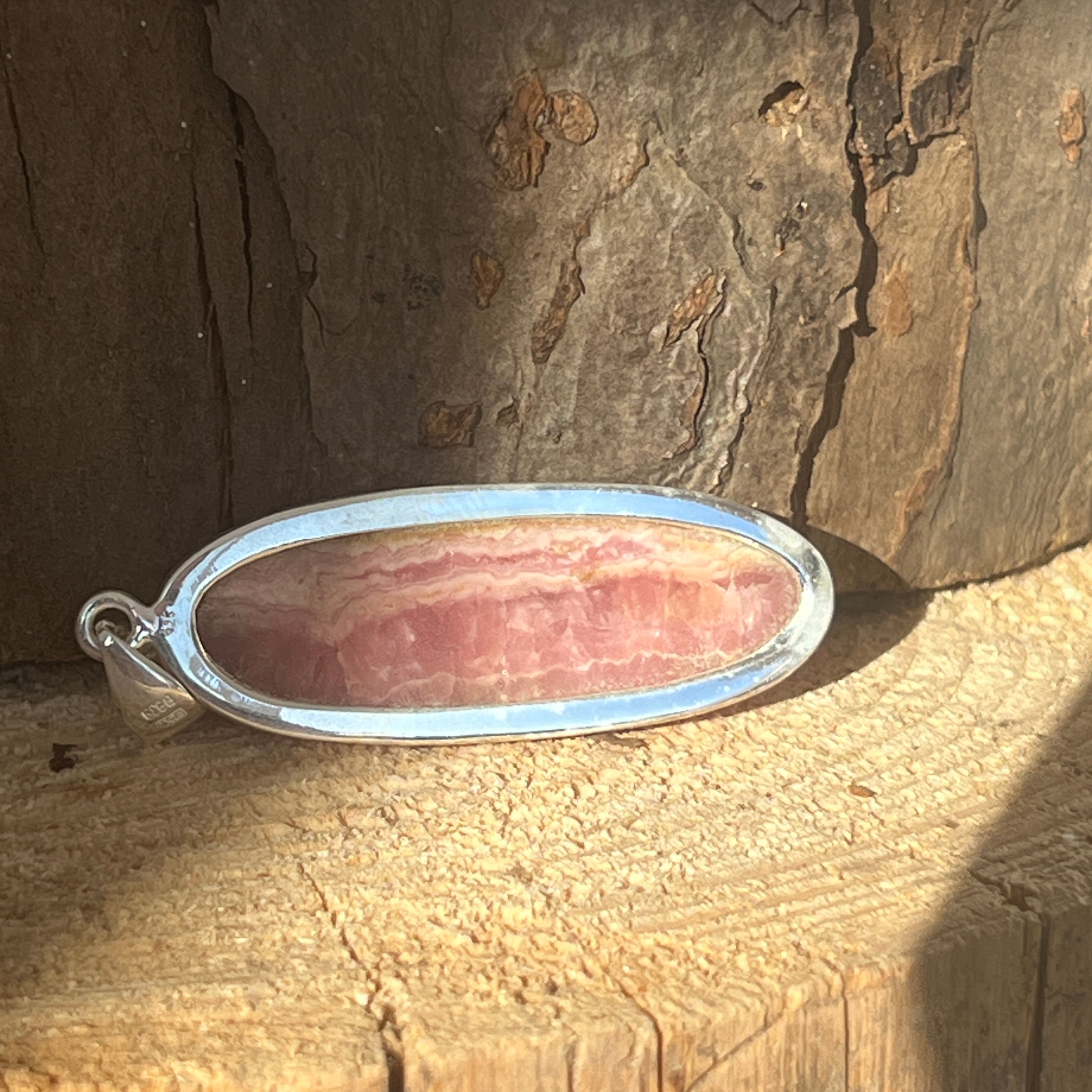 Висулка, която съчетава редката красота на аржентинския родокрозит с благородството на среброто, създадена за тези, които ценят наистина специалните бижута.