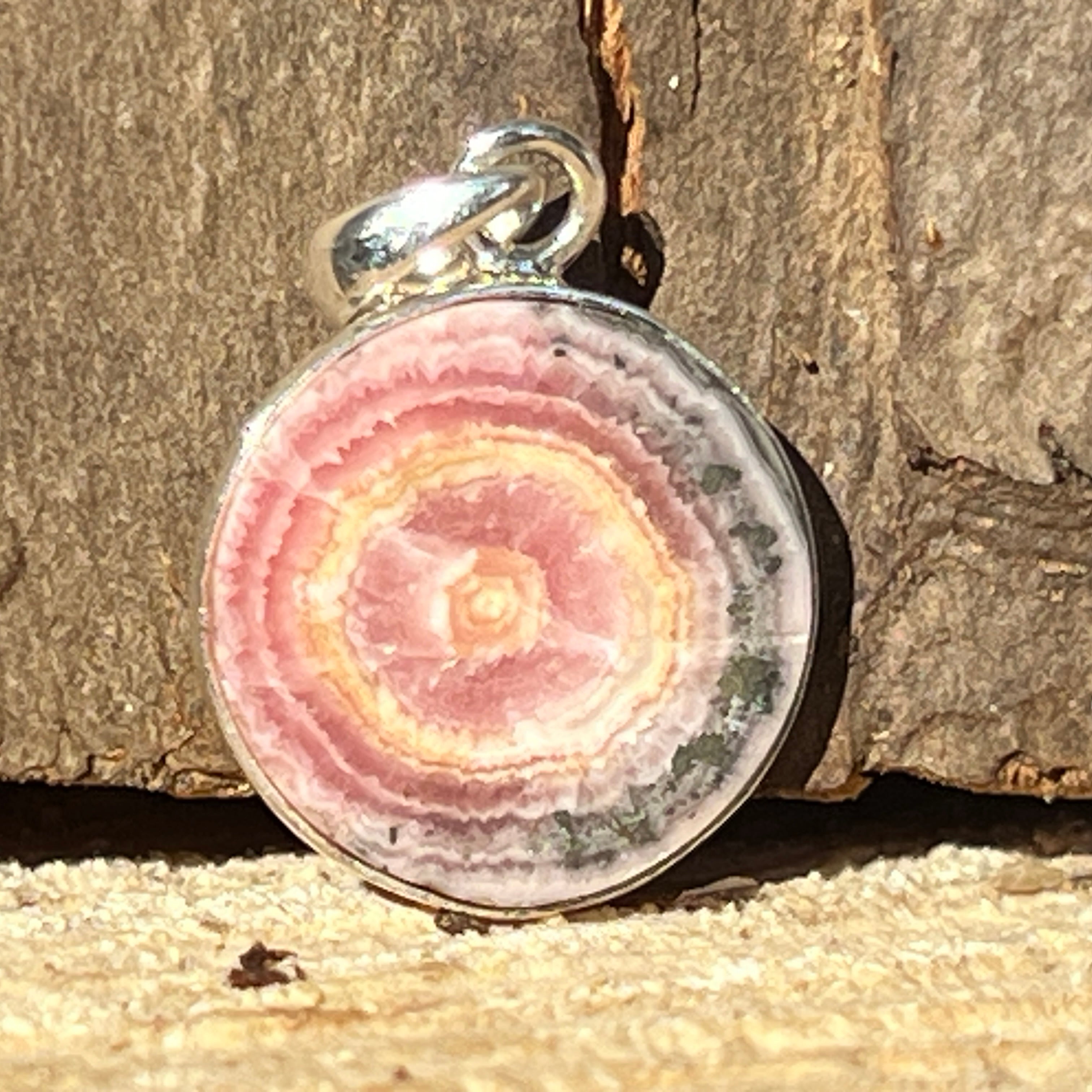 Висулка, която съчетава редката красота на аржентинския родокрозит с благородството на среброто, създадена за тези, които ценят наистина специалните бижута.
