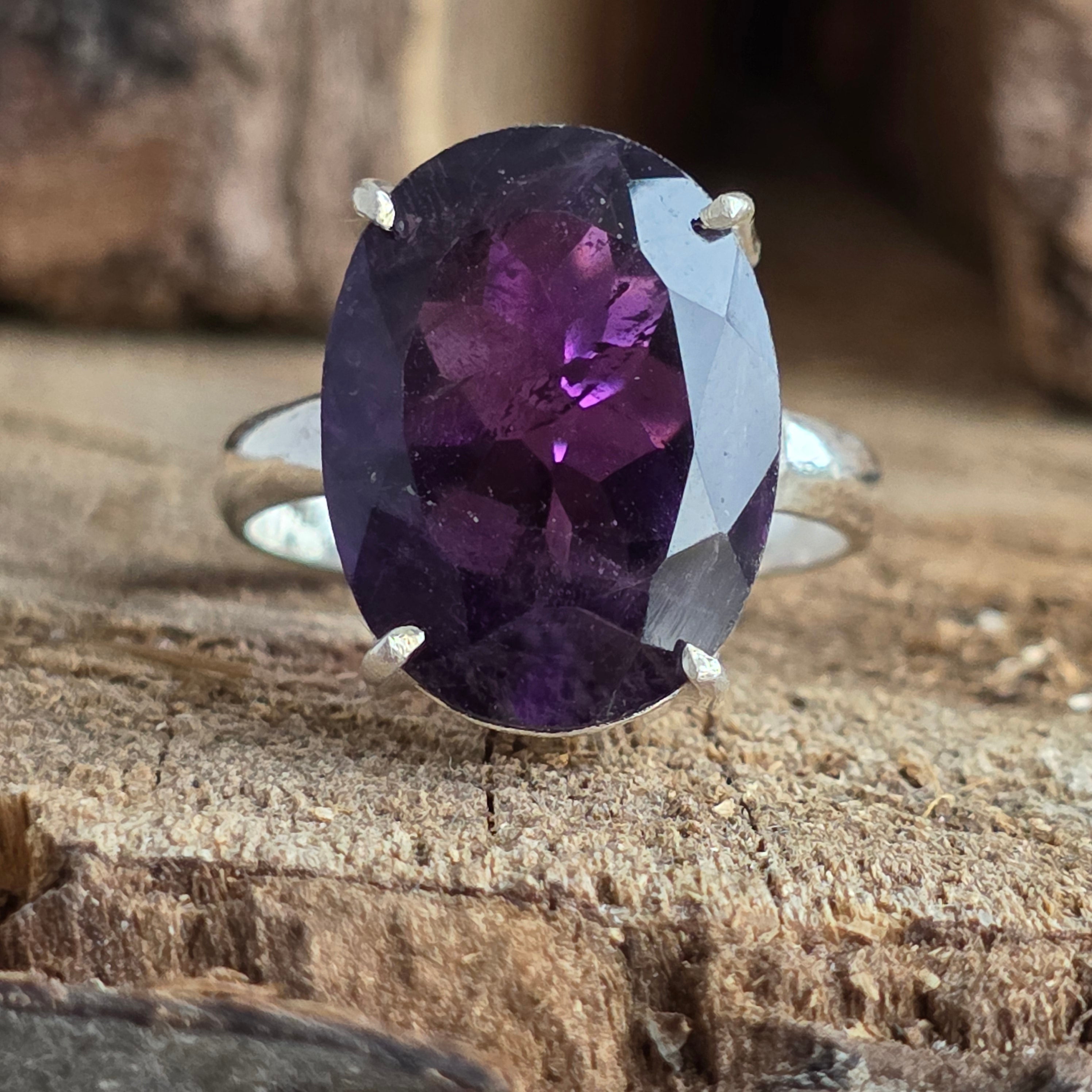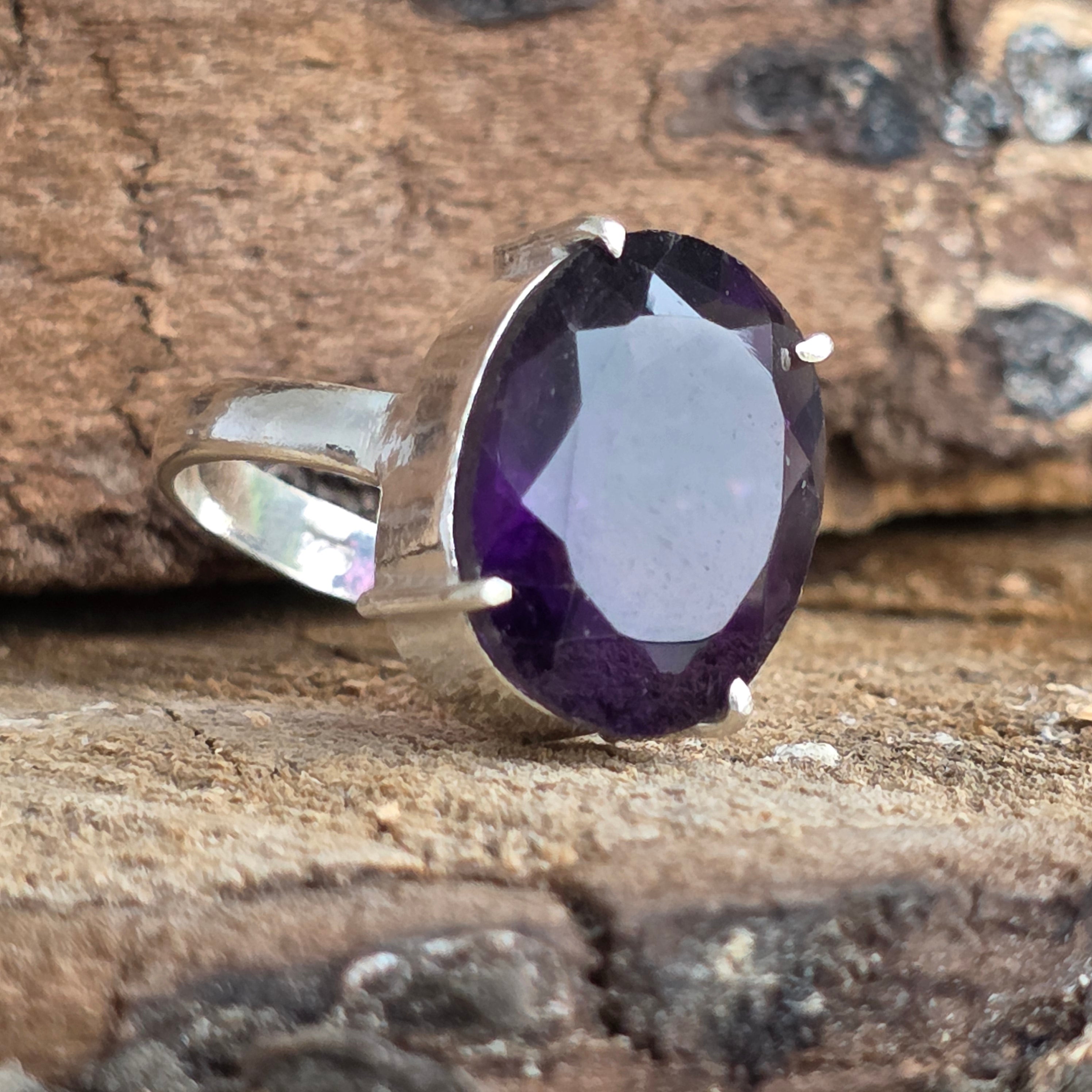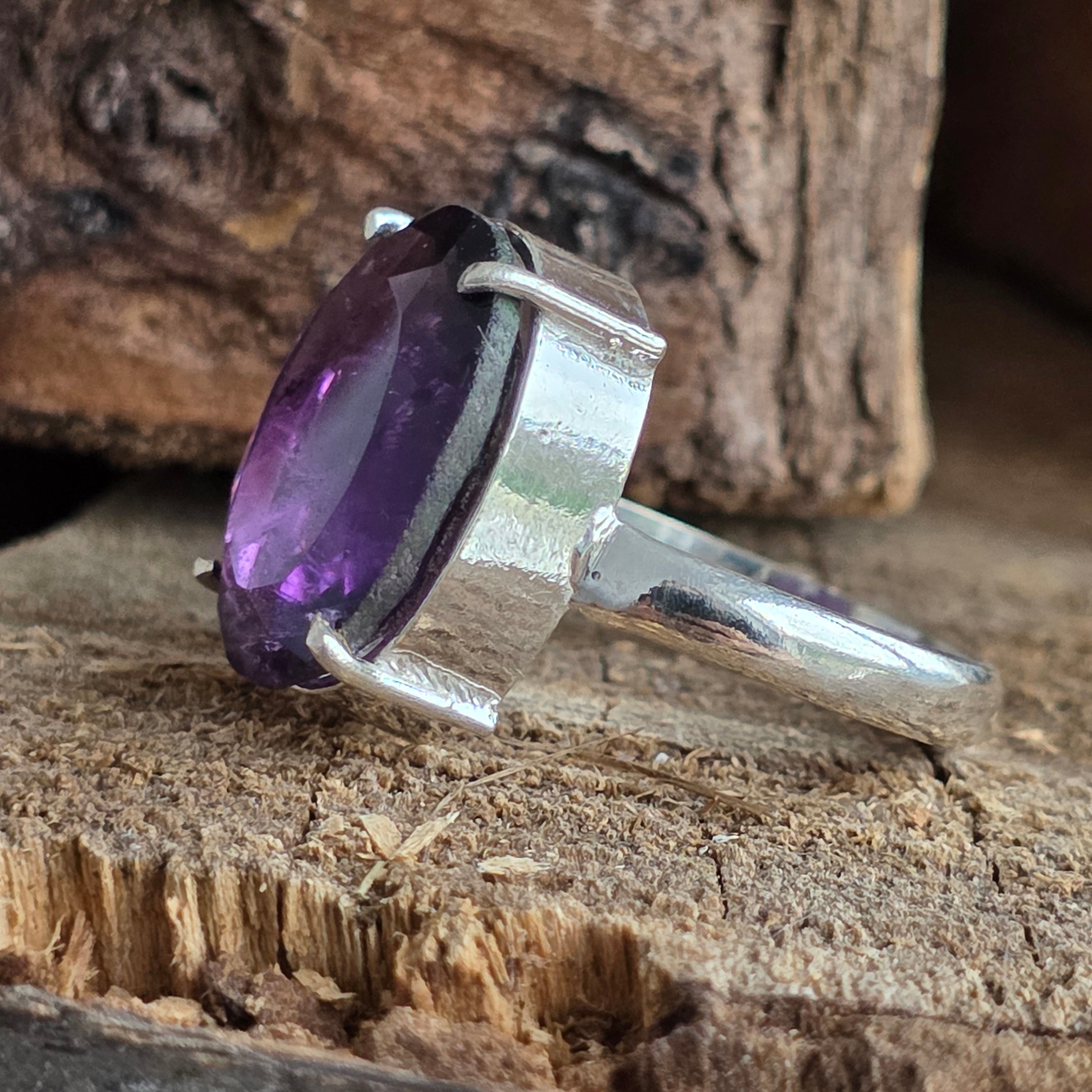 Пръстен, който съчетава класическа елегантност и духовната енергия на аметистаt, камъкът на мъдростта и умствената яснота.