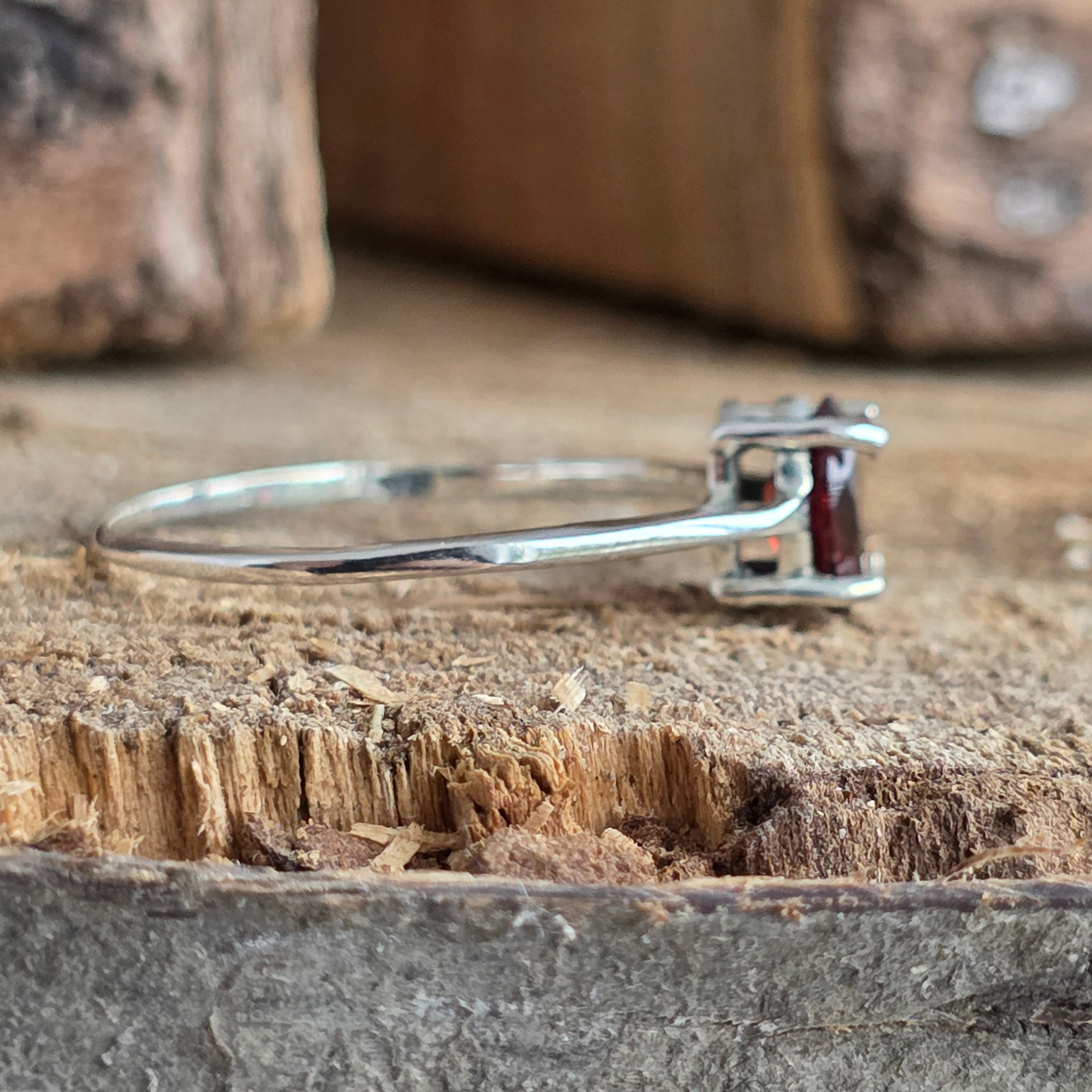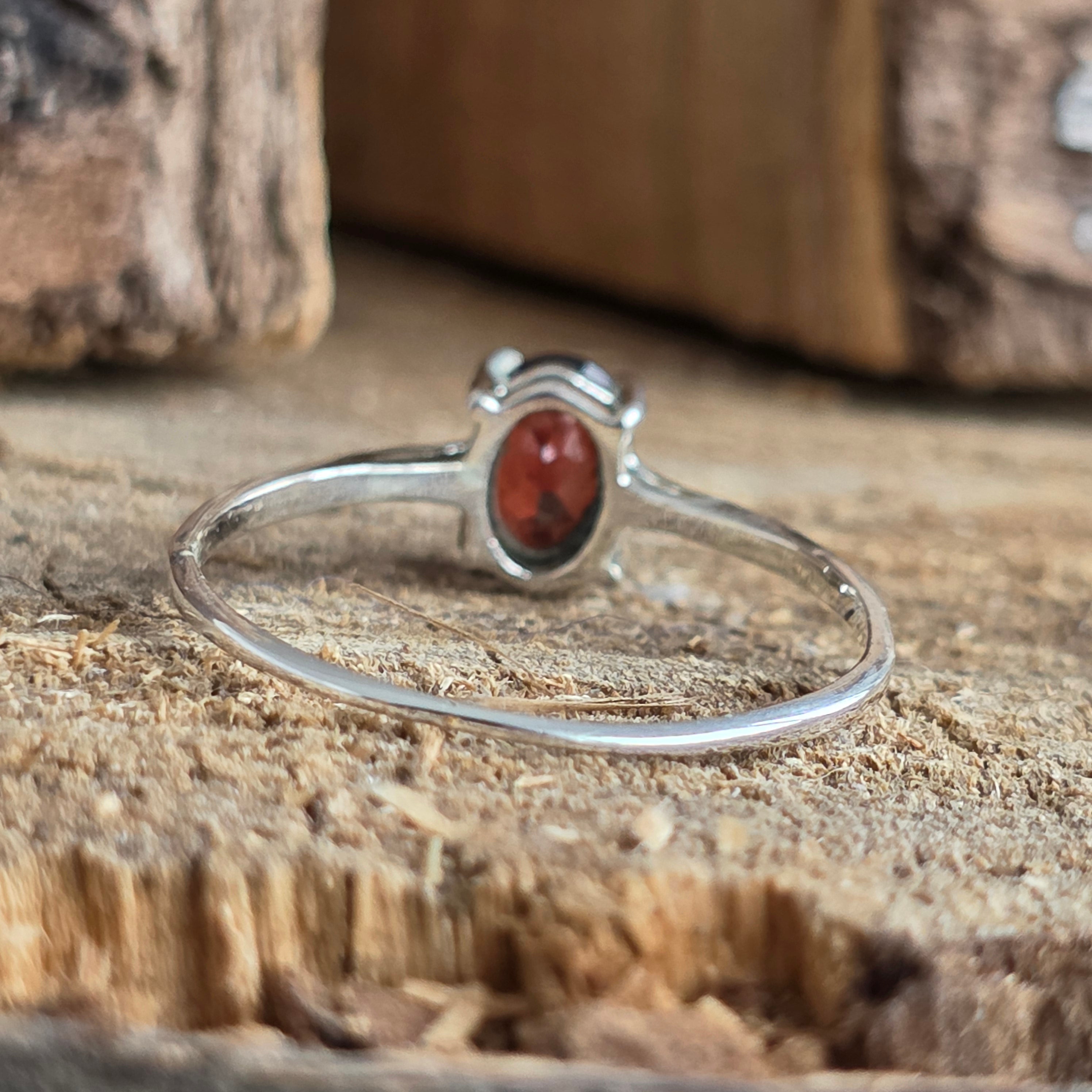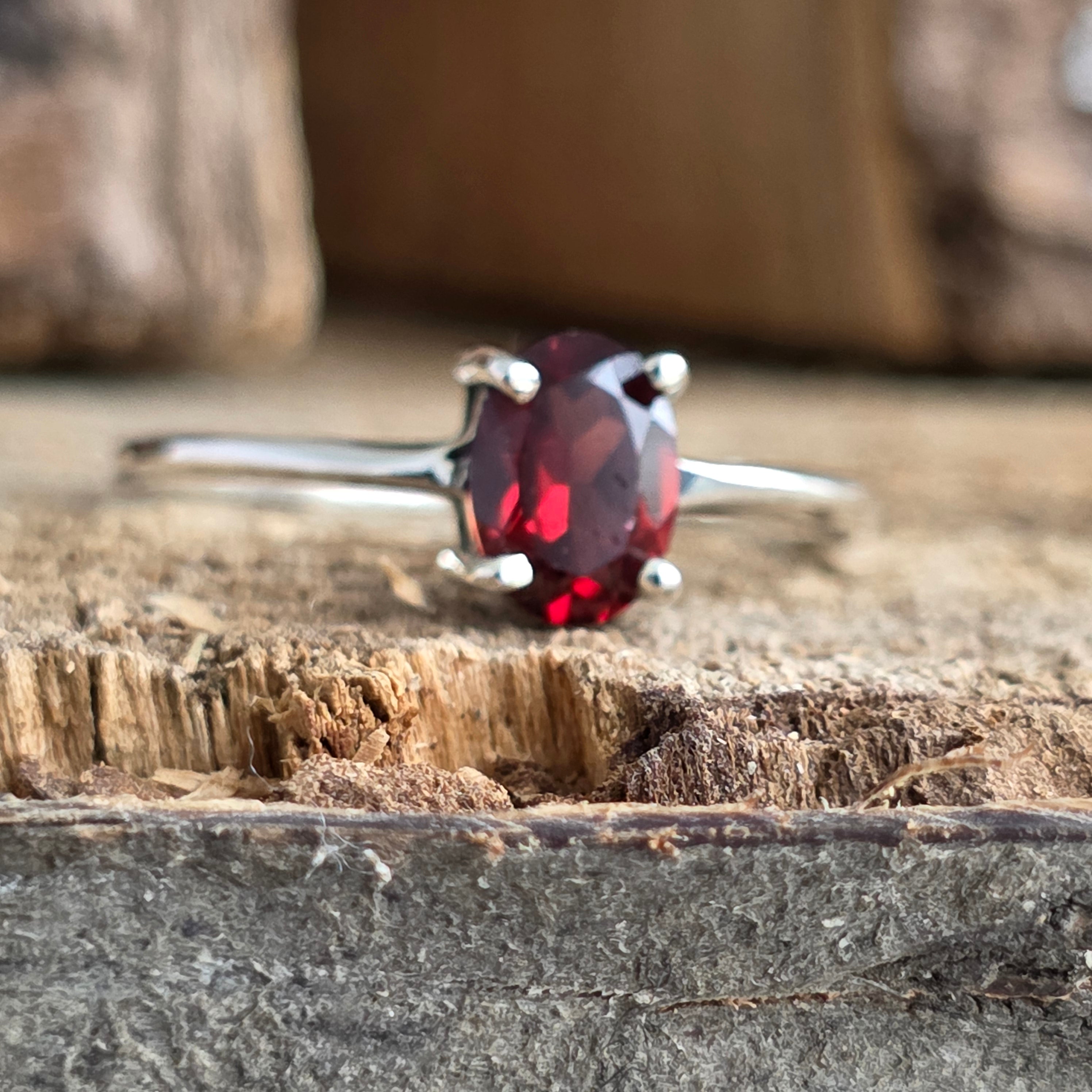 С рубинен блясък и топла енергия, това 925 сребърен пръстен извежда интензивността естествен гранат, камъкът на страстта и жизнеността.