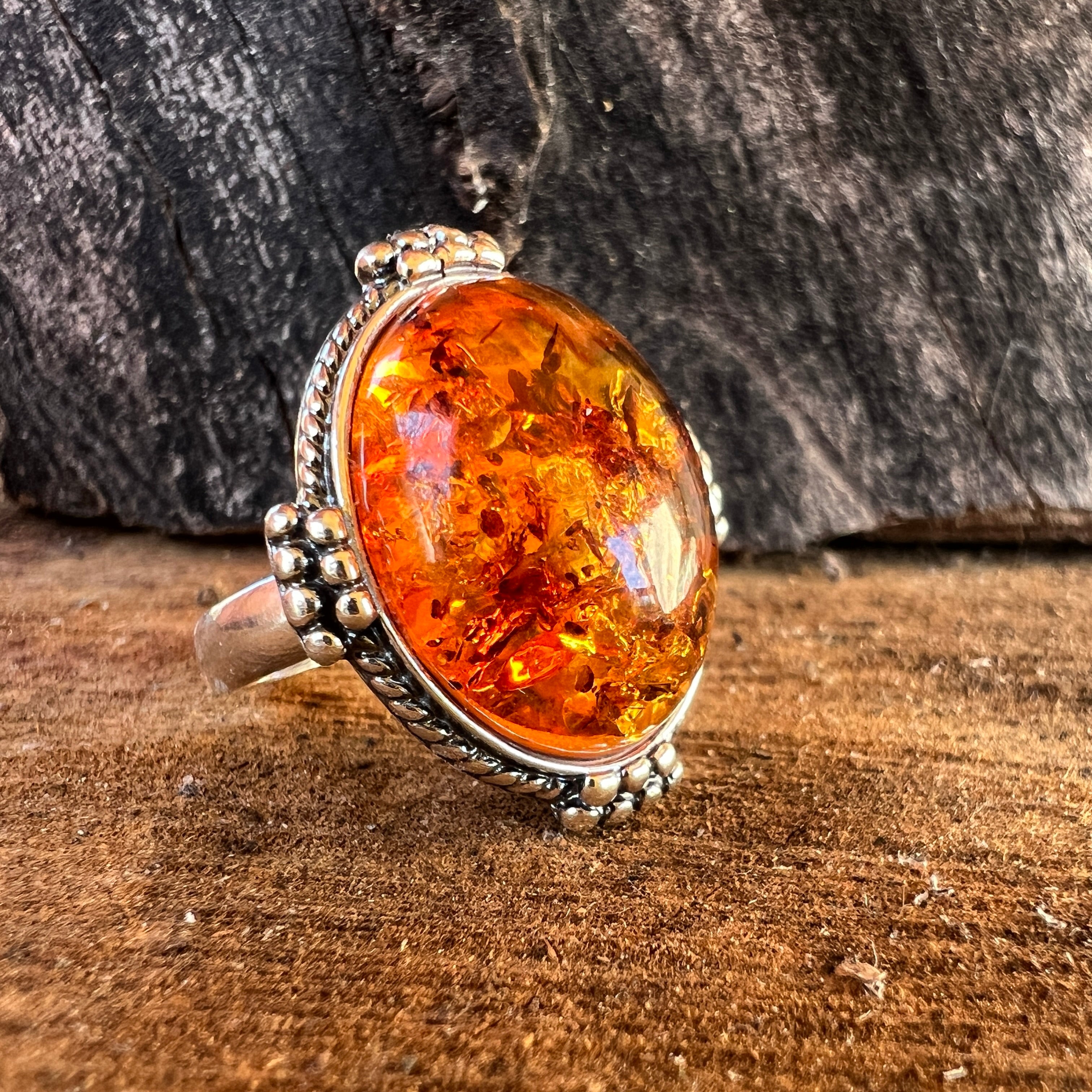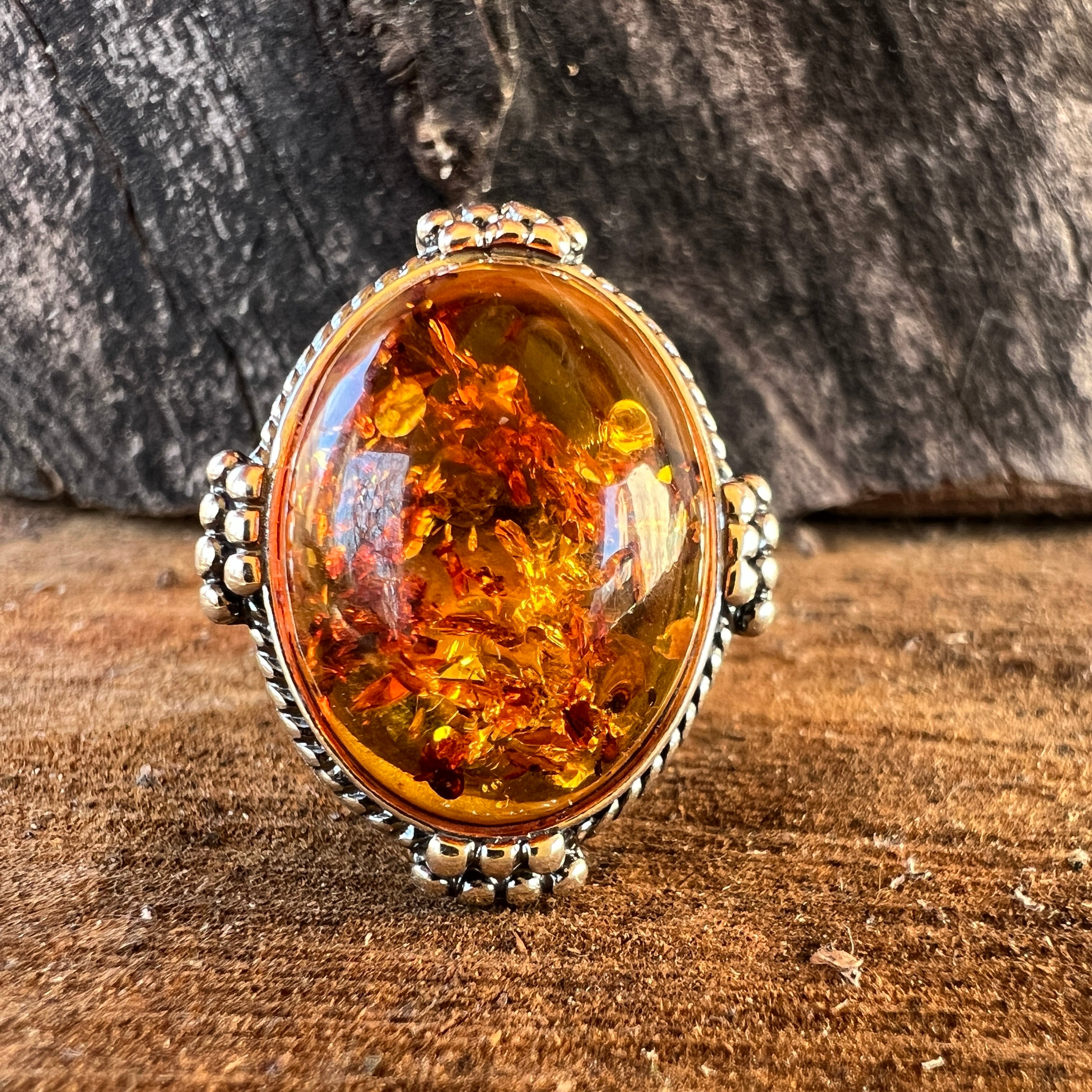 Descriere - Сребърен пръстен с кехлибар Amber1