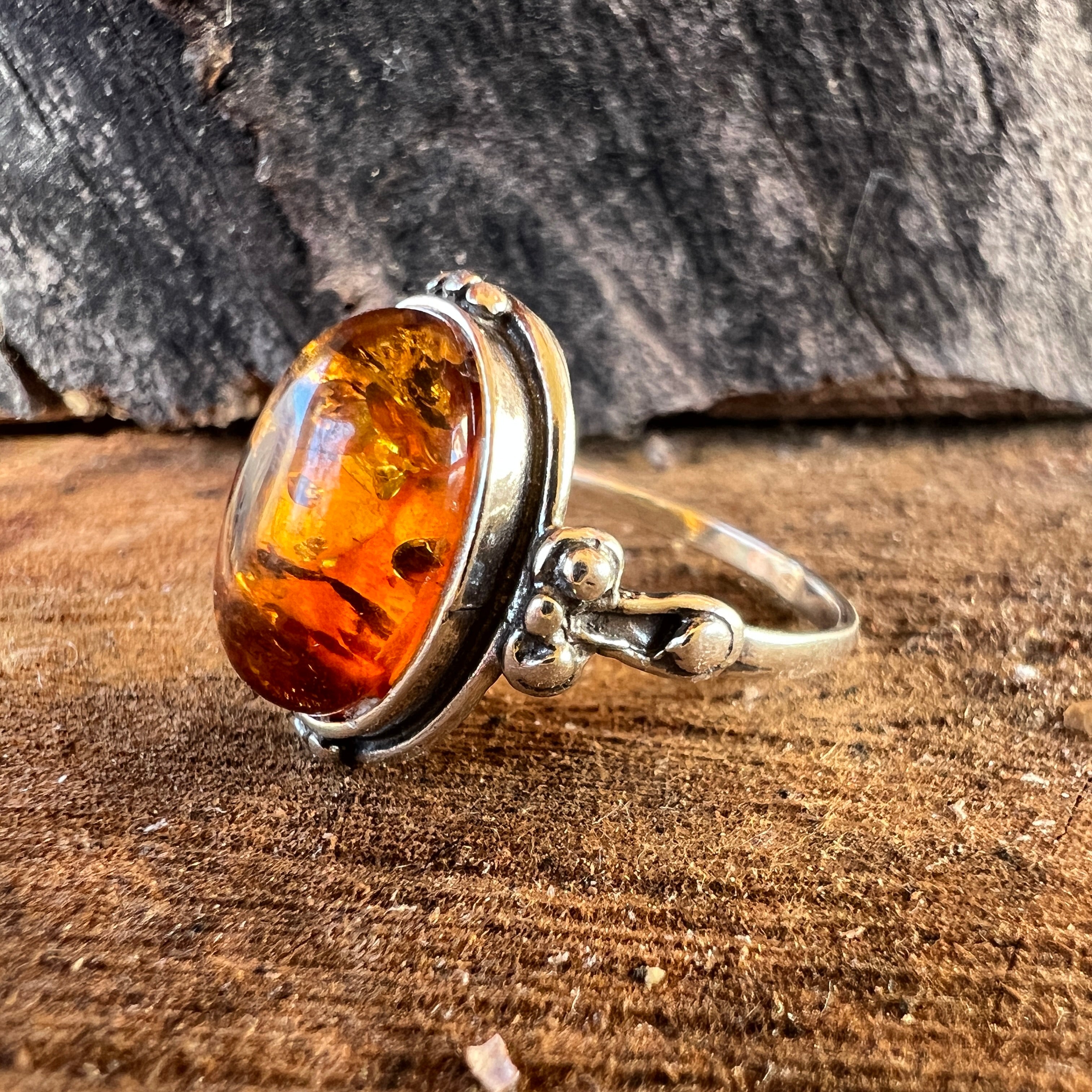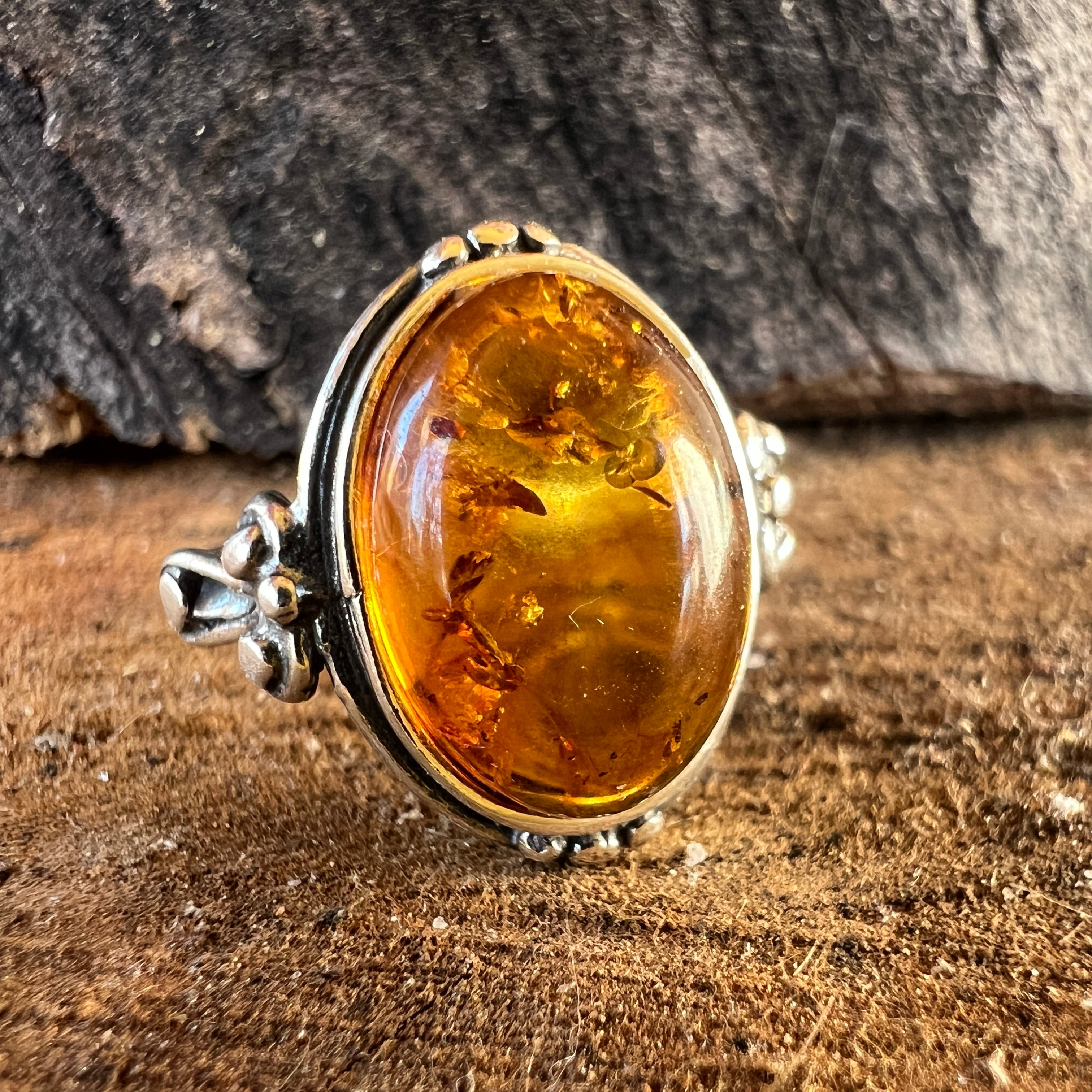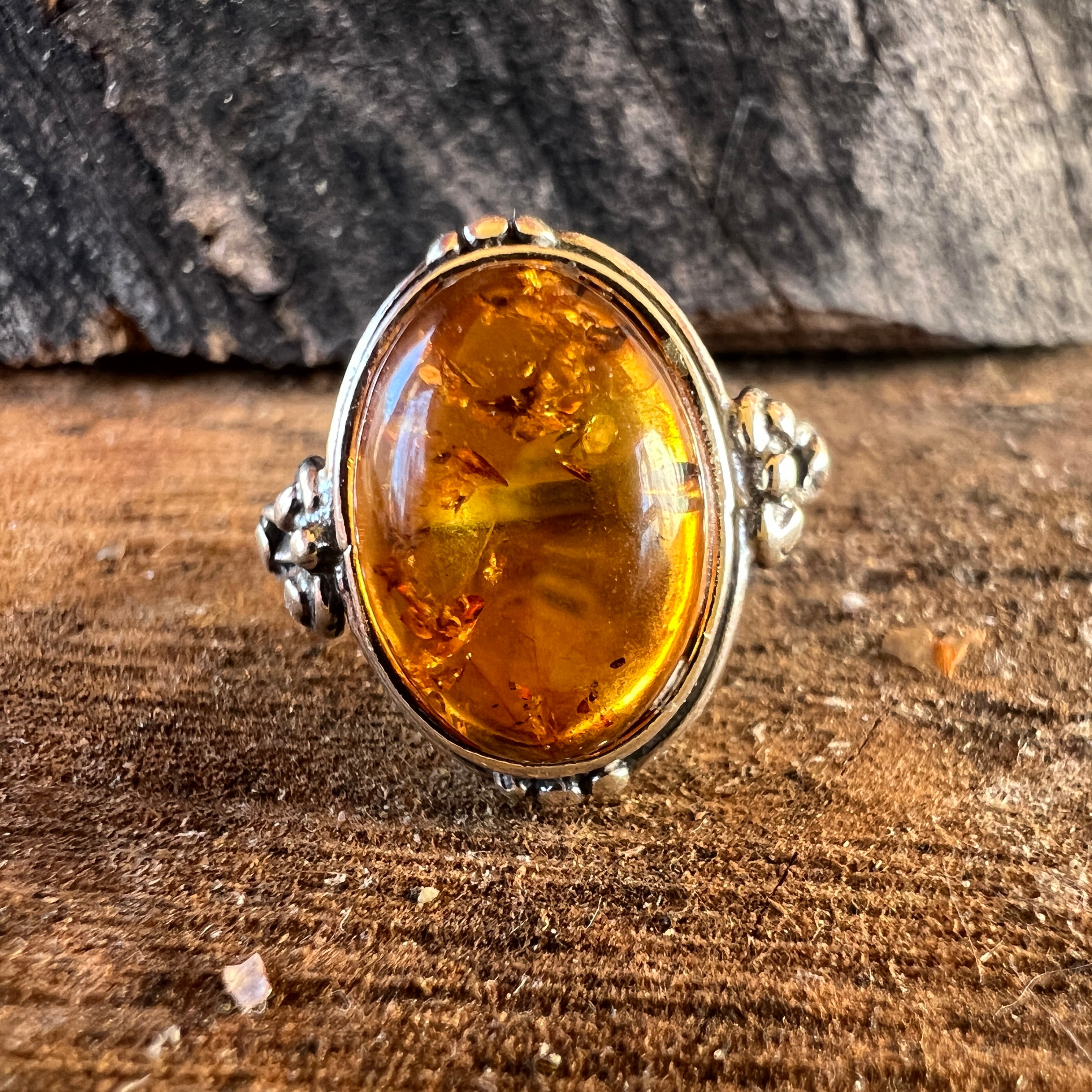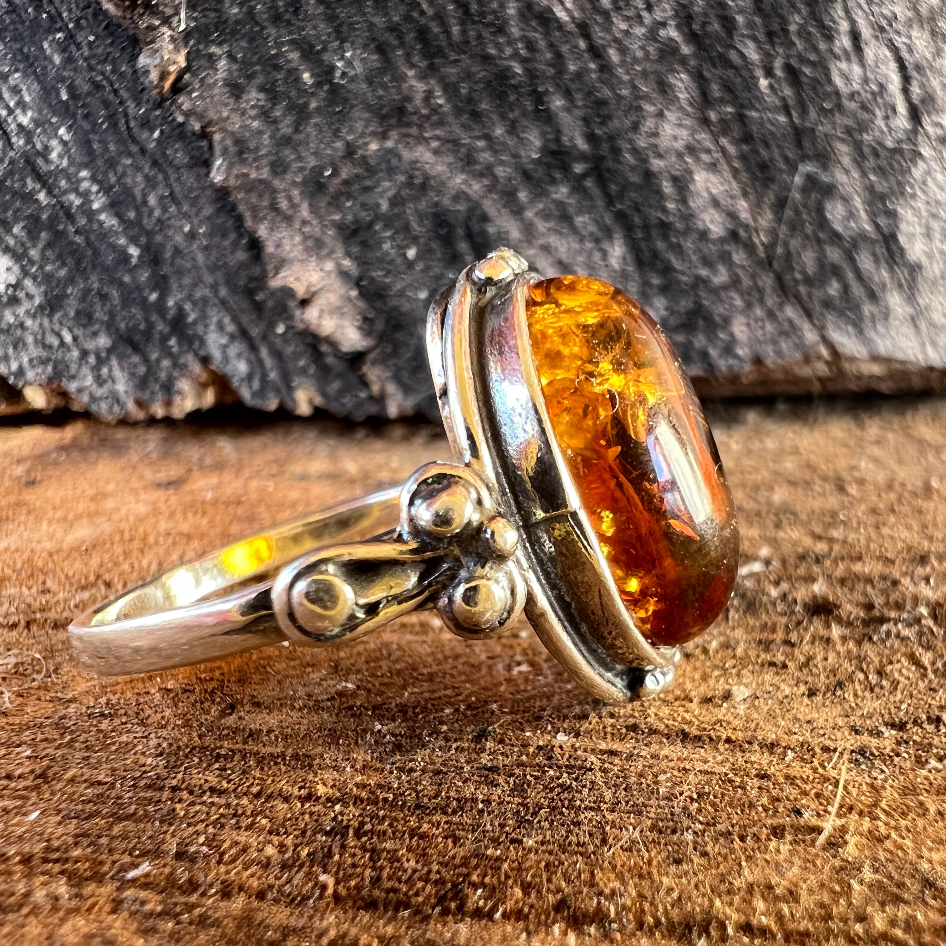 Descriere - Сребърен пръстен с кехлибар Amber12