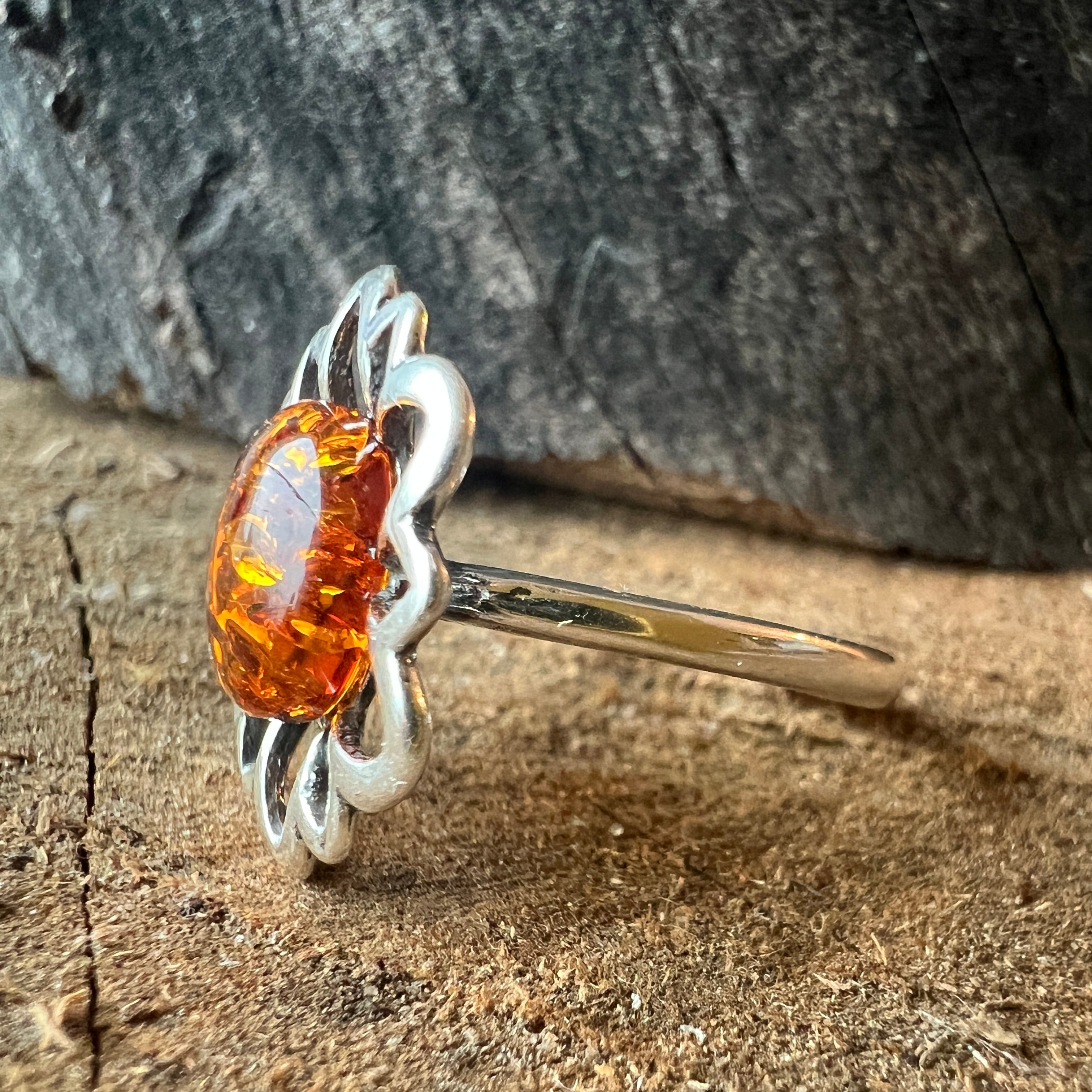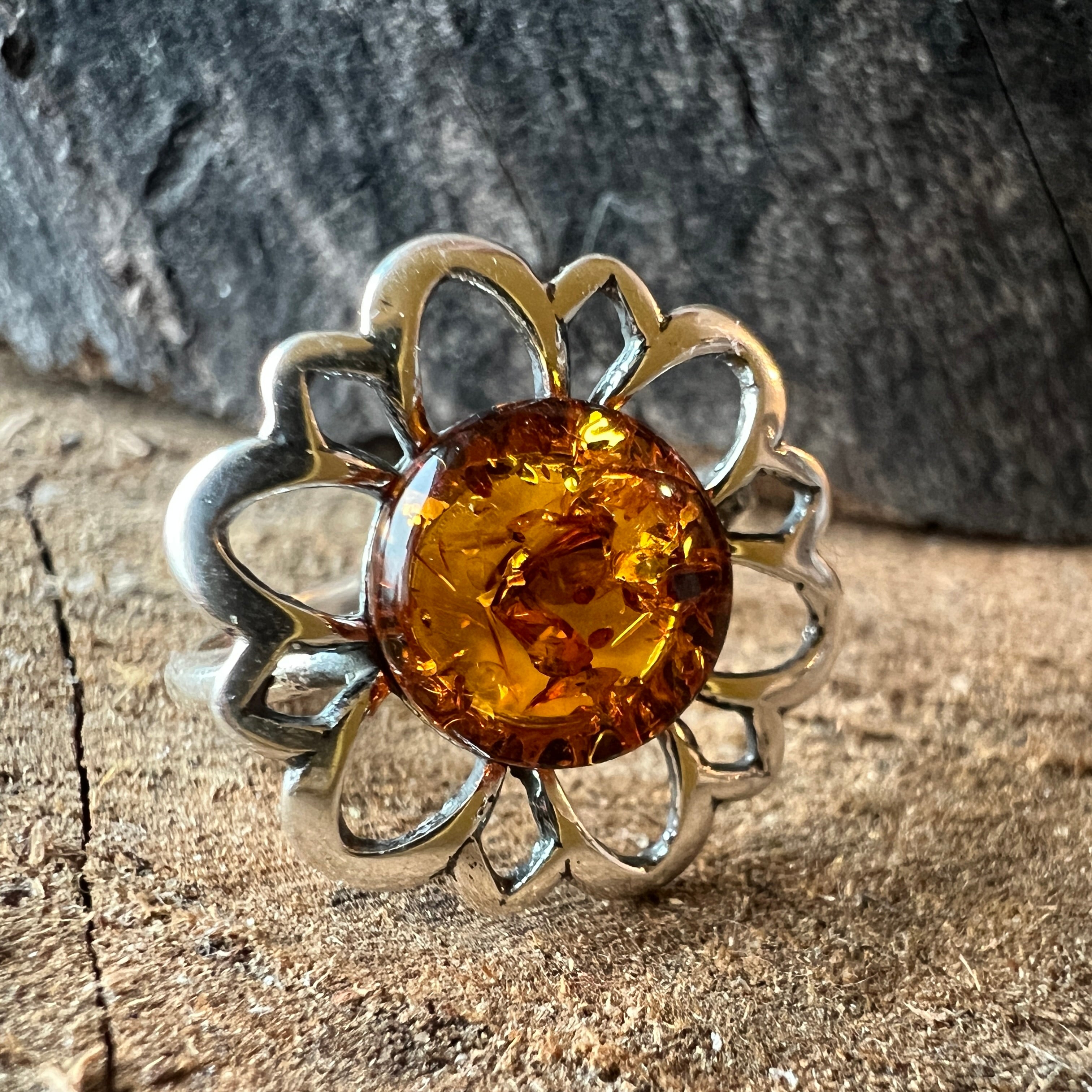 Ревюта – Сребърен пръстен с кехлибар Amber21