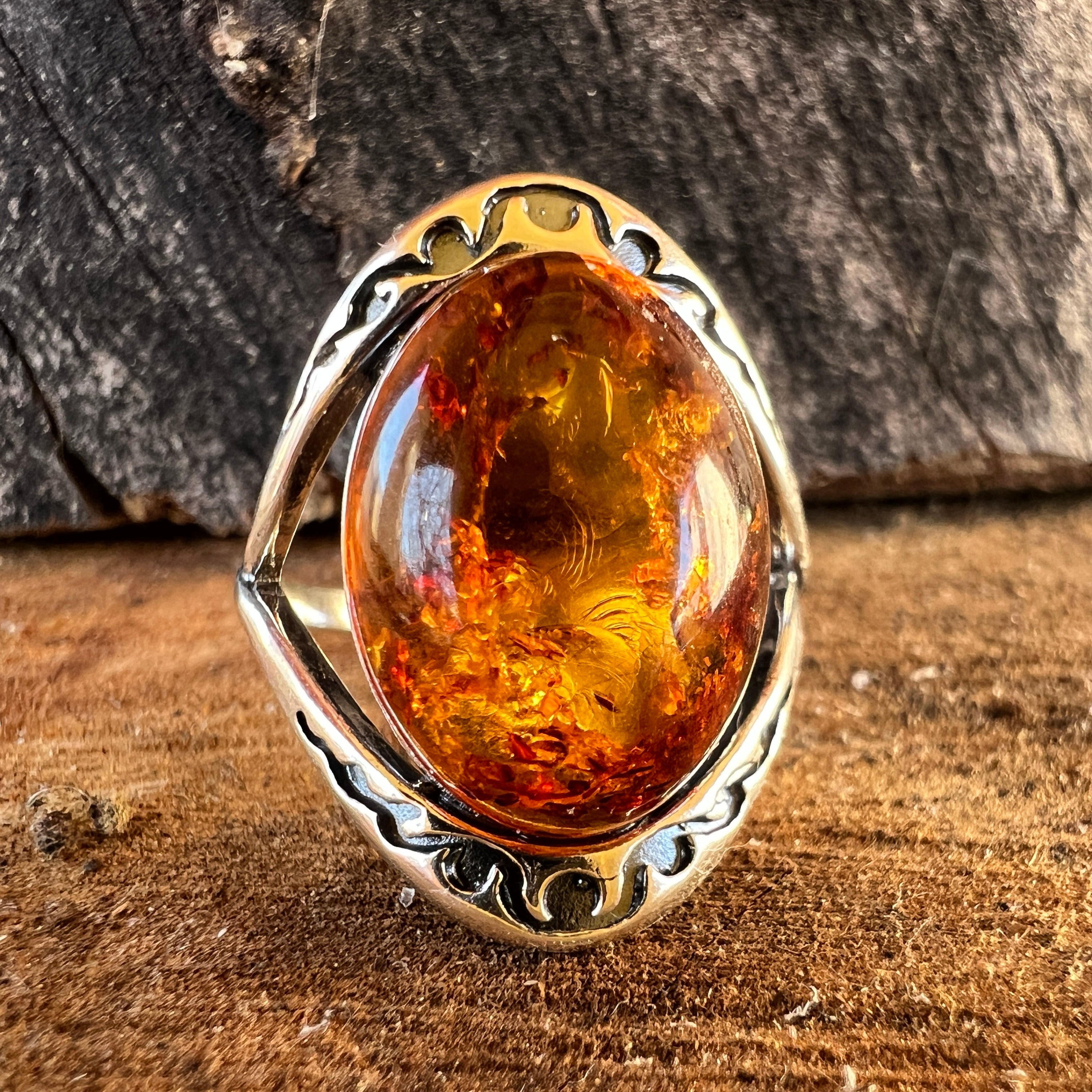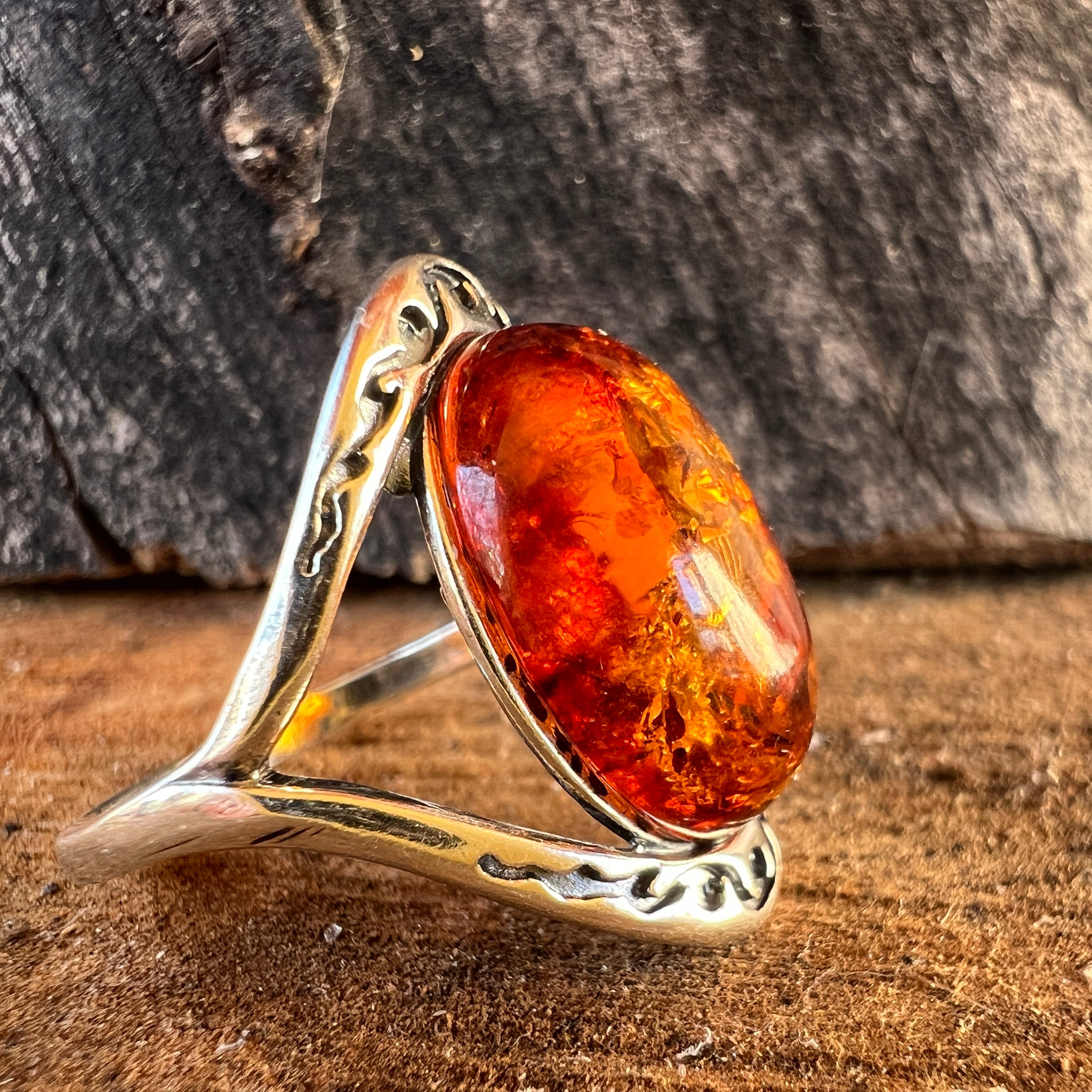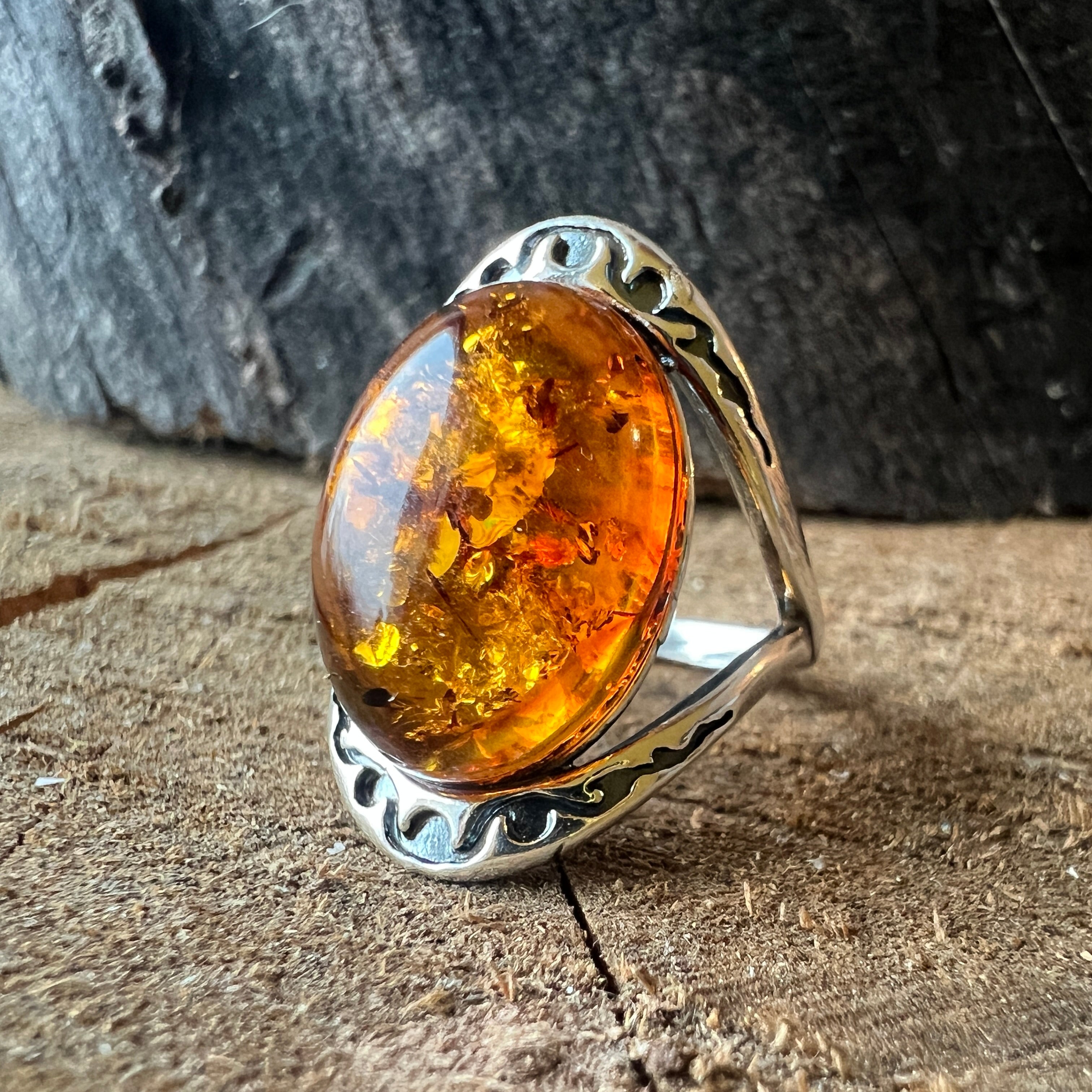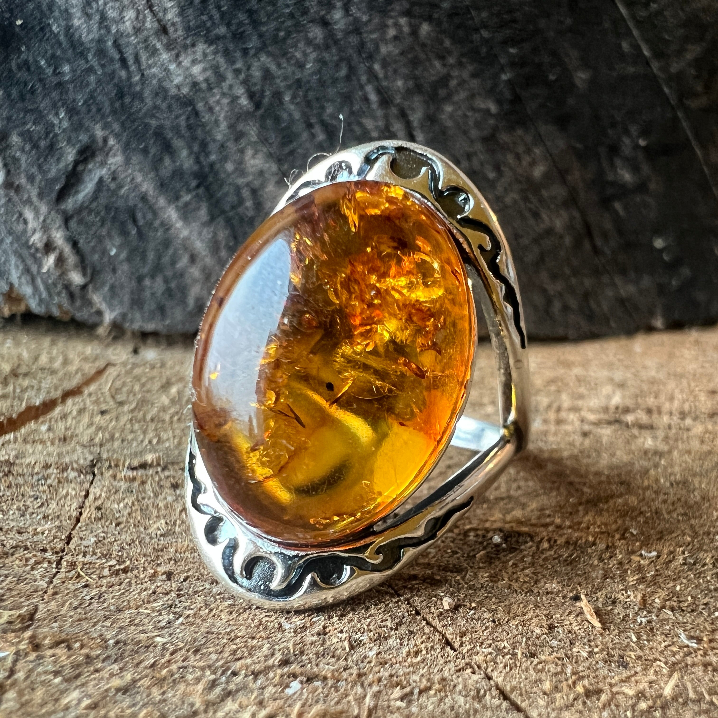 Descriere - Сребърен пръстен с кехлибар Amber6