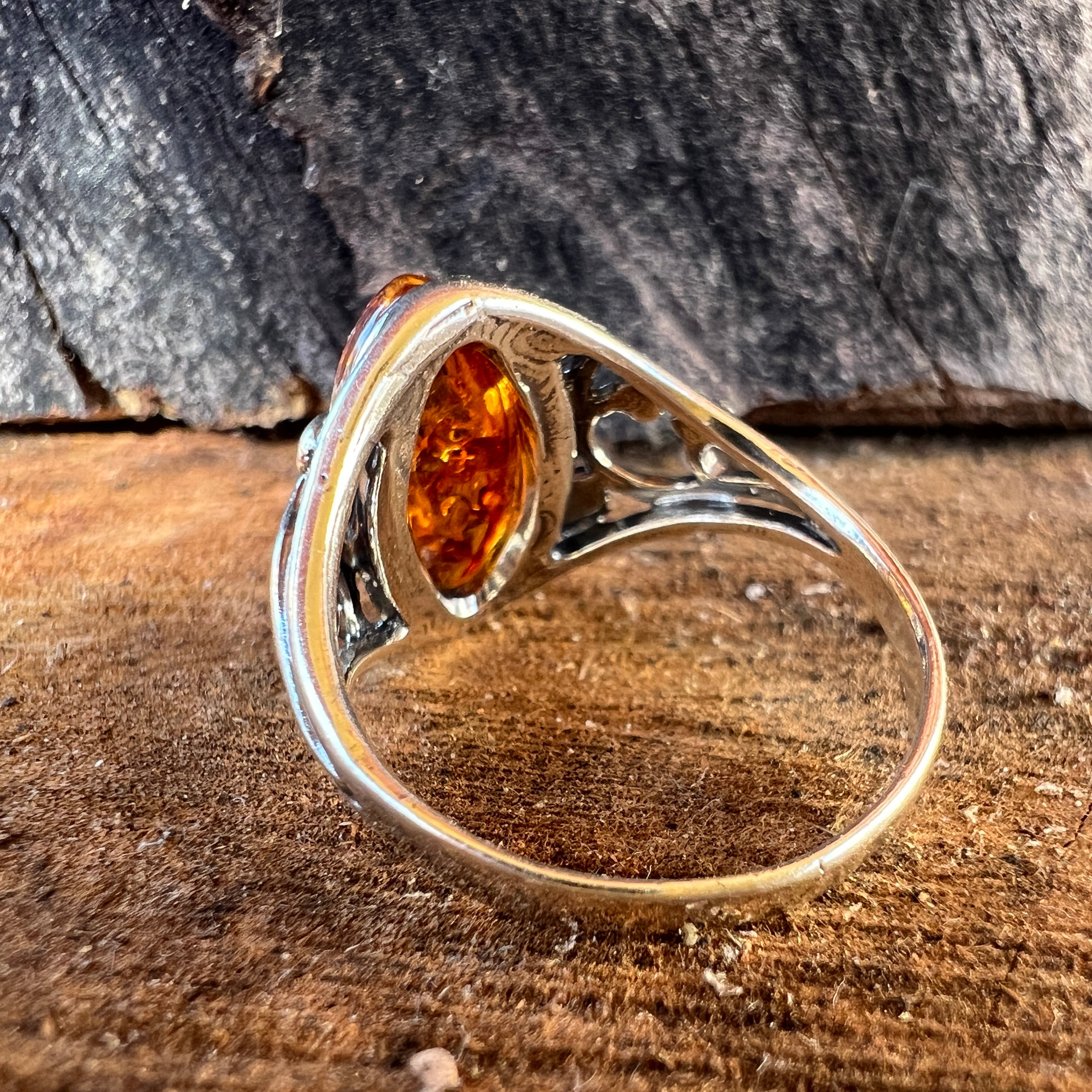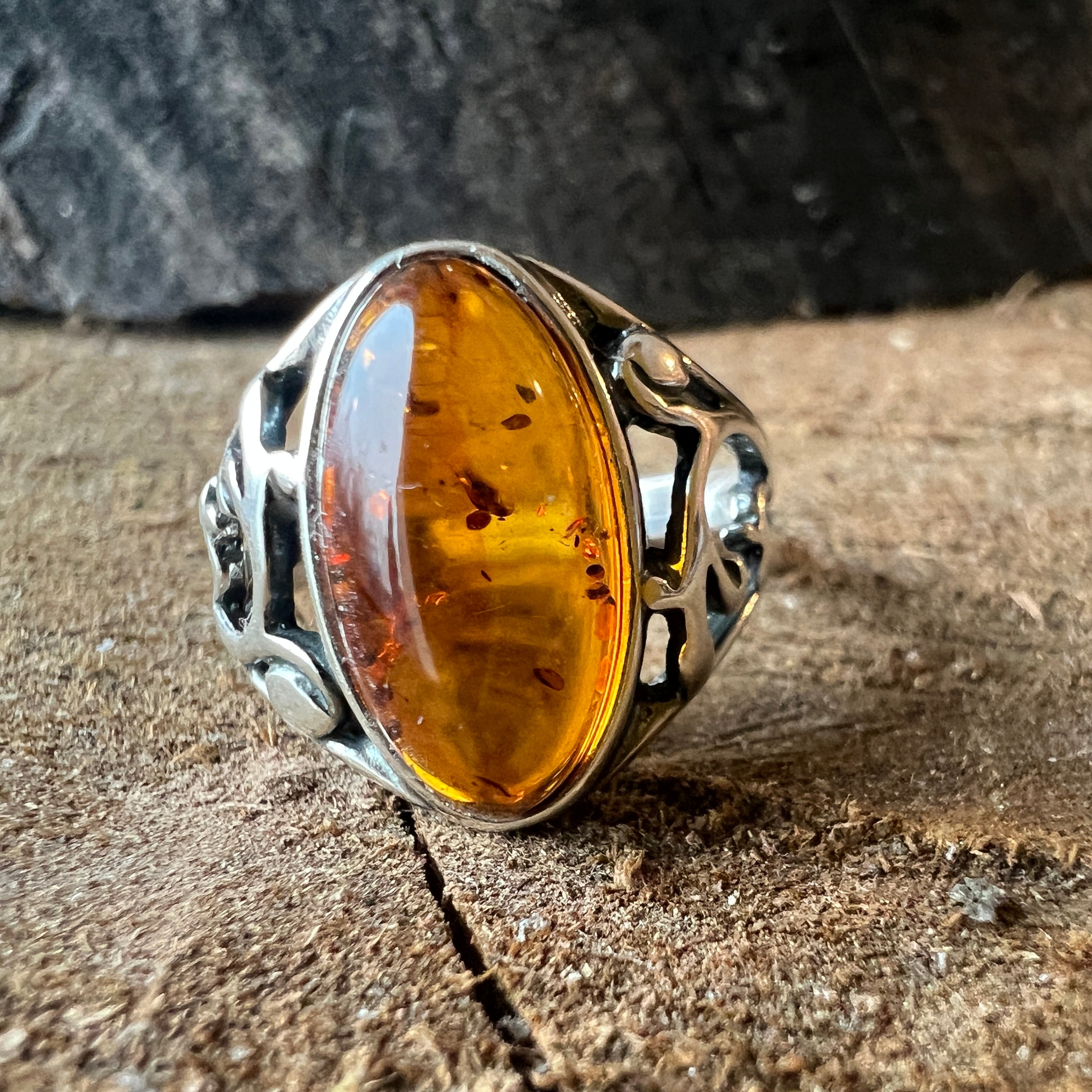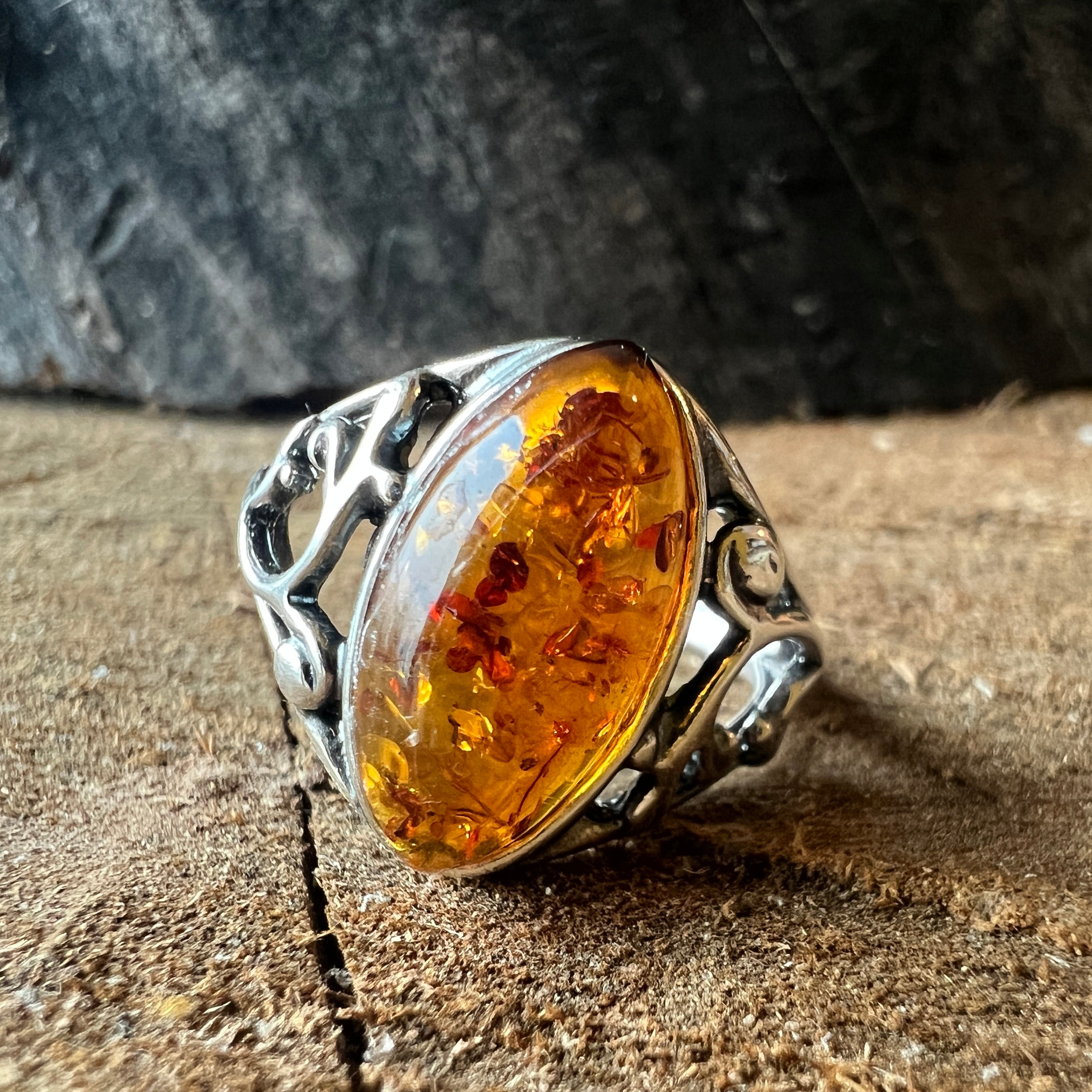 Сребърен пръстен с кехлибар Amber8