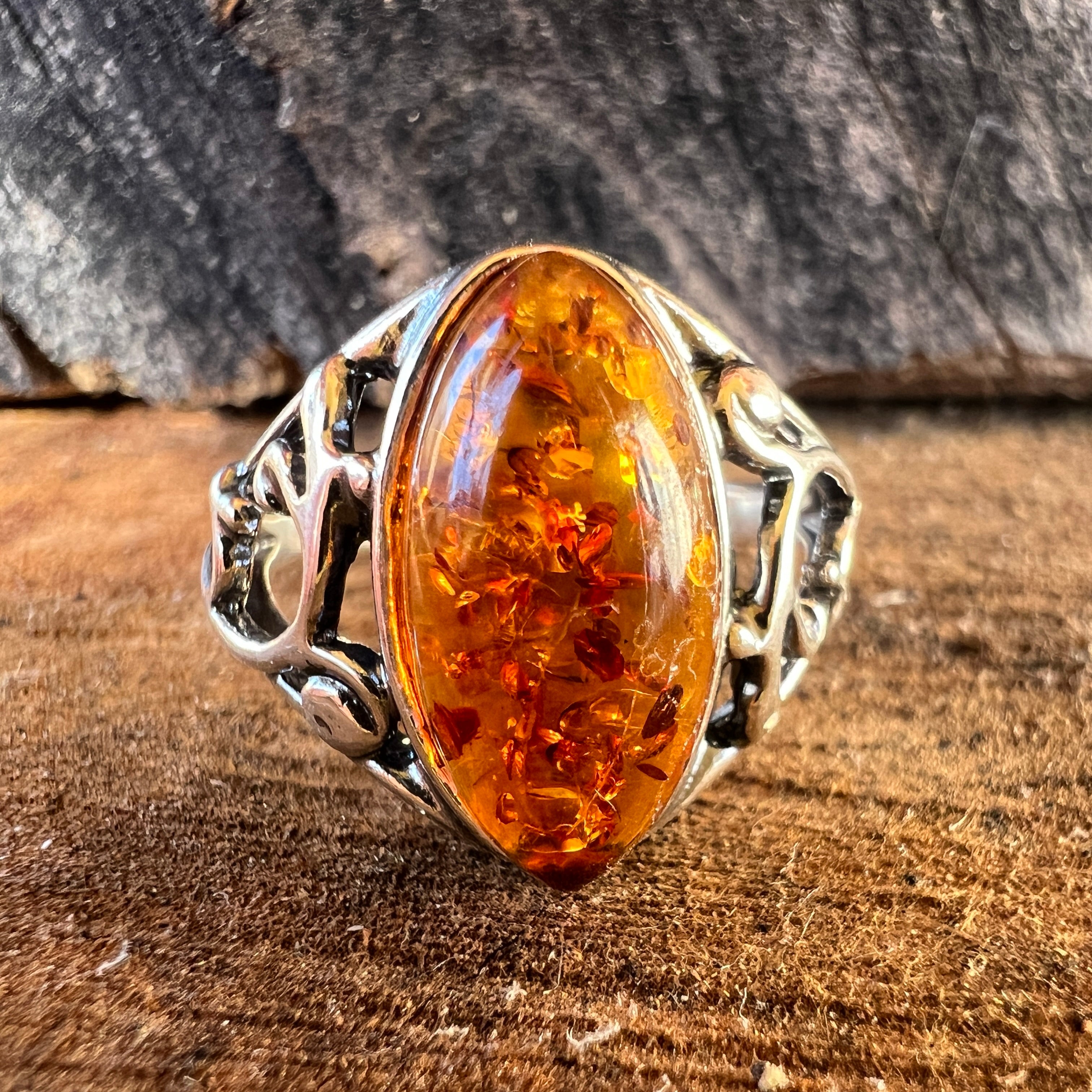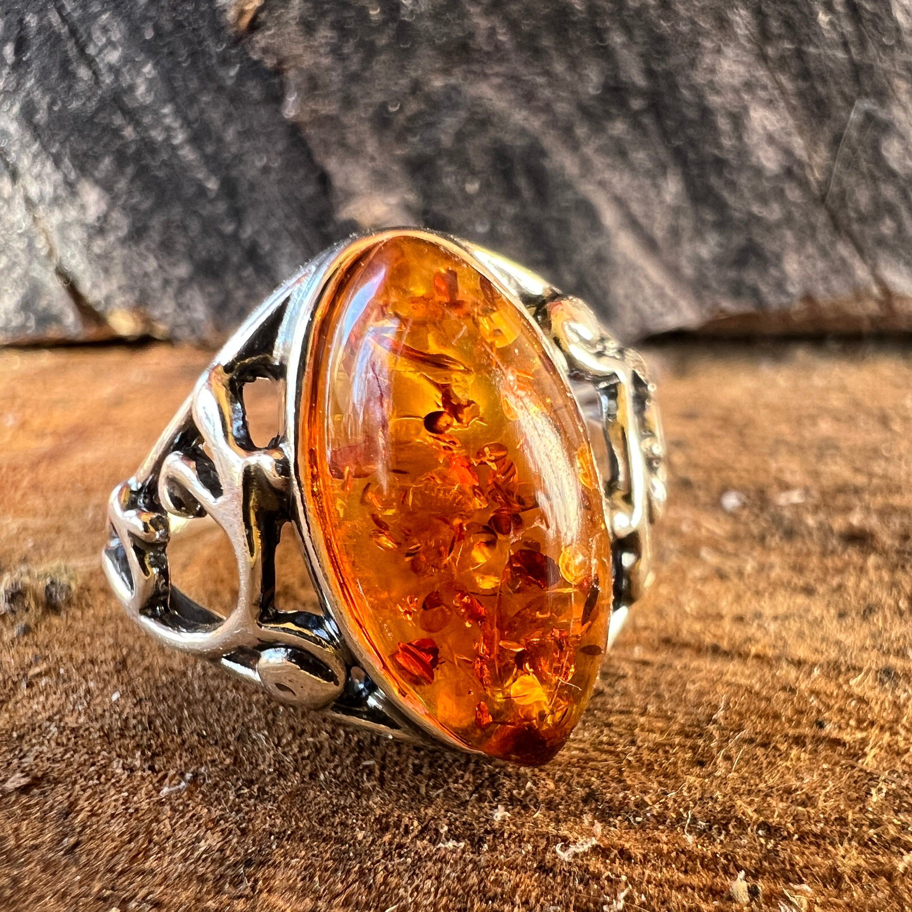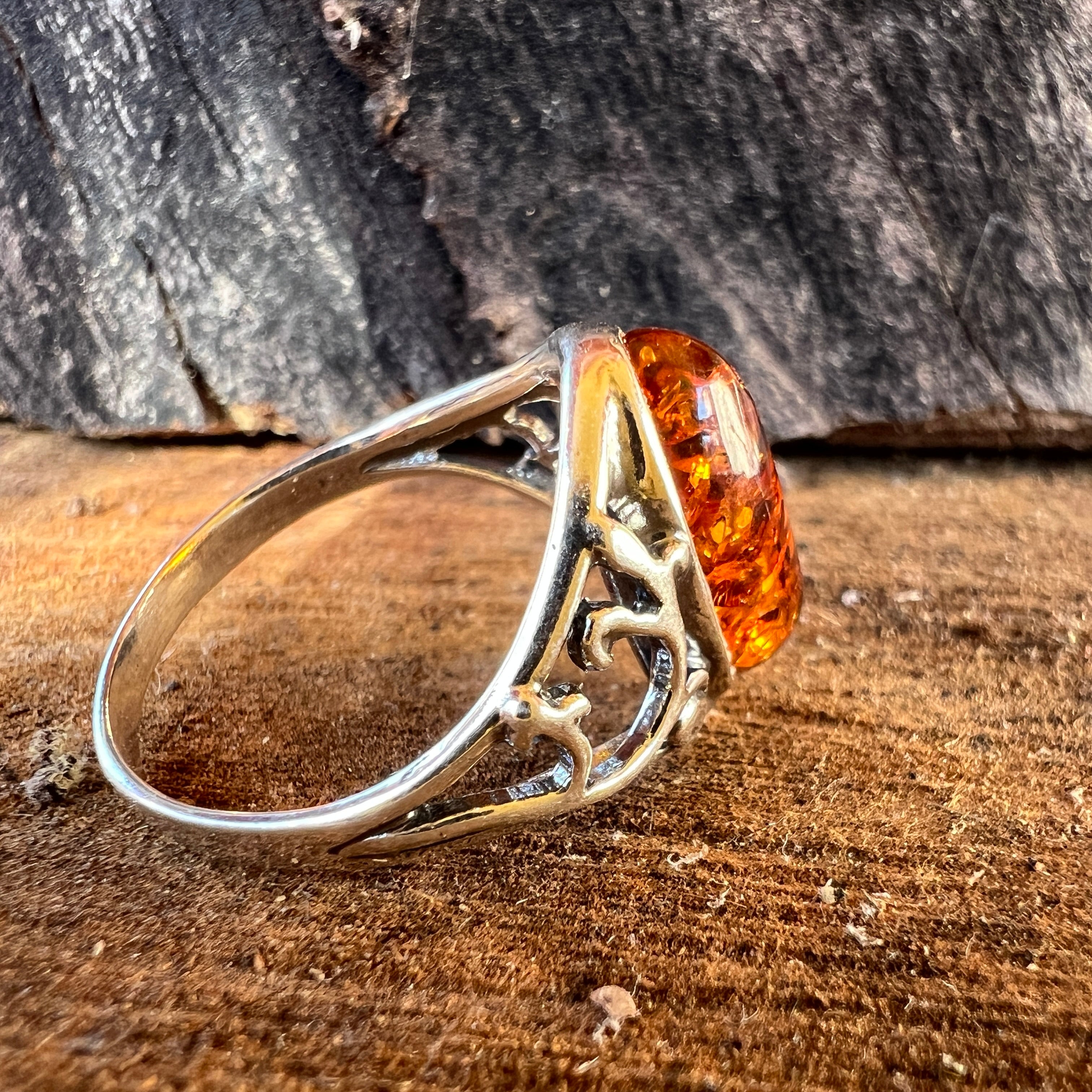 Сребърен пръстен с кехлибар Amber8