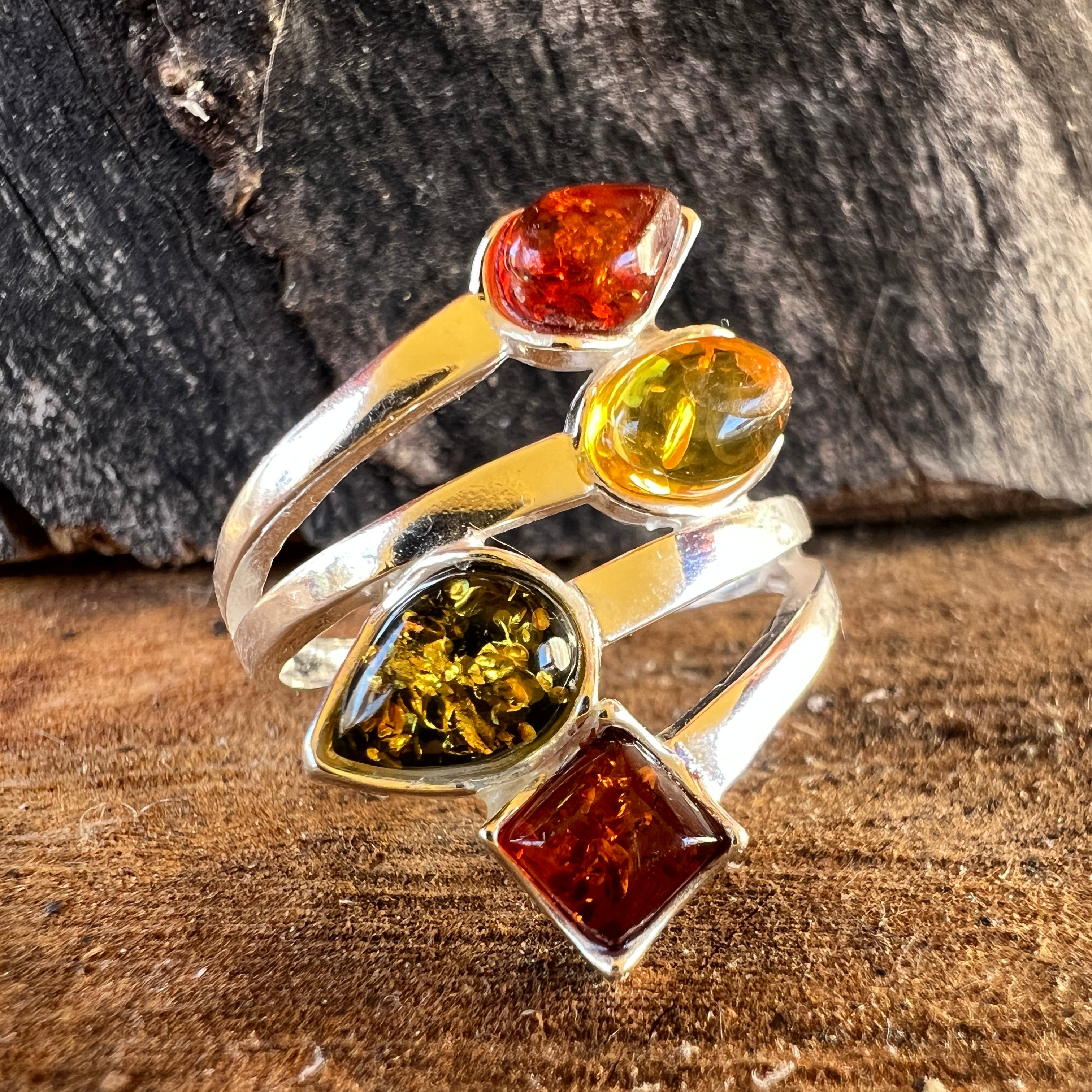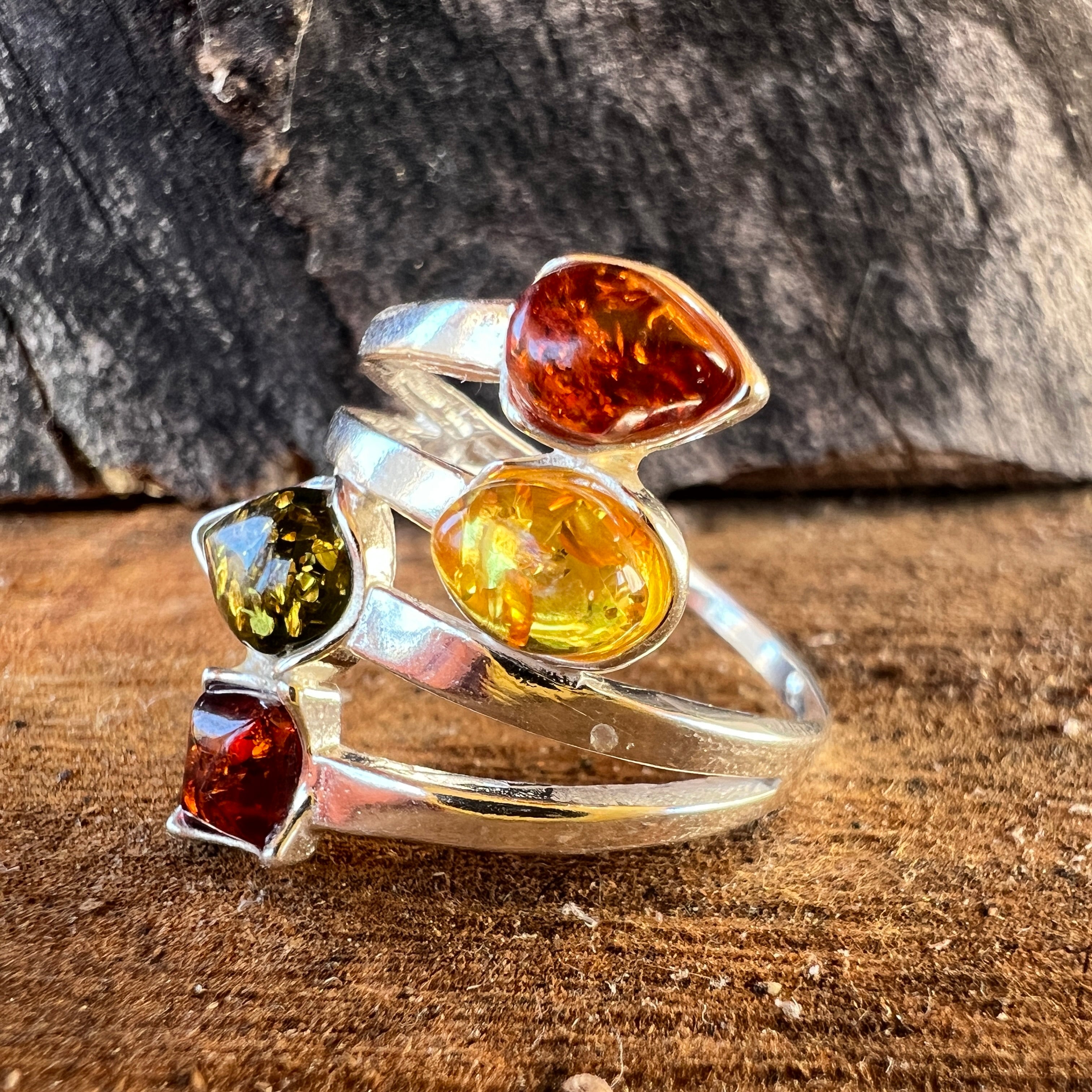 Сребърен пръстен с кехлибар Amber9