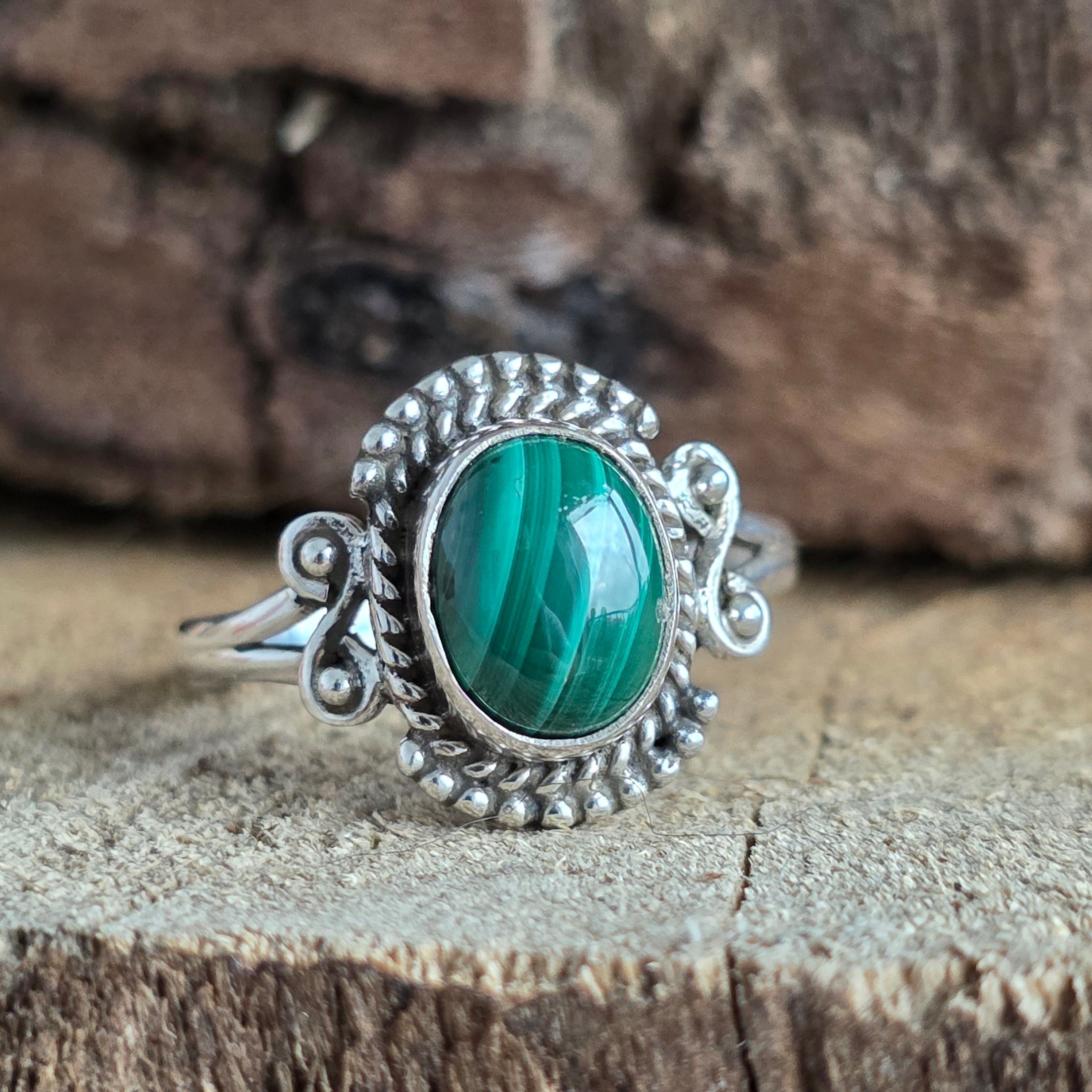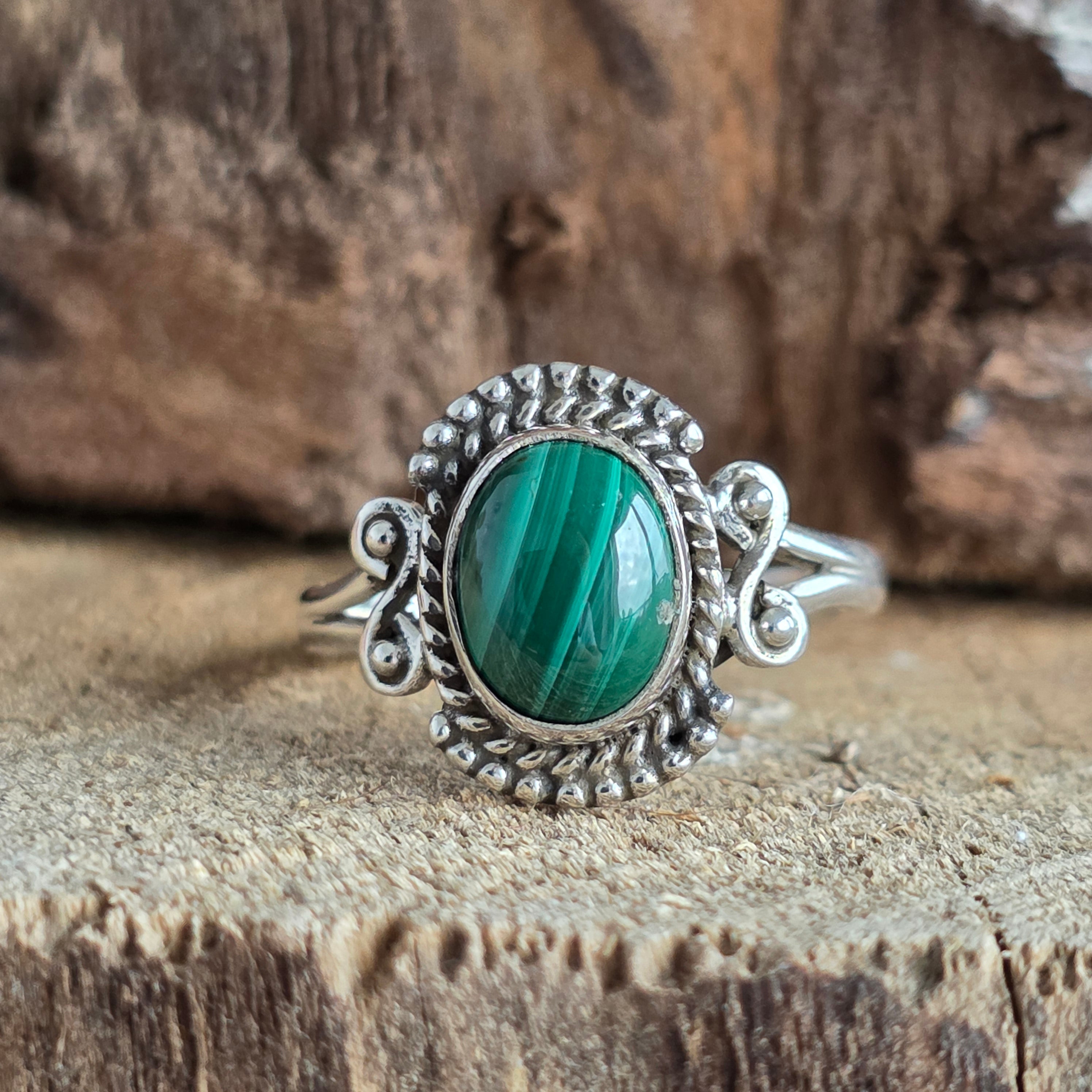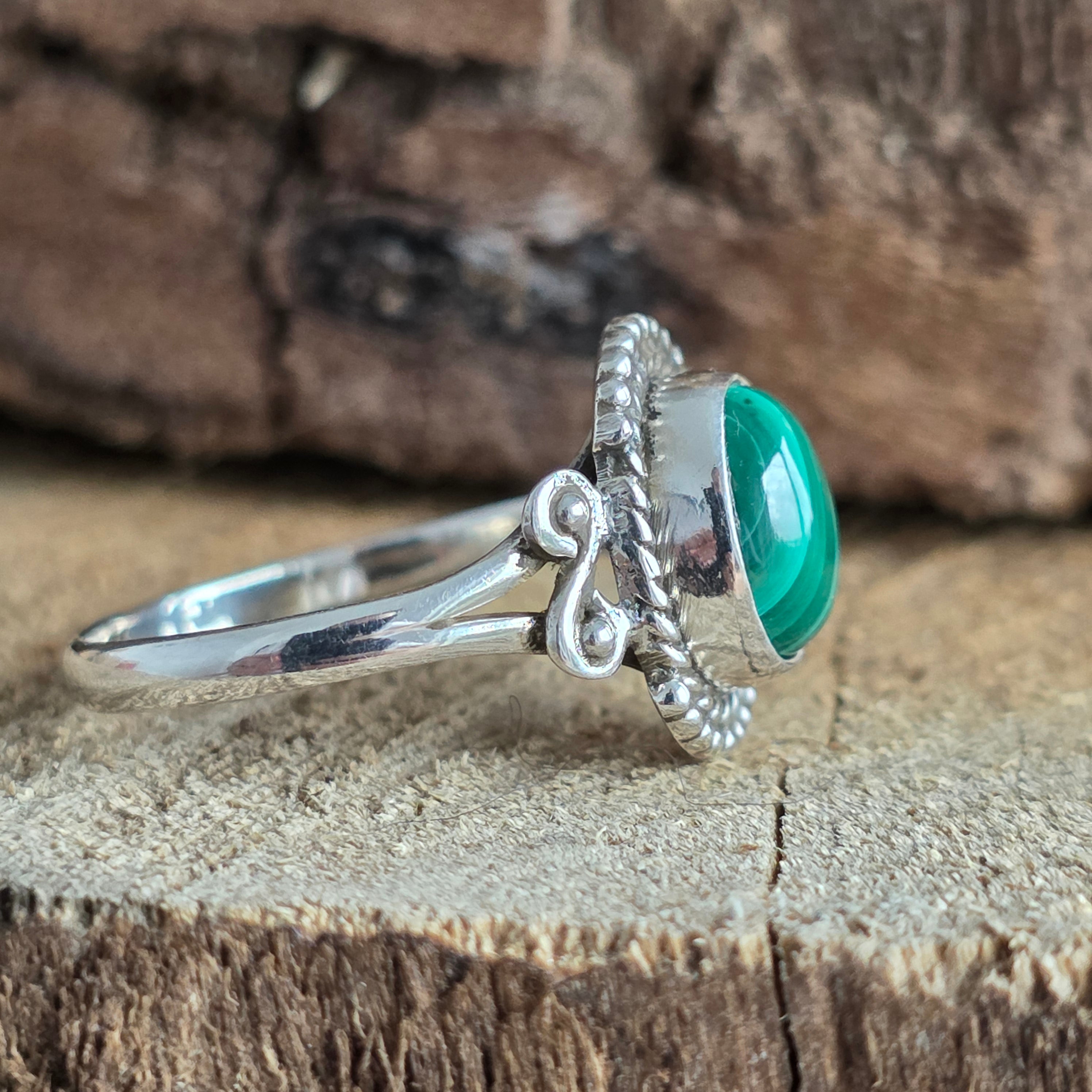 Сребърен пръстен с малахит | ГРАЦИЯ