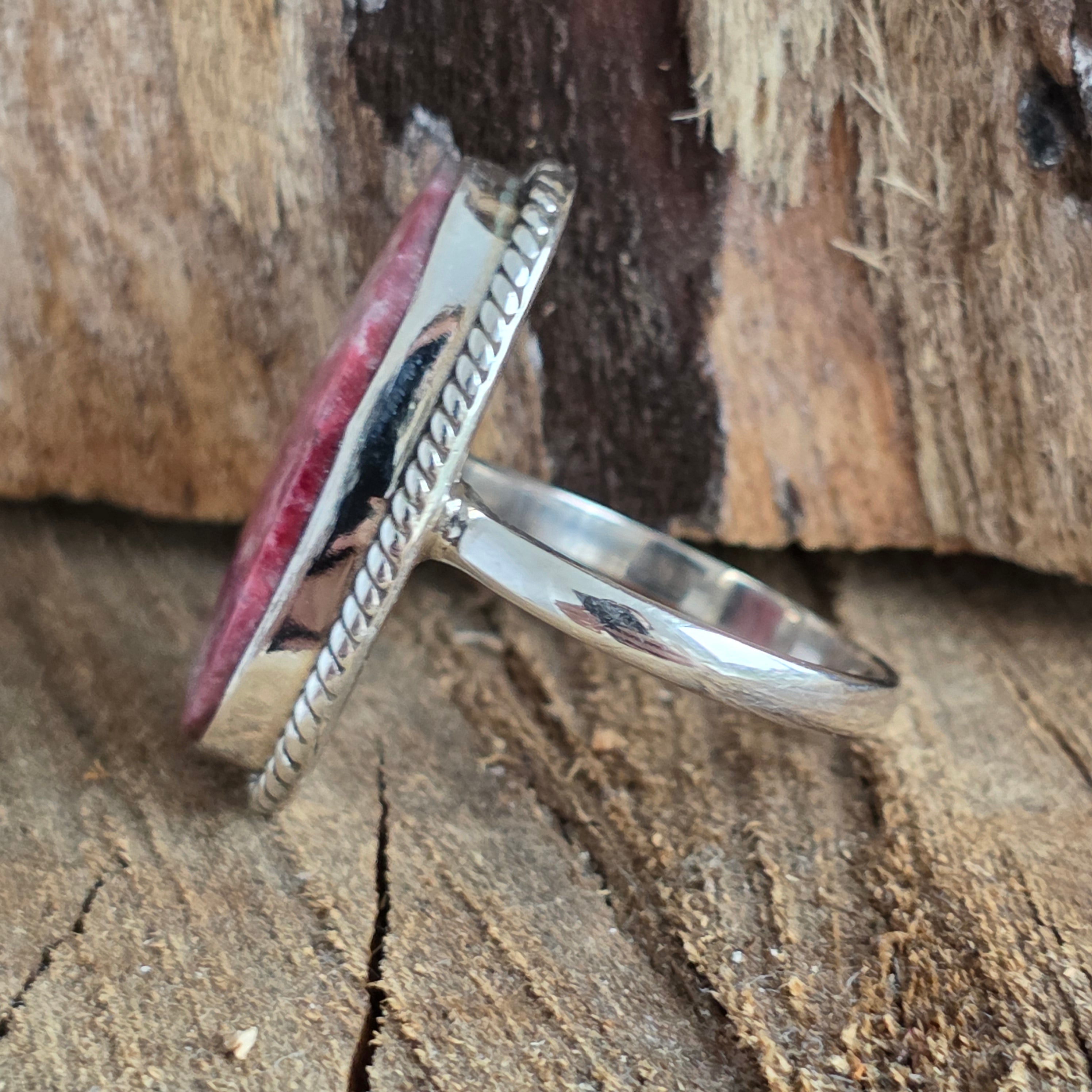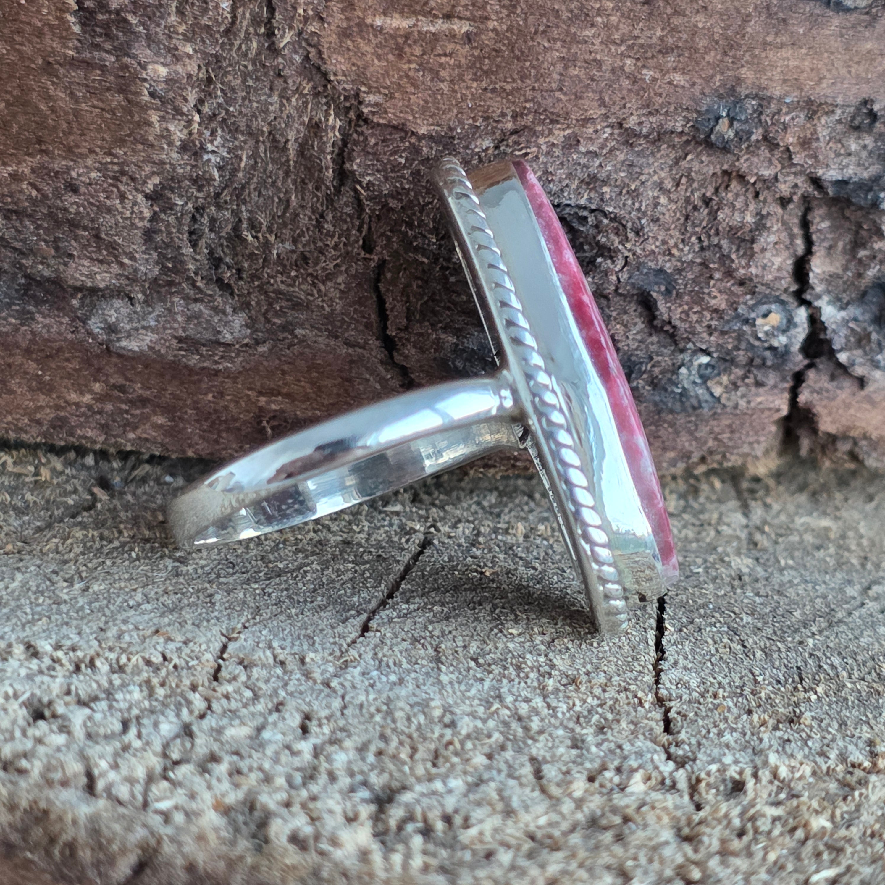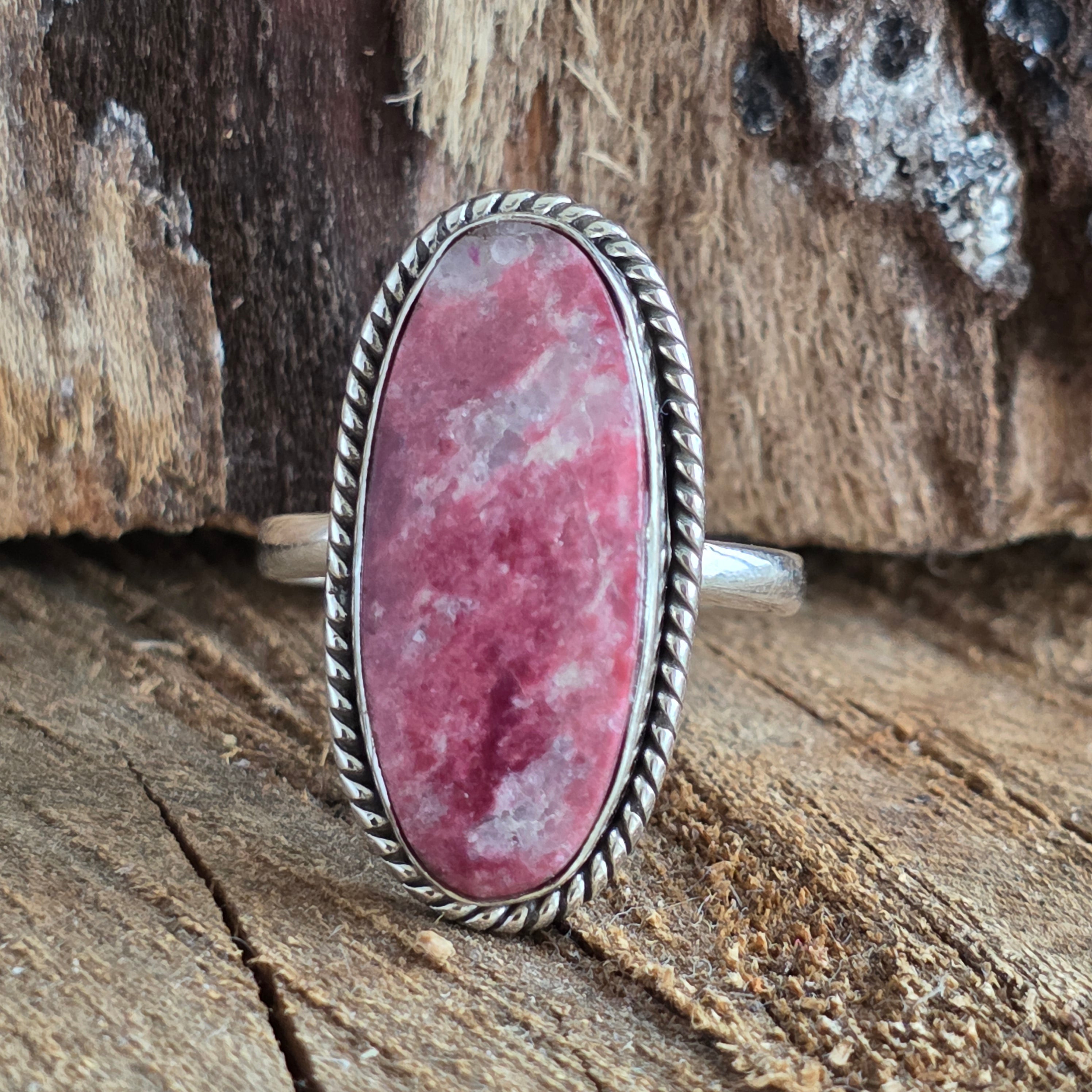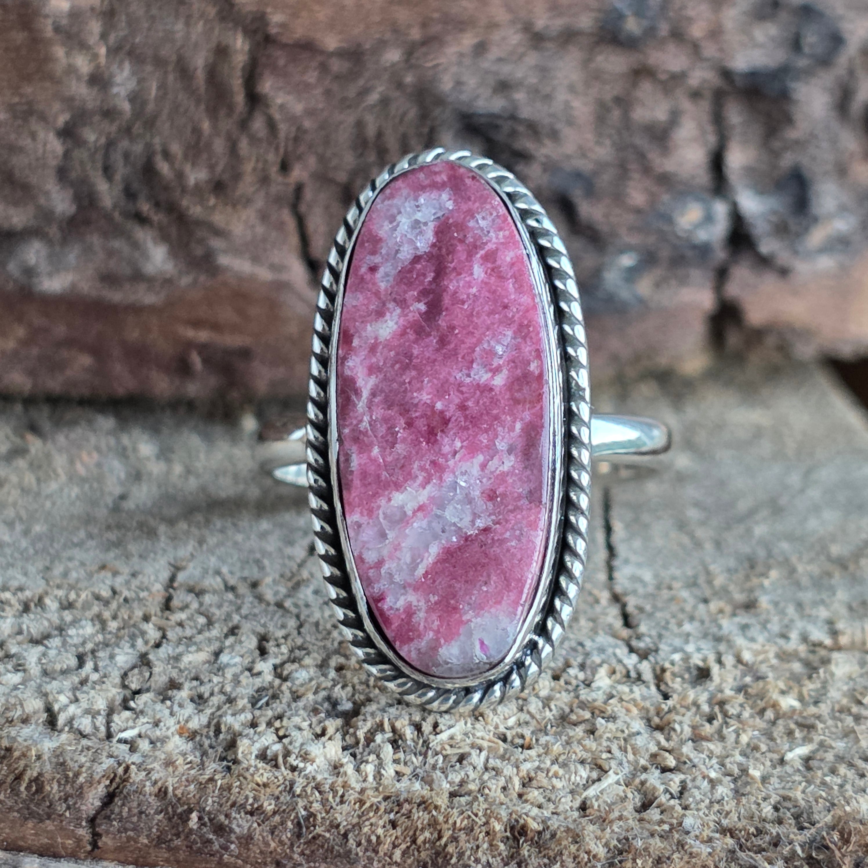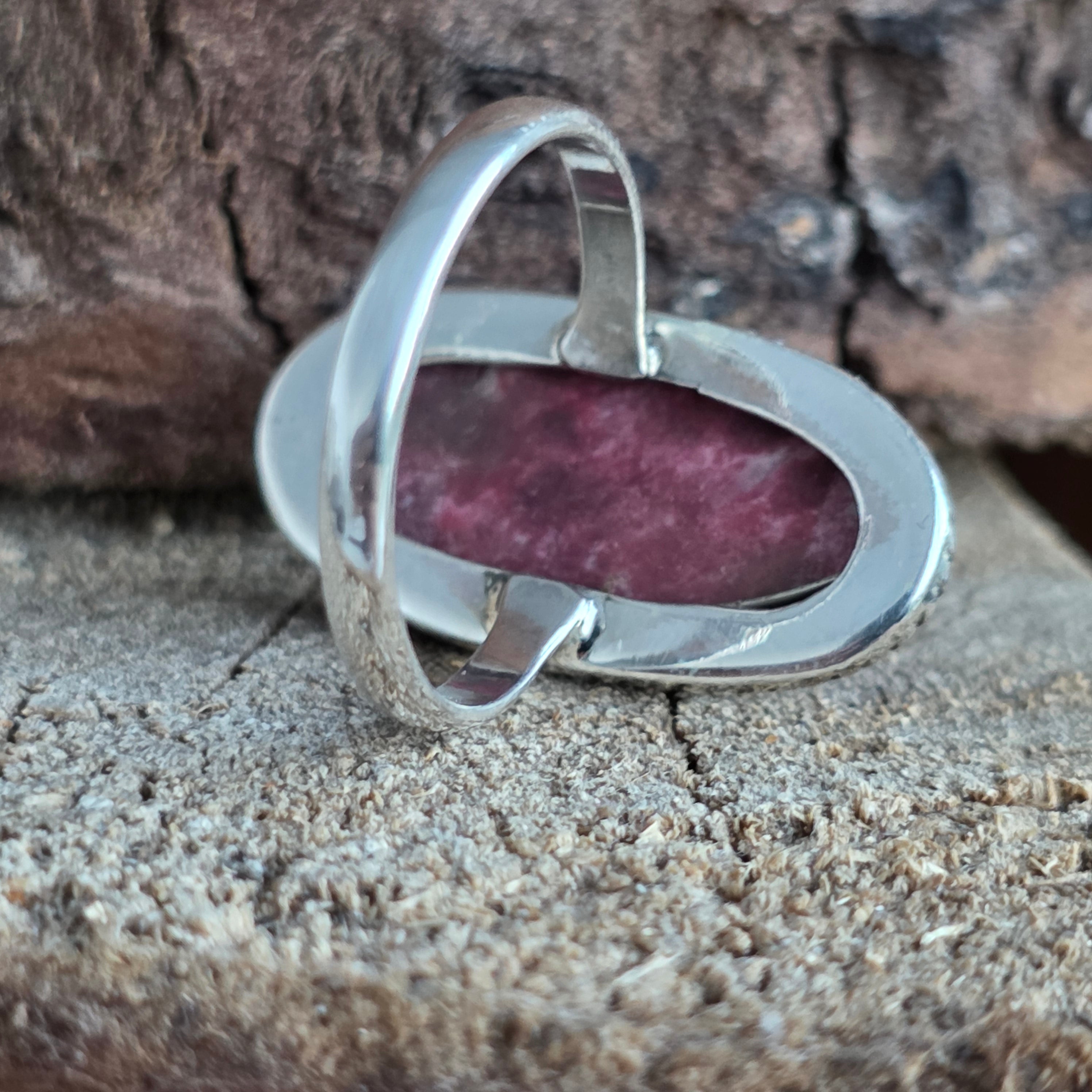 Сребърен пръстен 925, който носи в себе си енергията на северната земя – Тулитул, розов сорт на зоисит, с естествена текстура и фини цветни вариации между сьомгаво розово, фуксия и варовиково бяло.