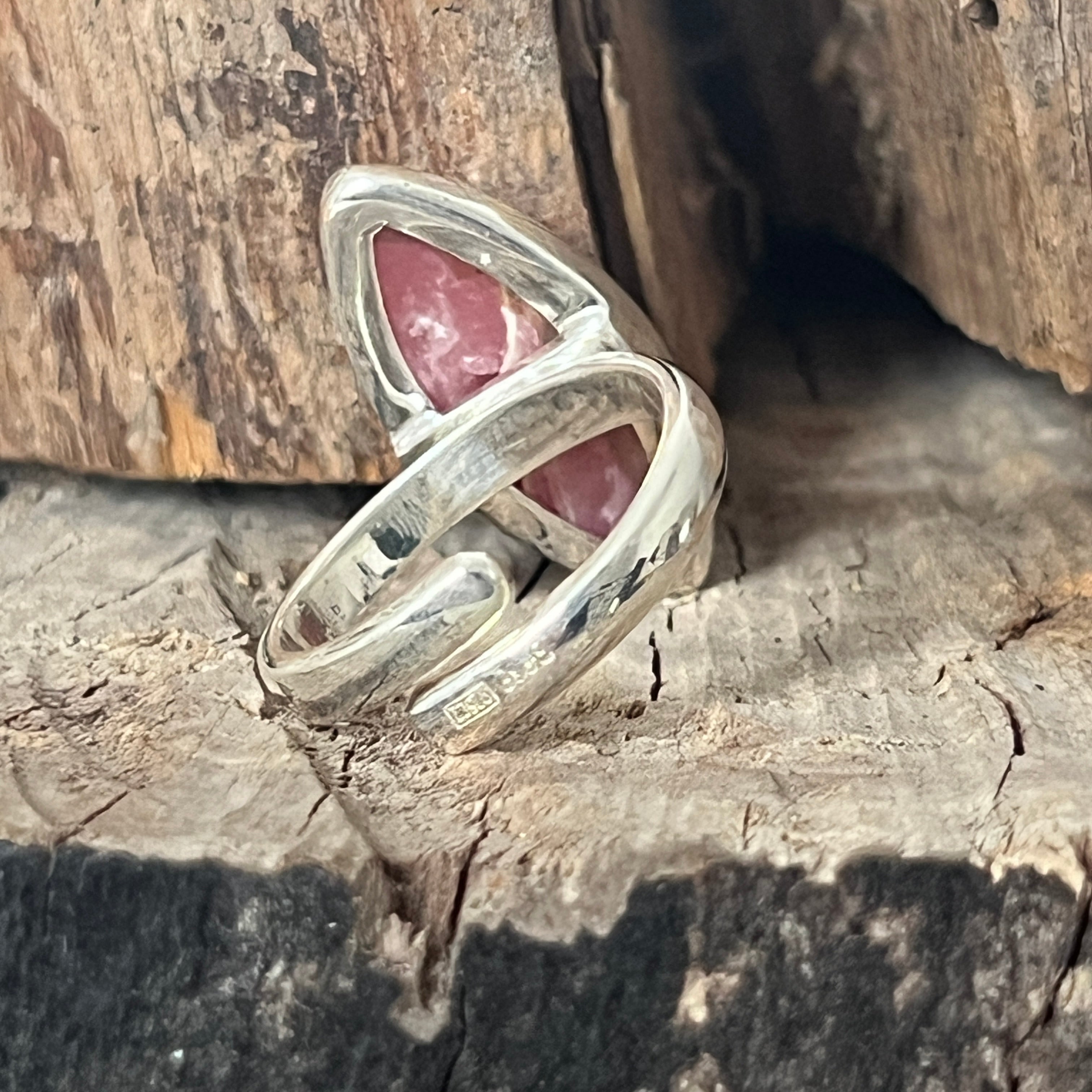 Този пръстен с естествен родохрозит, закрепен в сребро 925 е изключителен аксесоар, който съчетава красотата на камъка с класическата елегантност на среброто. Всеки пръстен е уникален благодарение на розово-коралловите жилки, характерни за родохрозита, което го прави истинско колекционерско бижу.