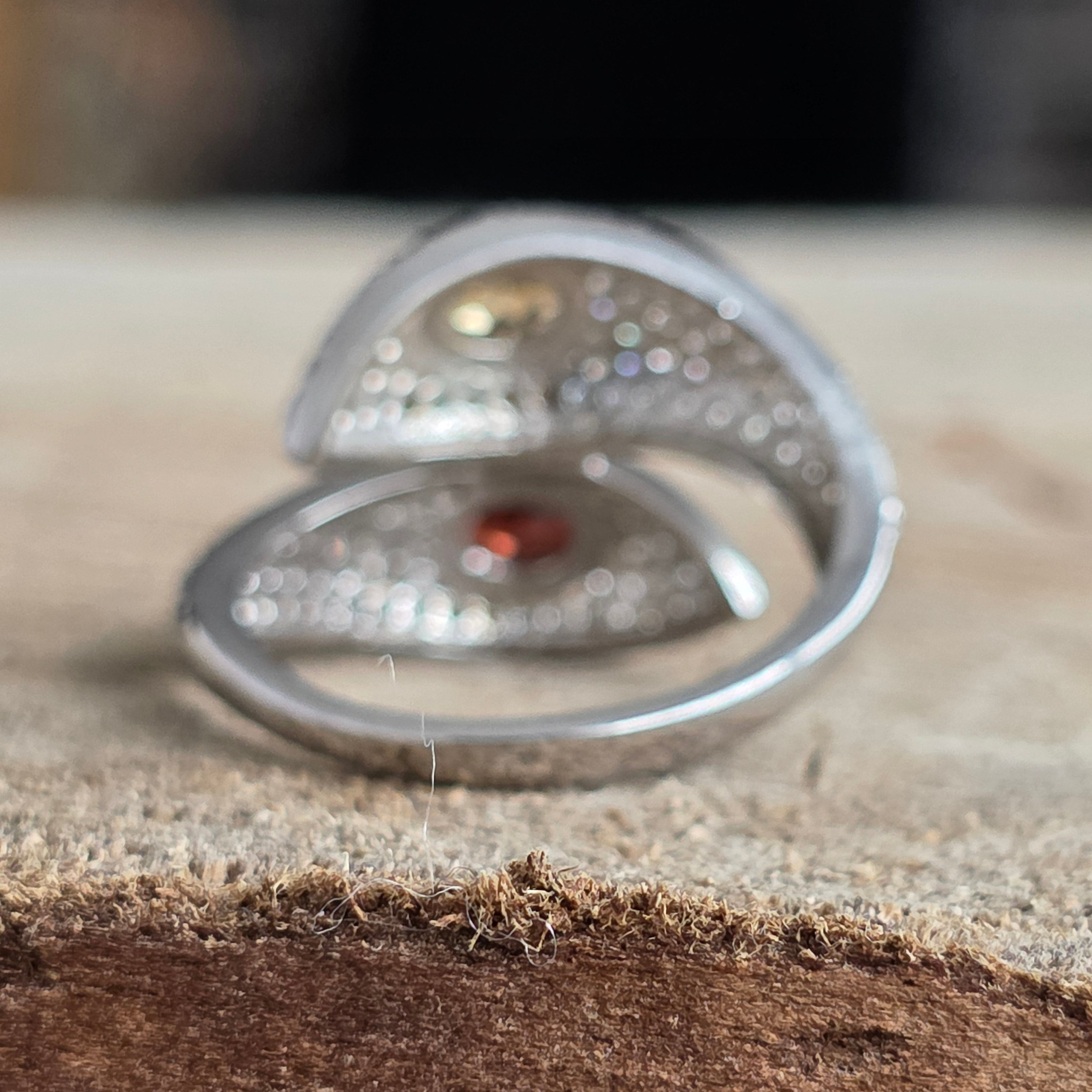 Пръстенът от сребро 925, обвит в стотици фини отблясъци от бял топаз, придава на този пръстен класическа елегантност, но и модерна вибрация.