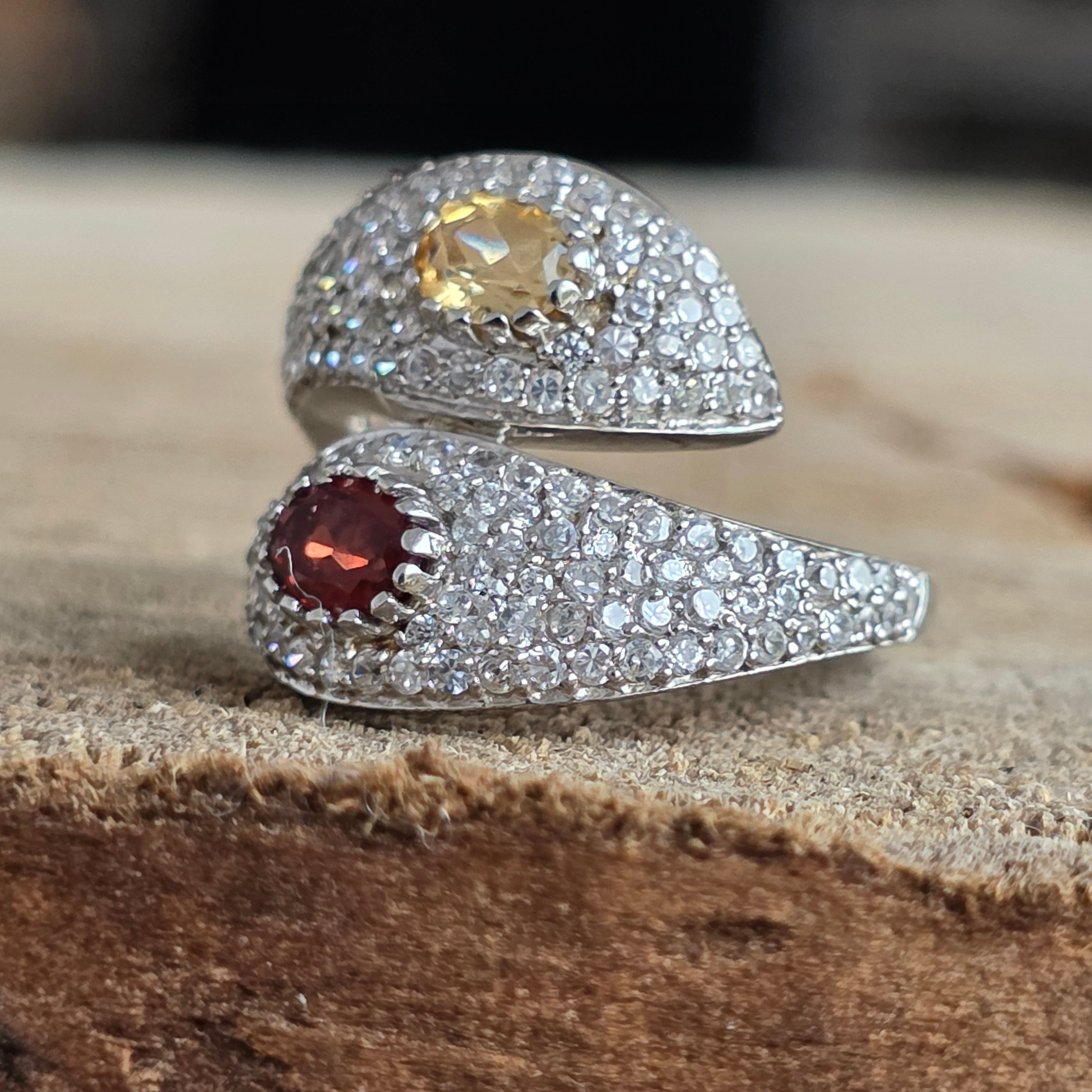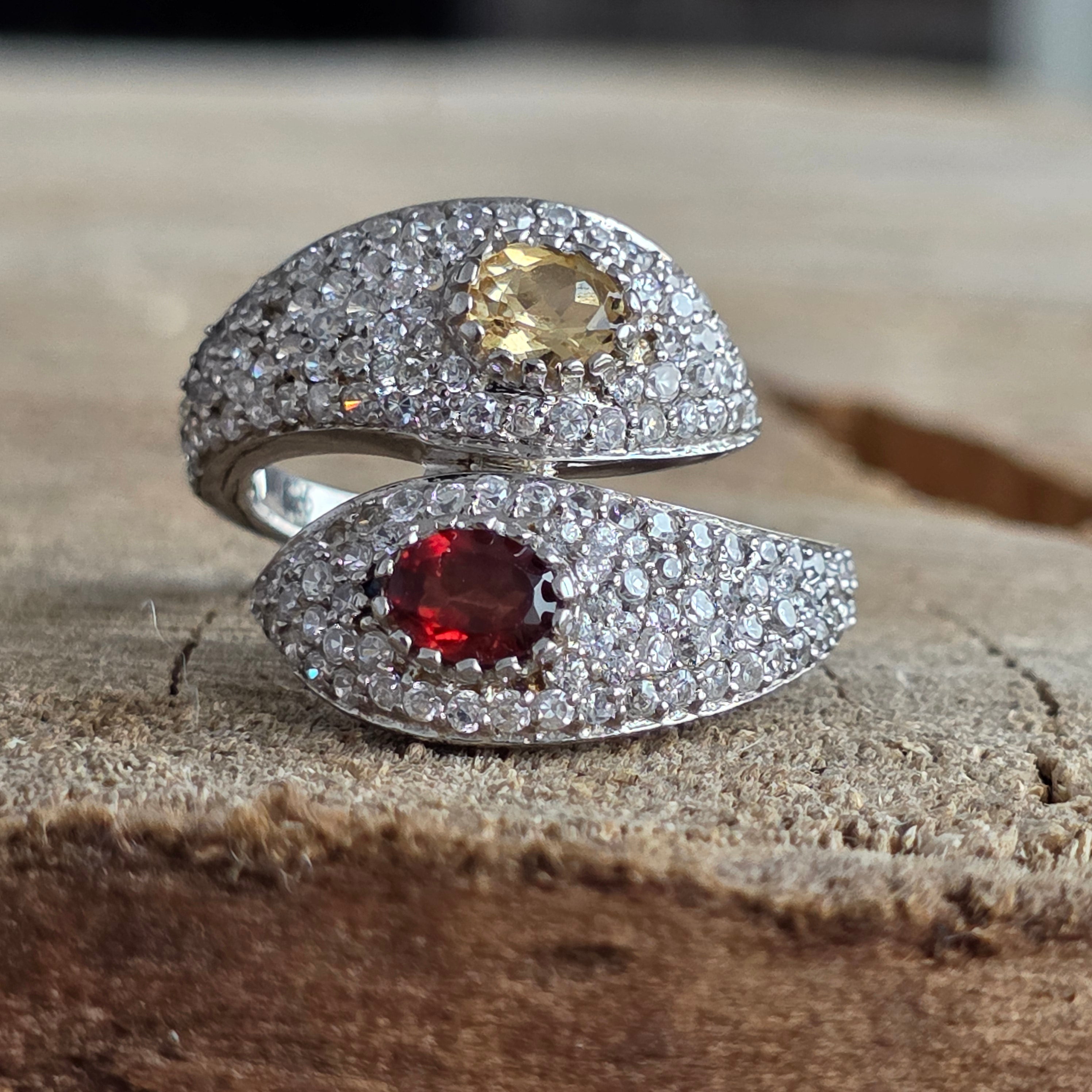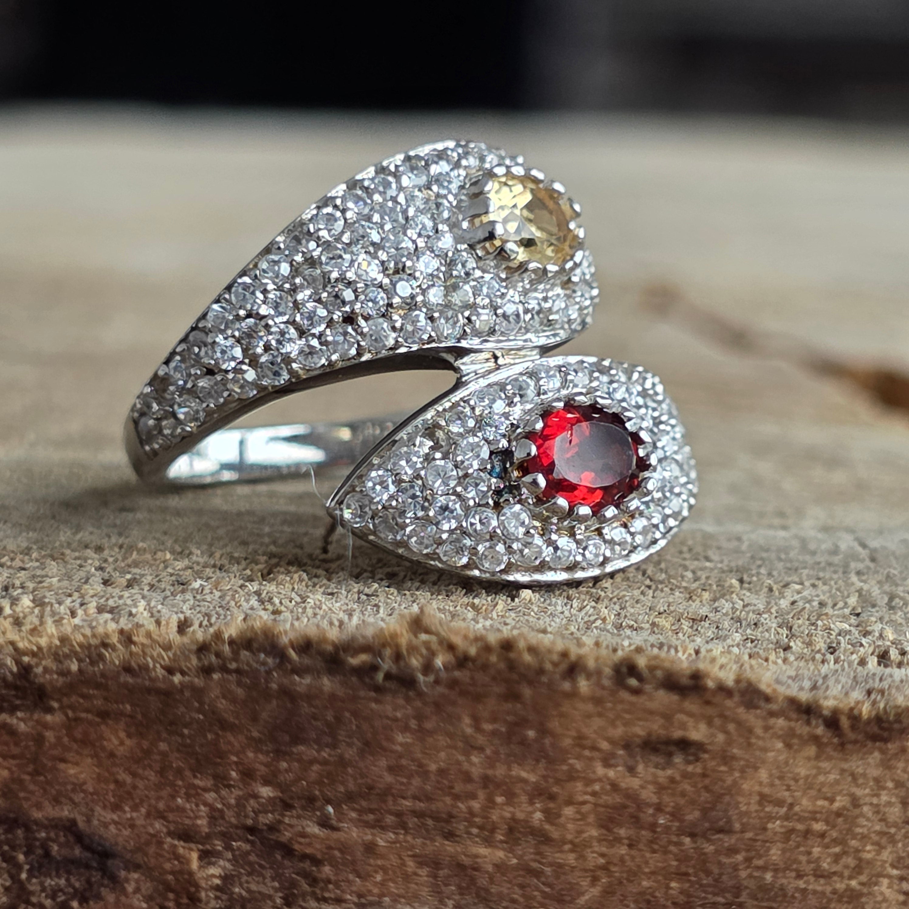 Ревюта – Сребърен пръстен с цитрин, гранат, циркон | ТРИО