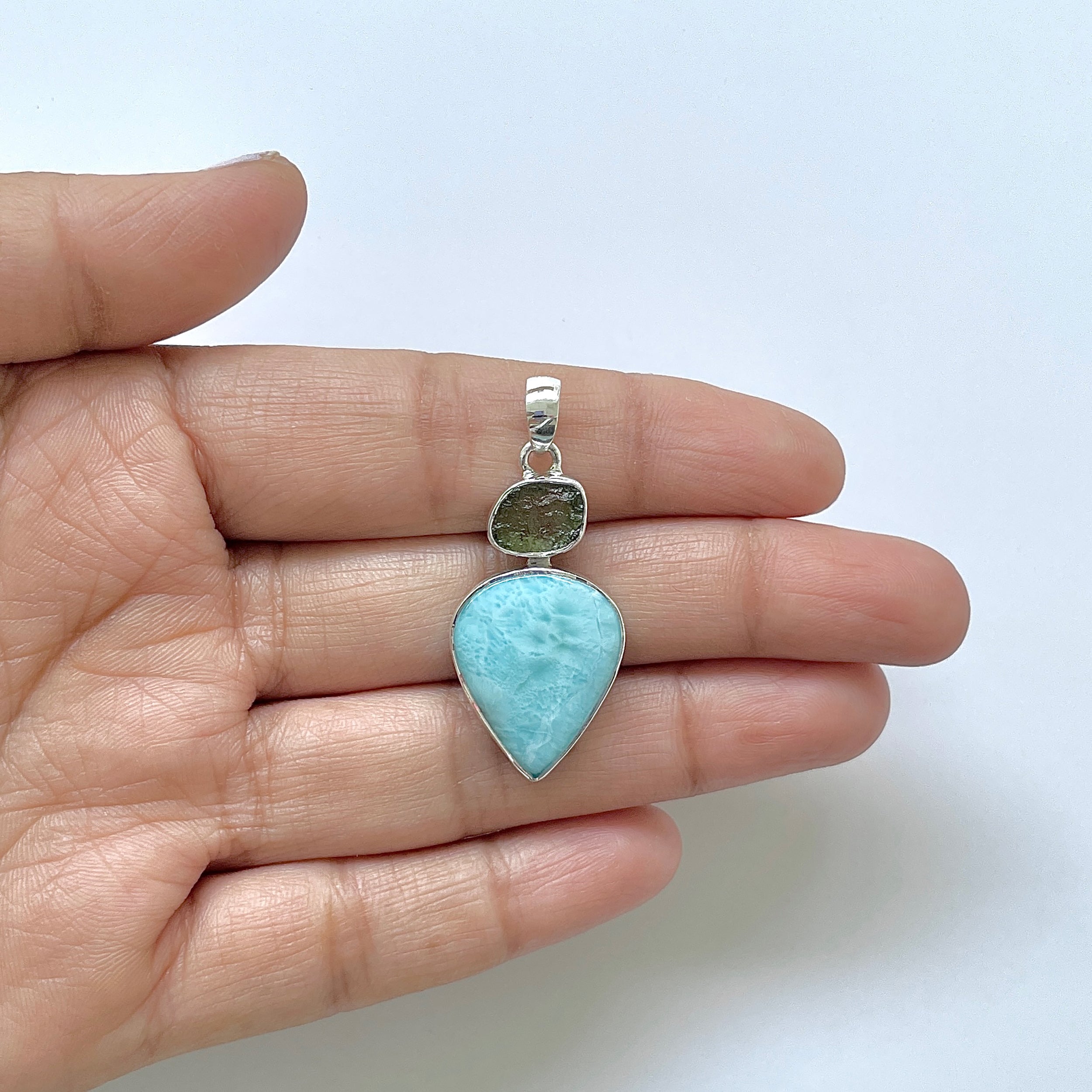 Ревюта – Сребърна висулка от ларимар | Модел 8