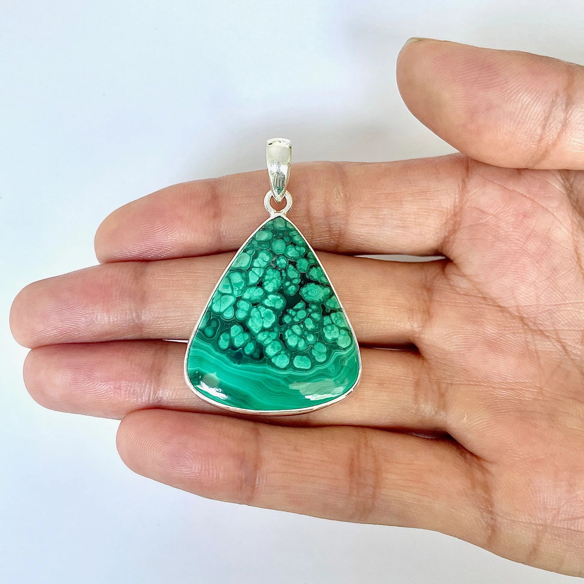 Ревюта – Сребърна висулка от малахит | Модел 3