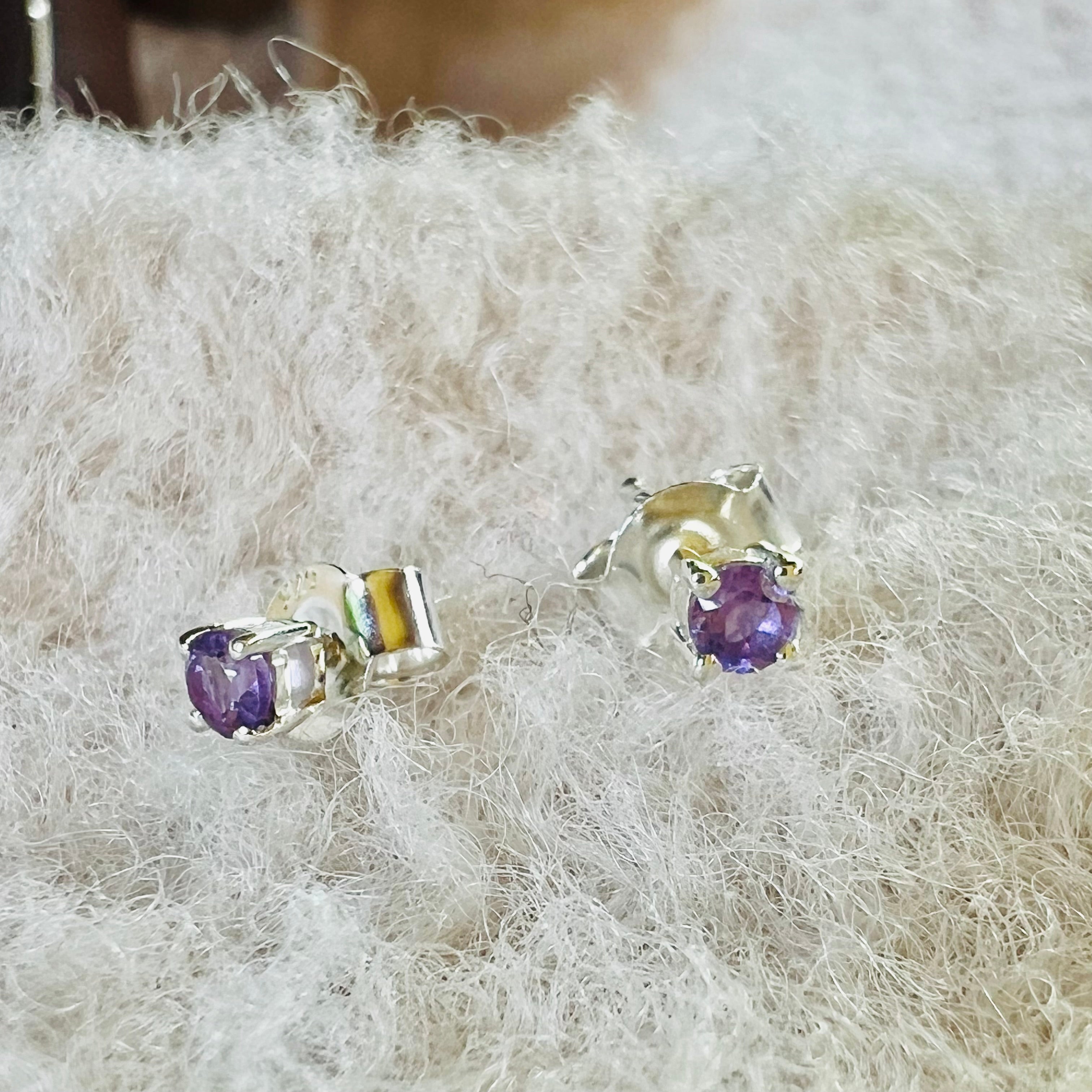 Descriere - Сребърни обеци с аметист 3 мм кръгли