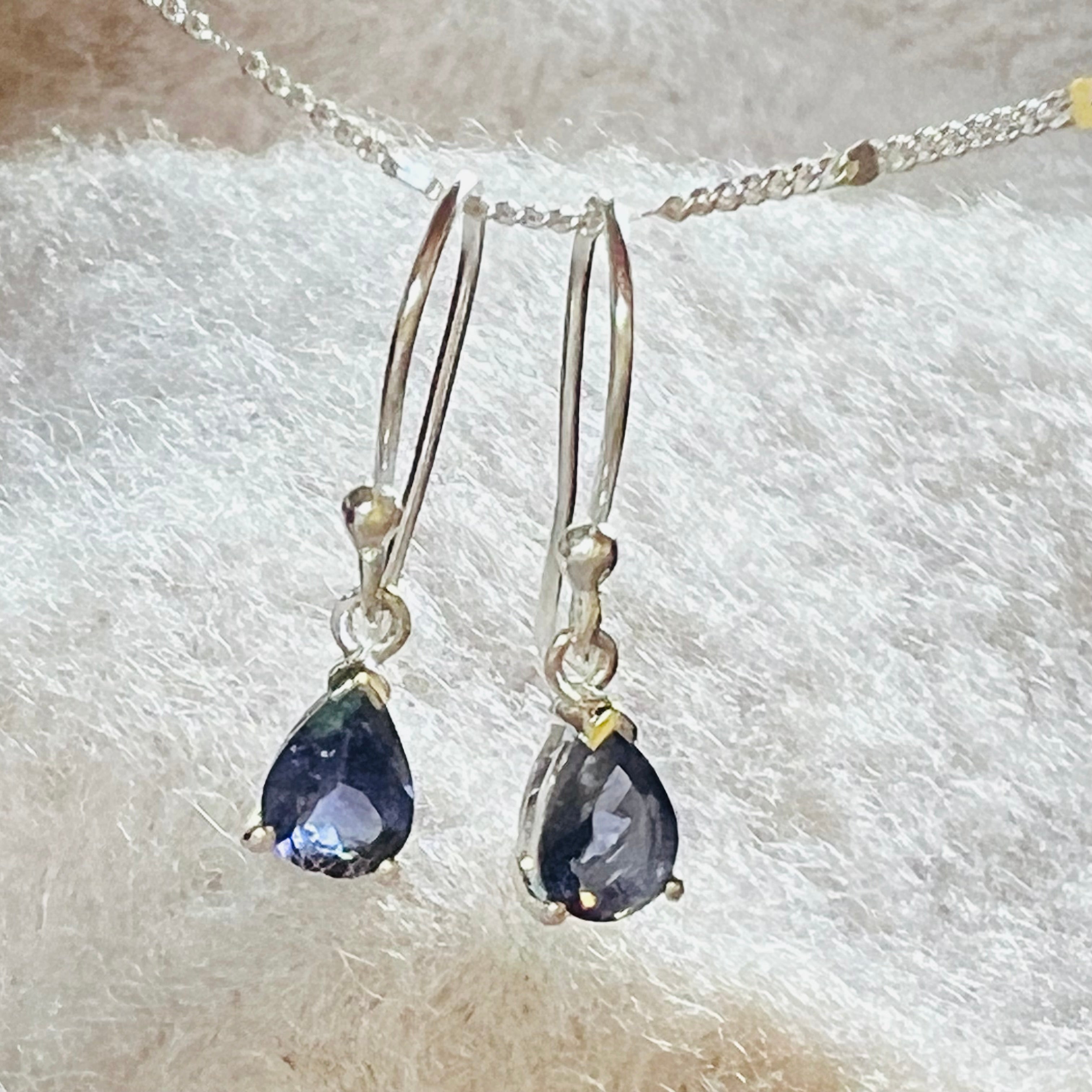 Сребърни обеци с иолит Pear 7 мм