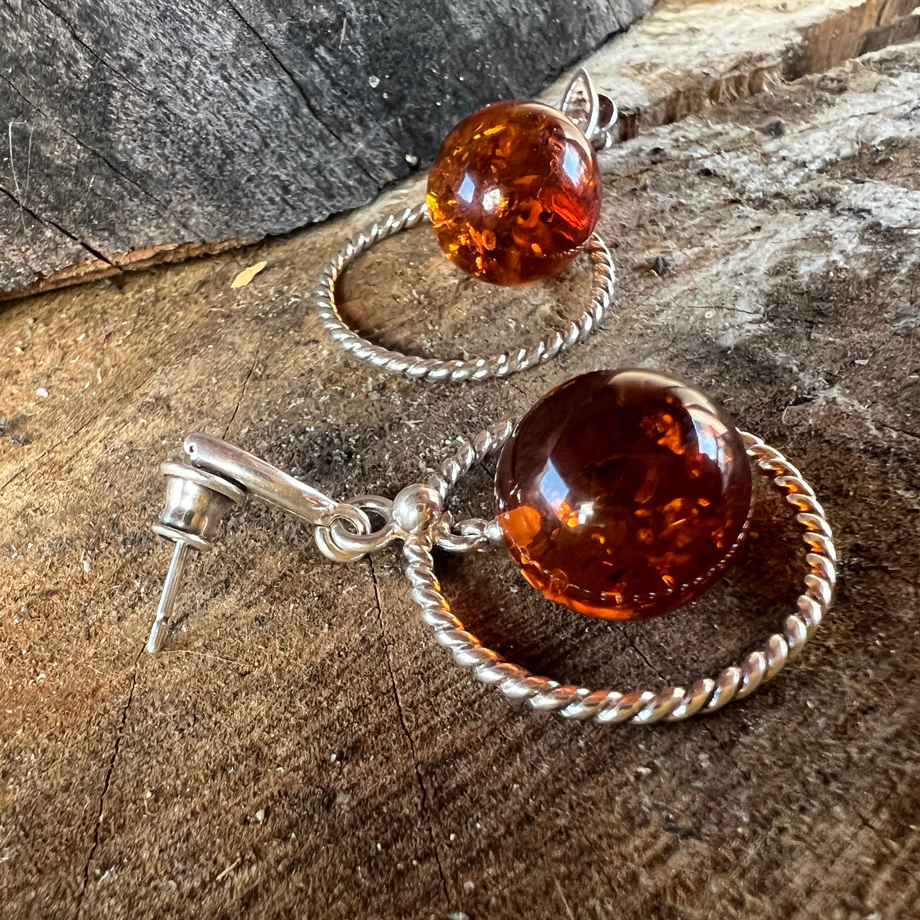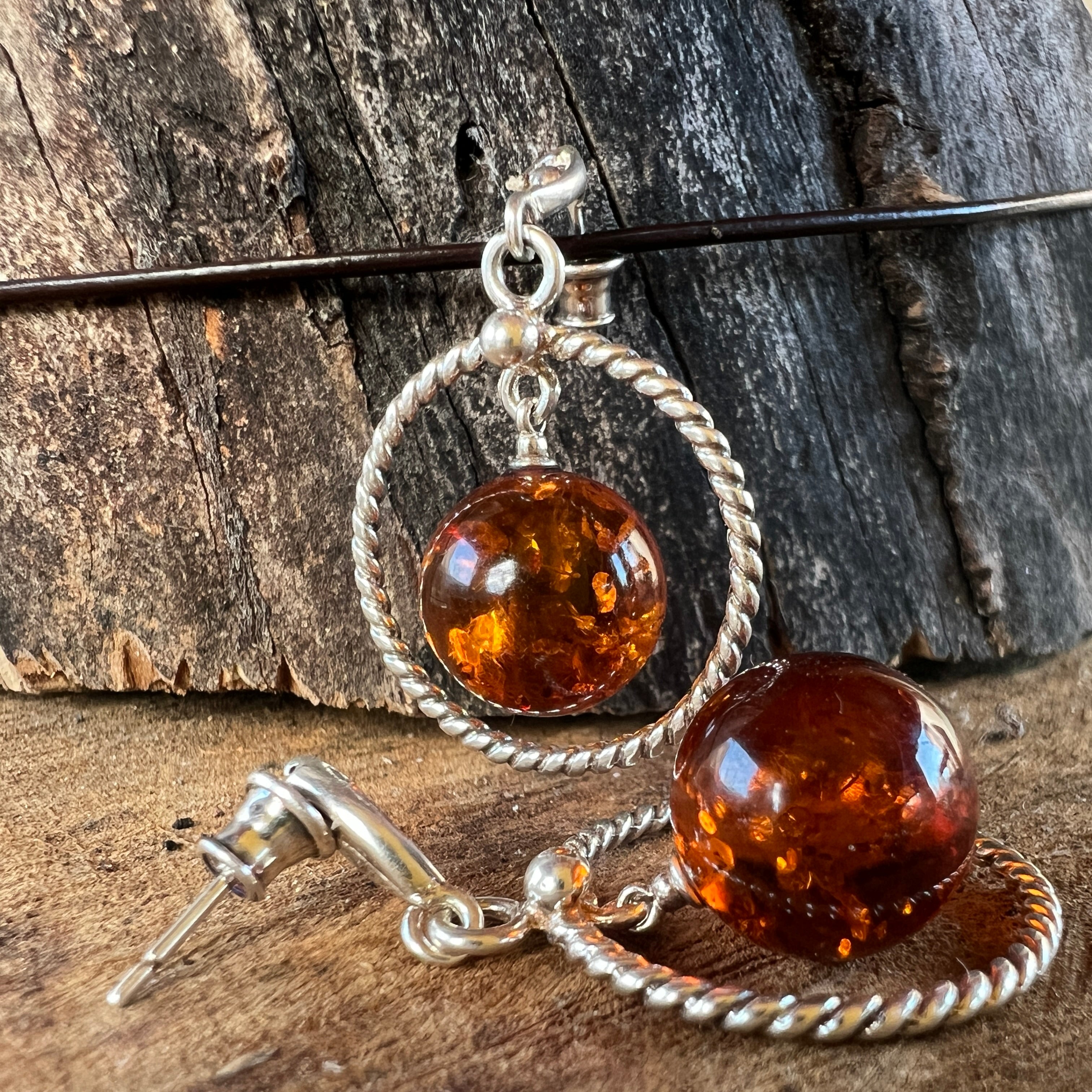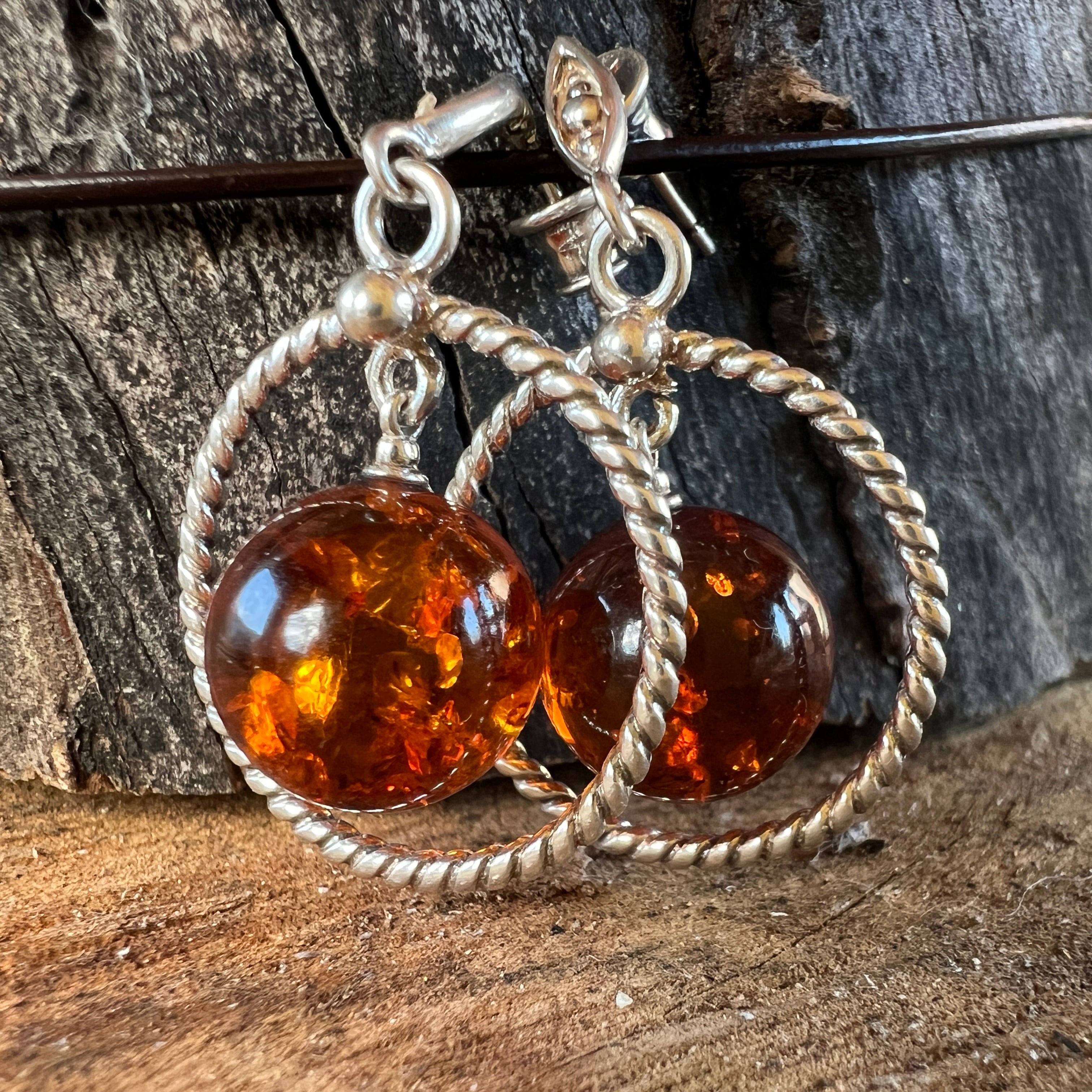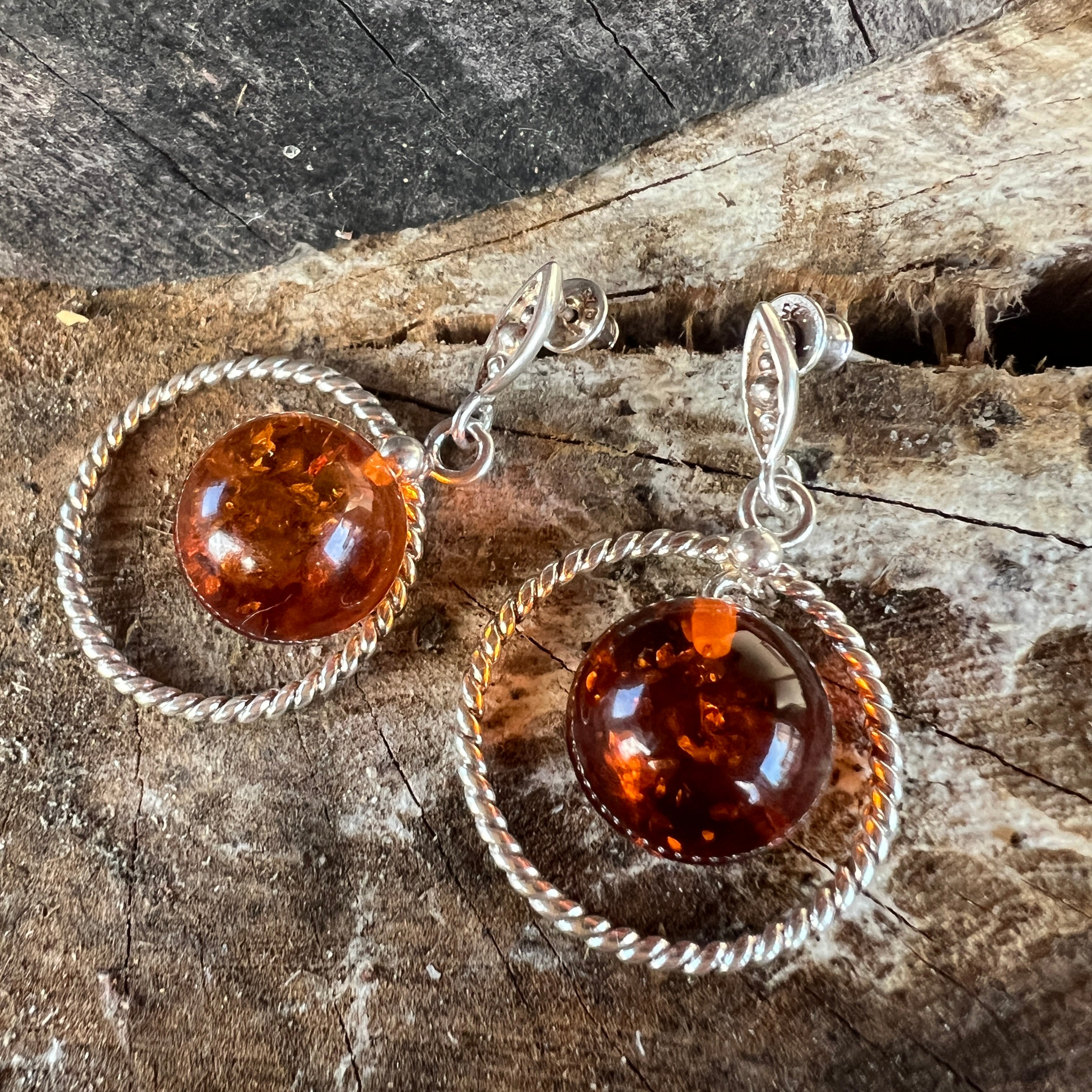 Ревюта – Сребърни обеци с кехлибар Amber1