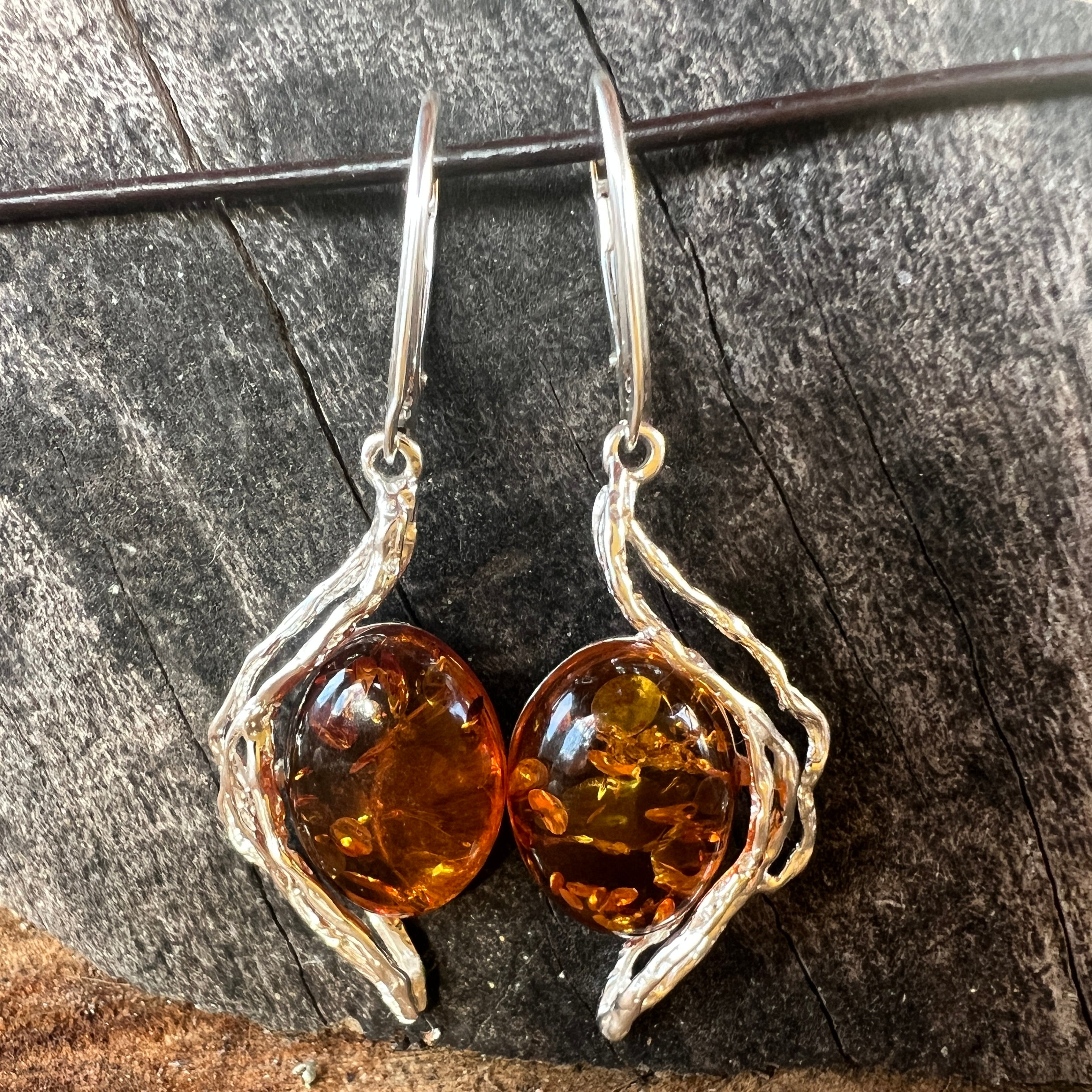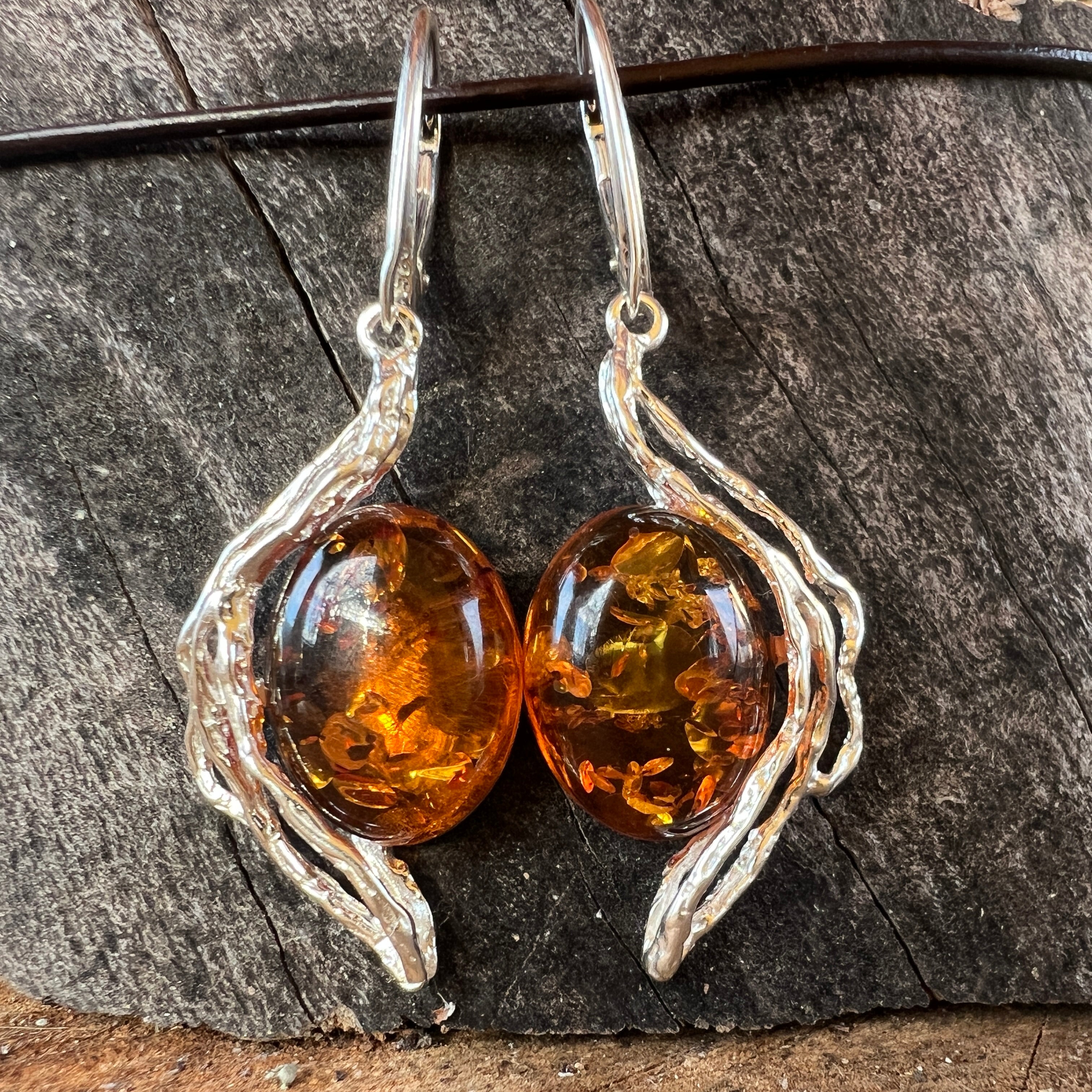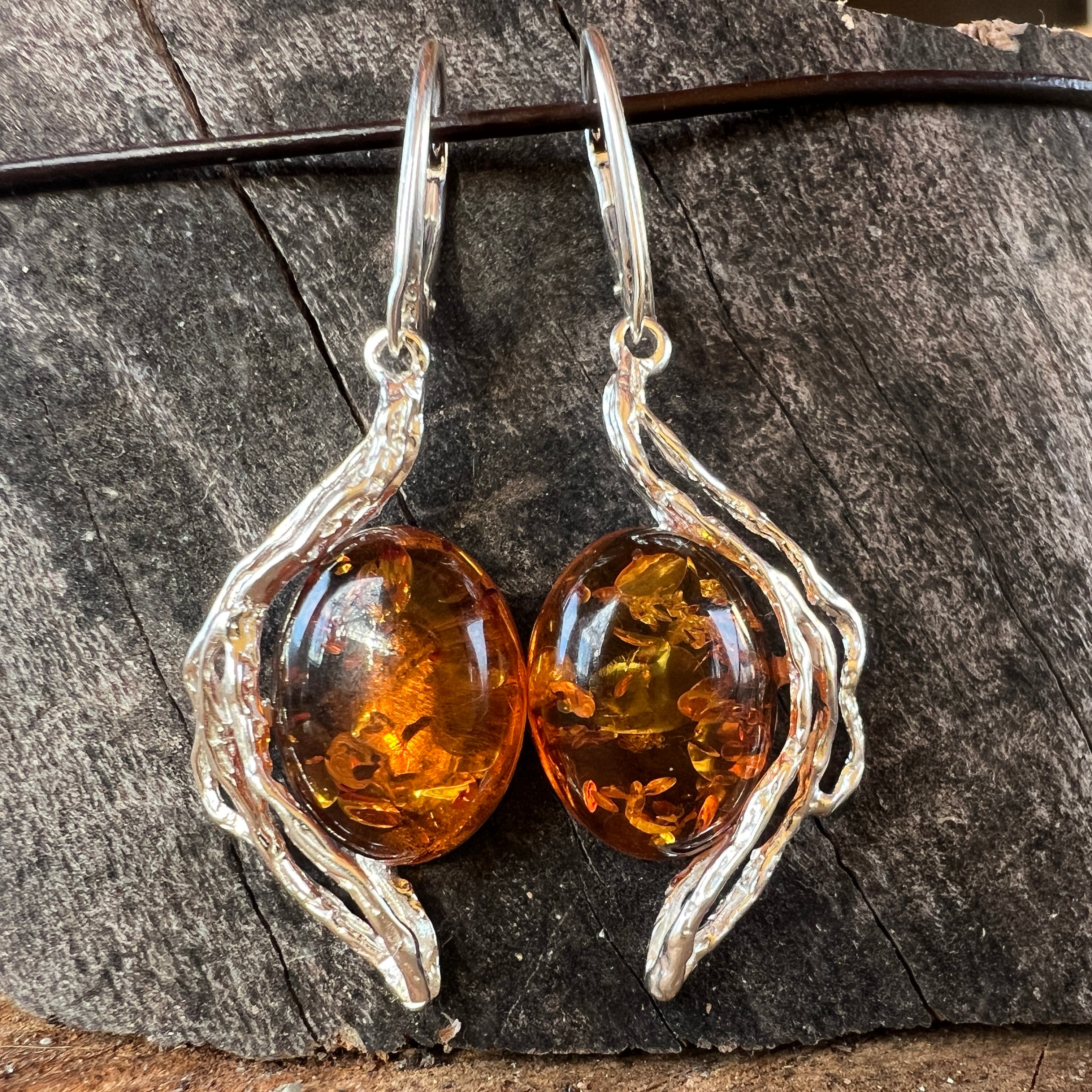 Ревюта – Сребърни обеци с кехлибар Amber14