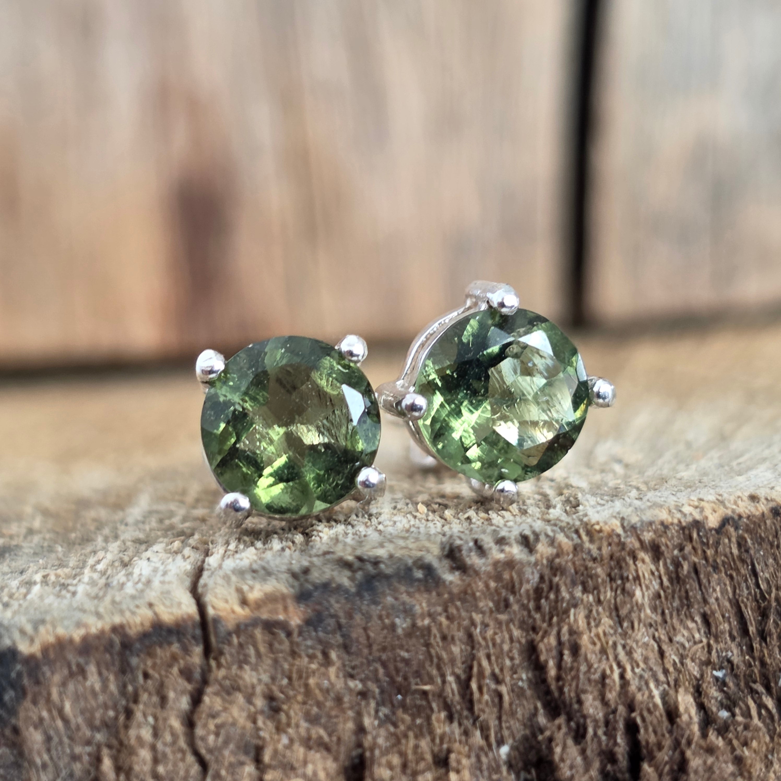 Сребърни обеци с мъниста молдавит 6 мм кръгли
