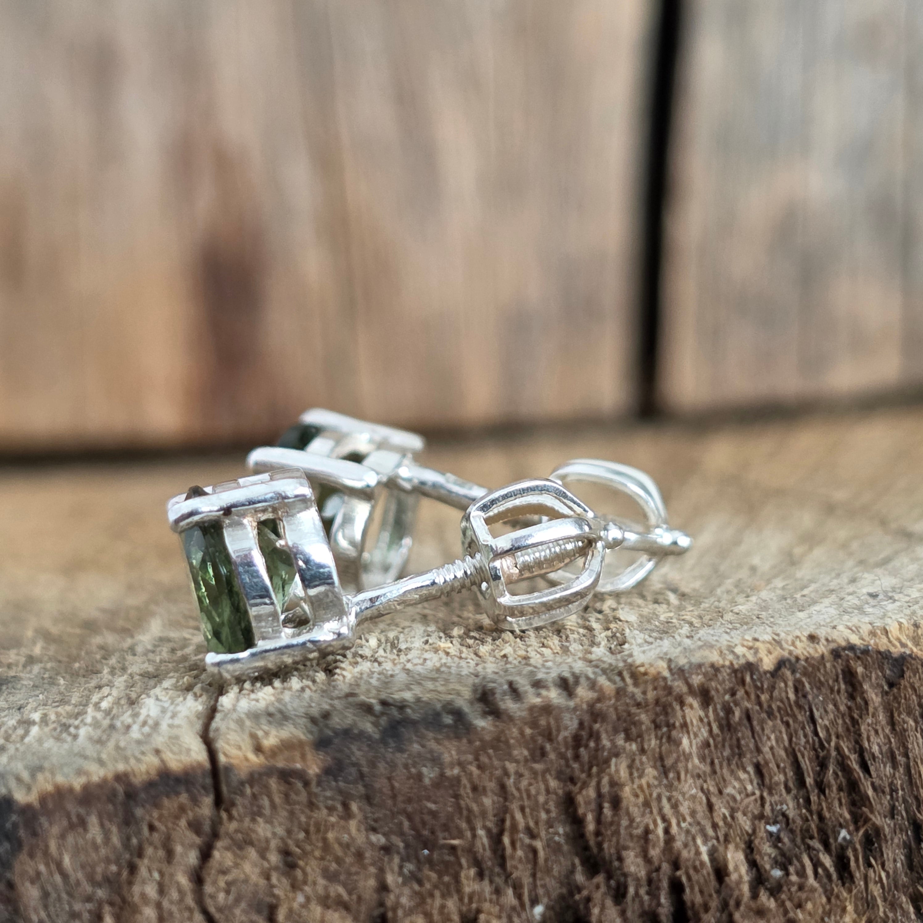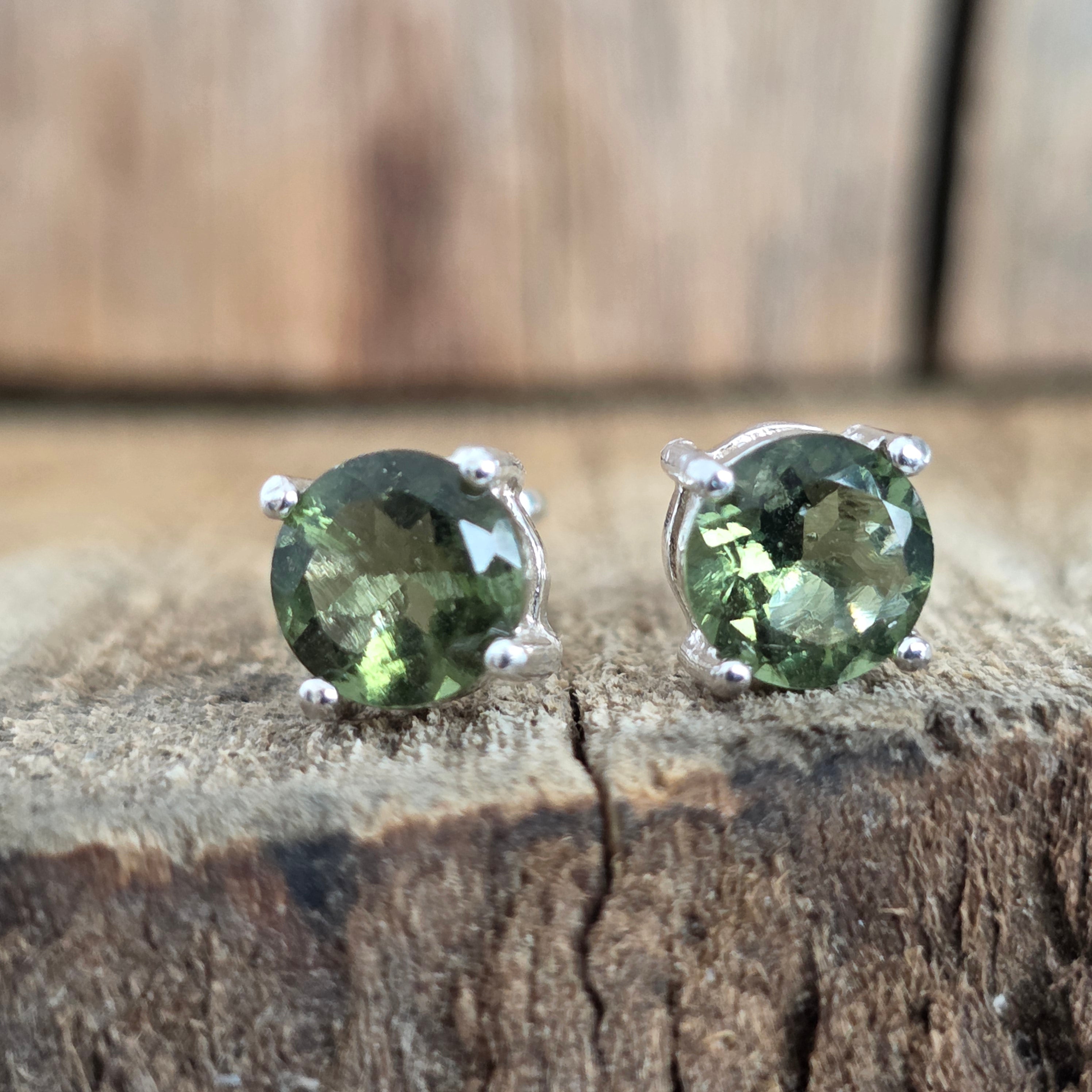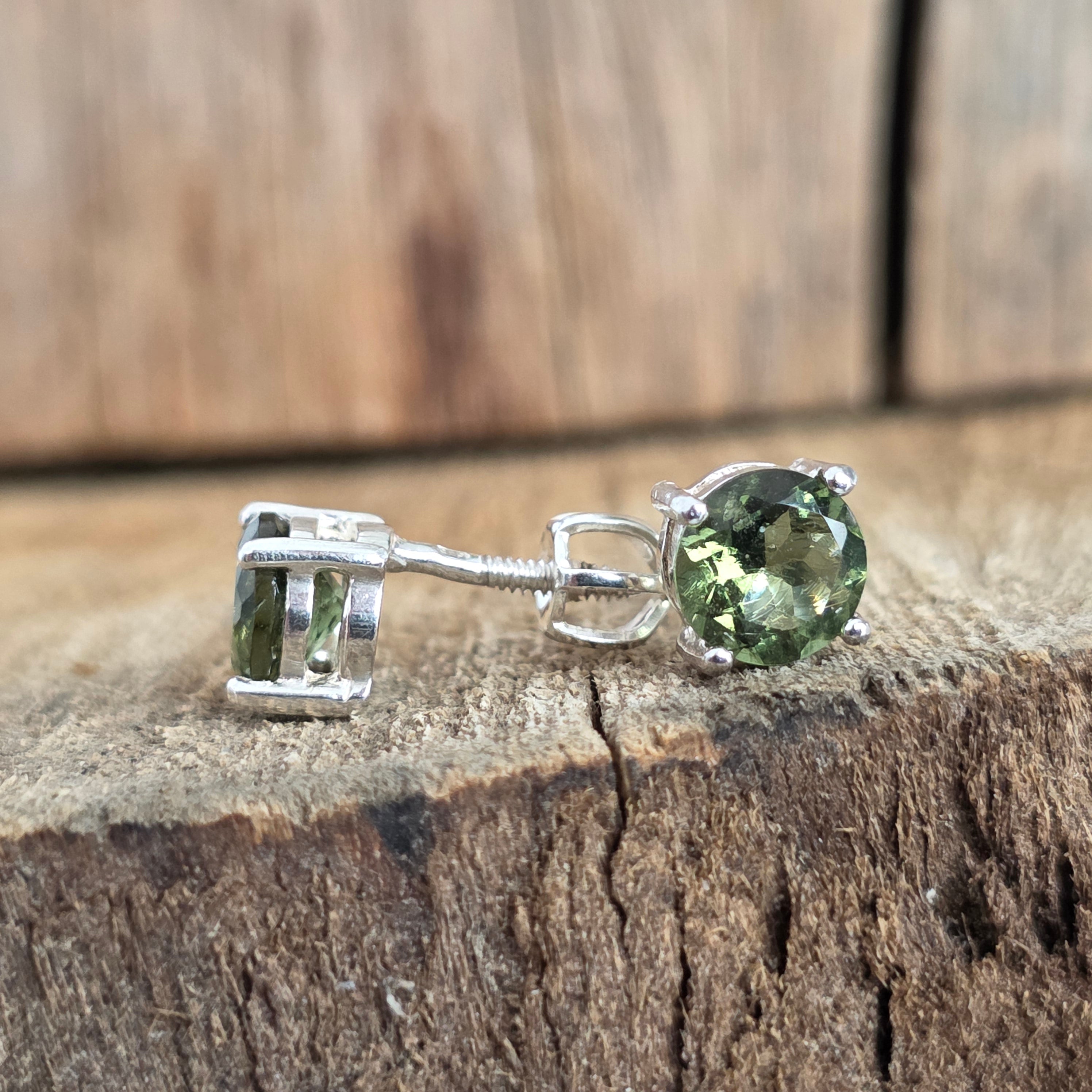 Описание - Сребърни обеци с мъниста молдавит 6 мм кръгли