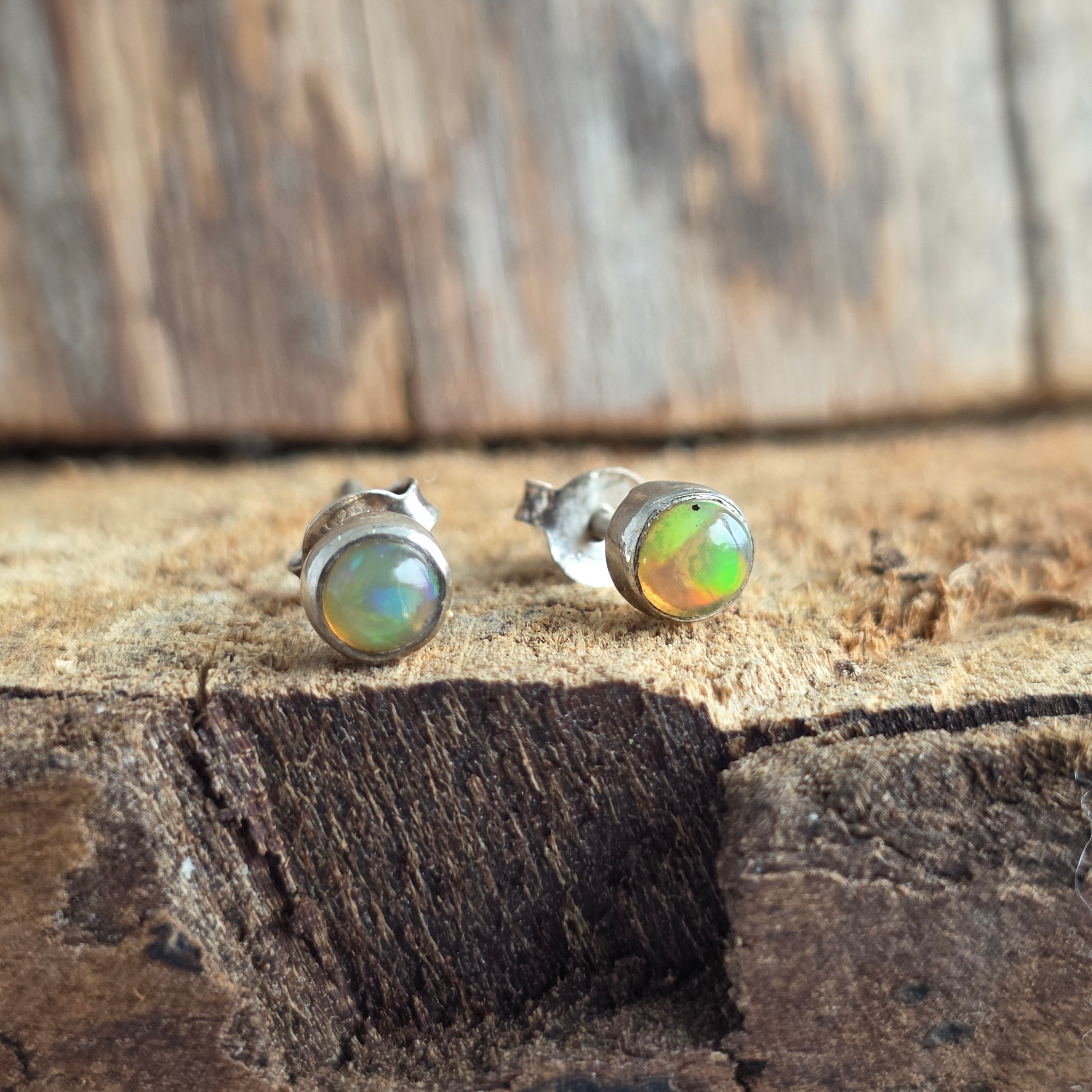 Ревюта – Сребърни обеци с опал Round | Модел 3