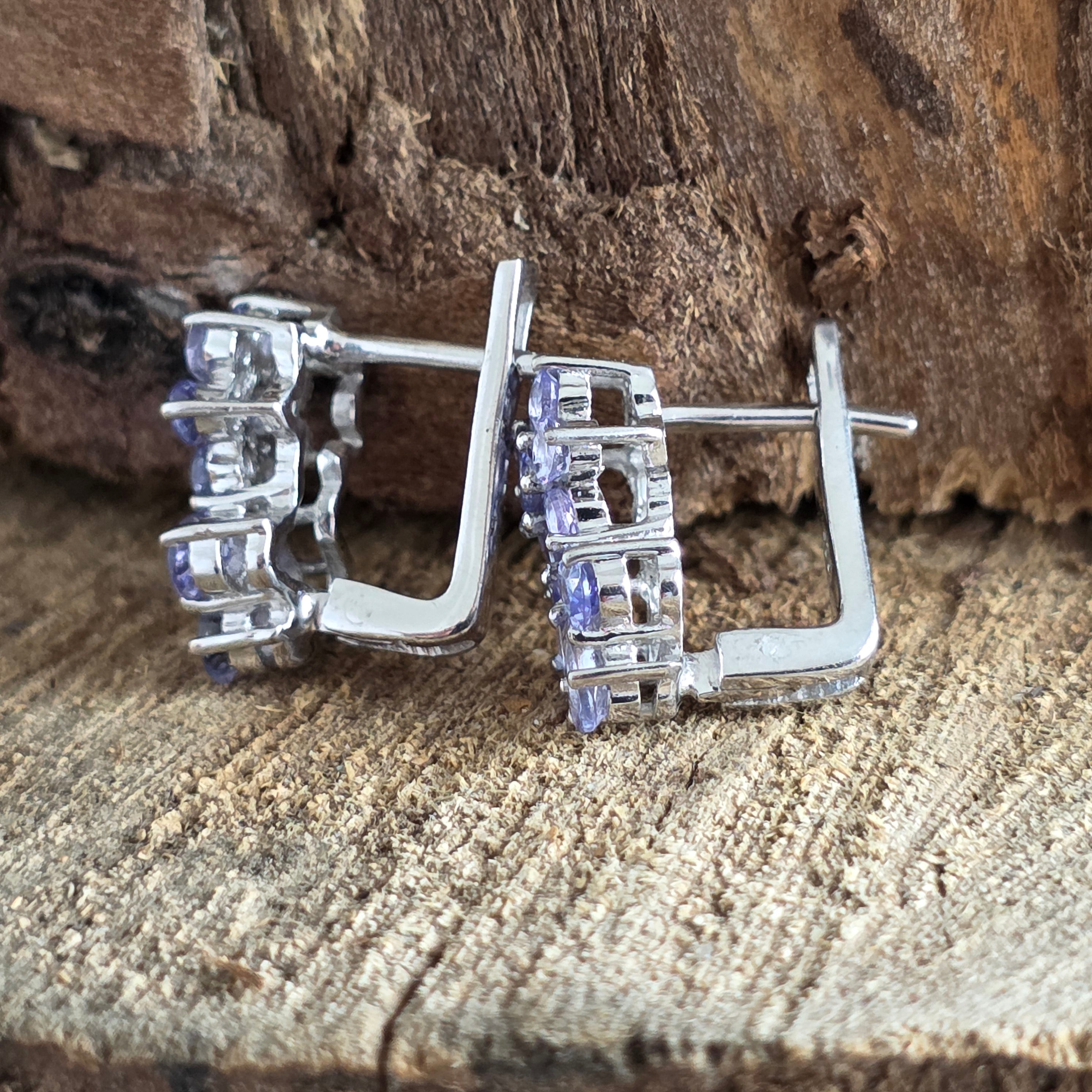 Тези обеци от сребро 925 с родиево покритие с естествен танзанит въплъщават изискания стил и дискретния блясък на фините бижута.