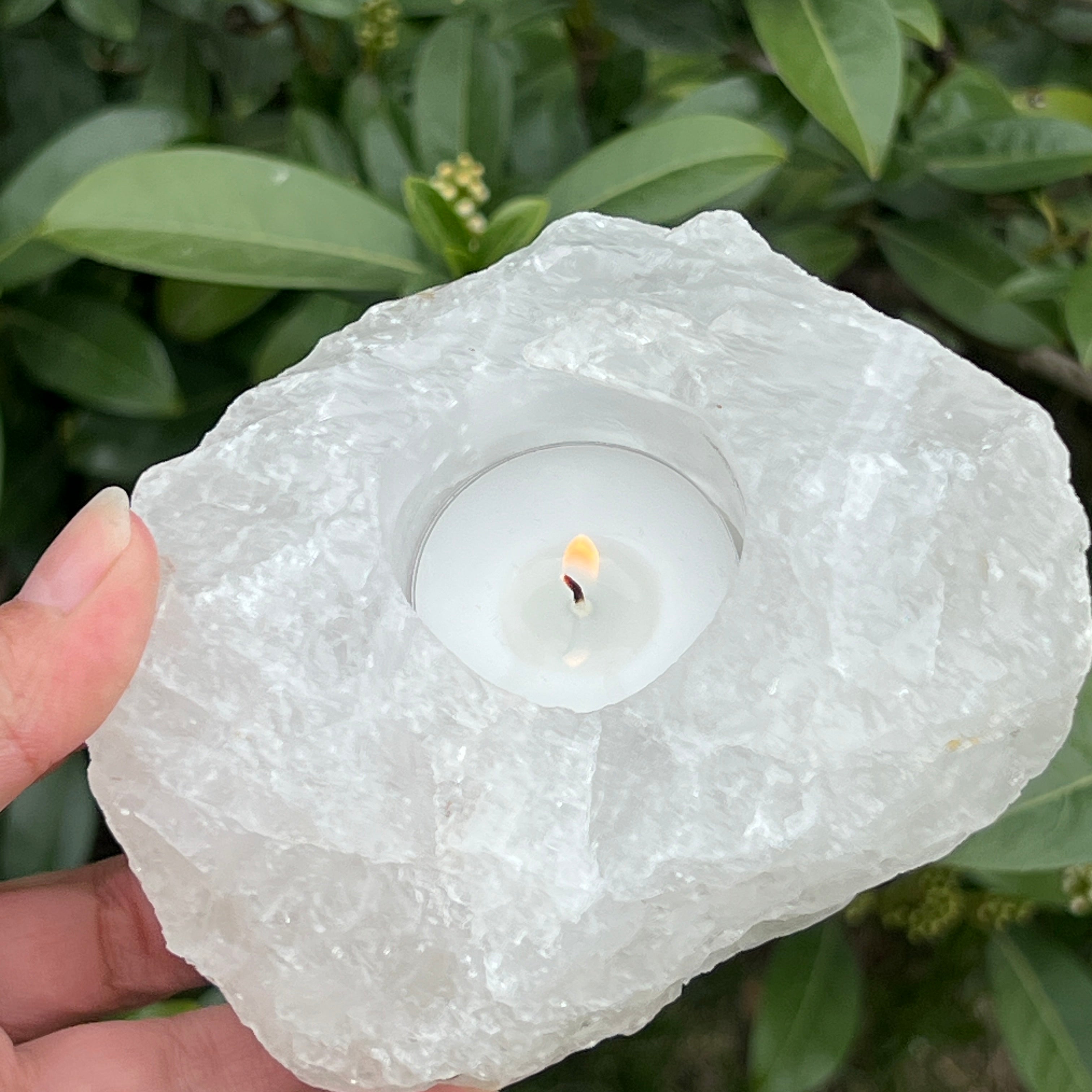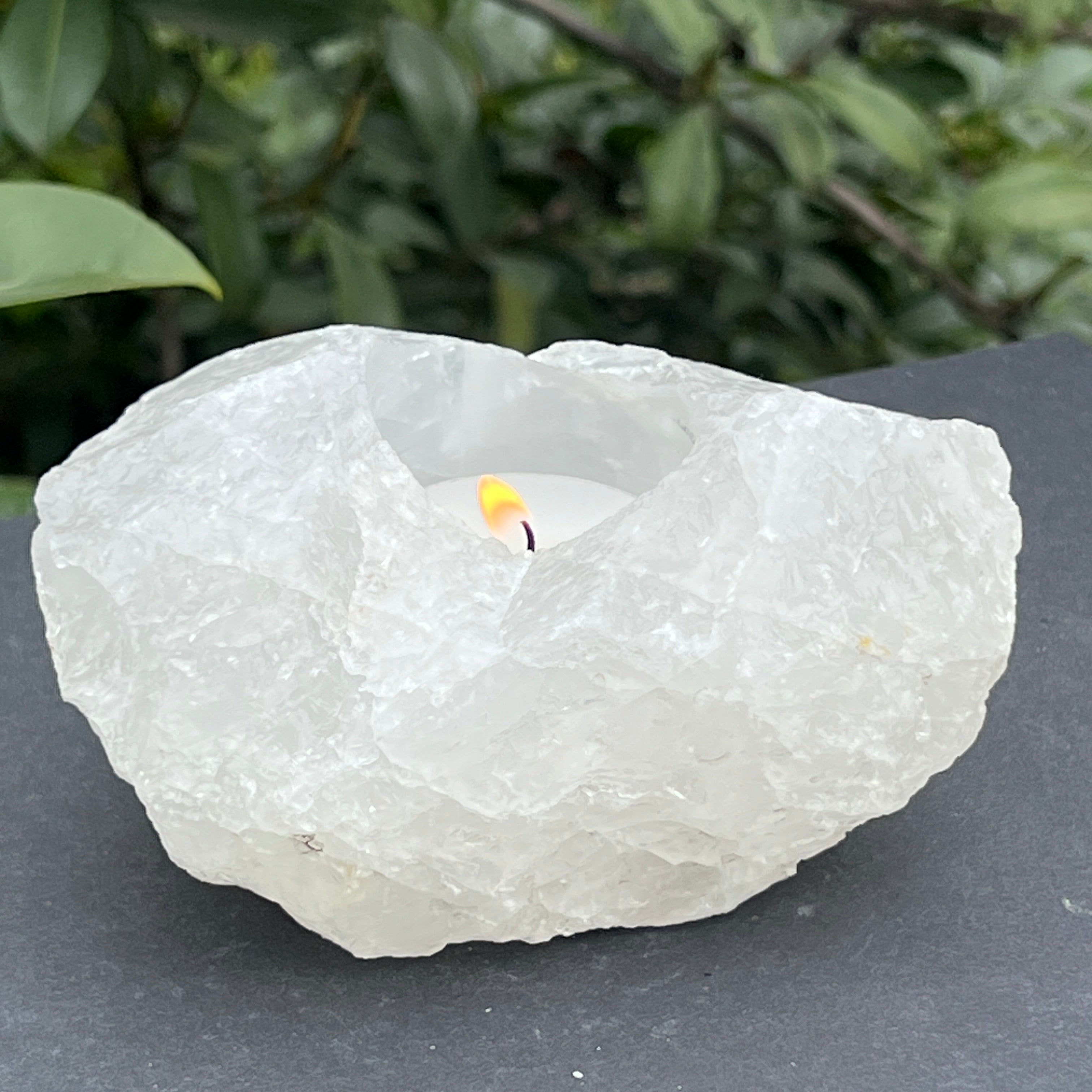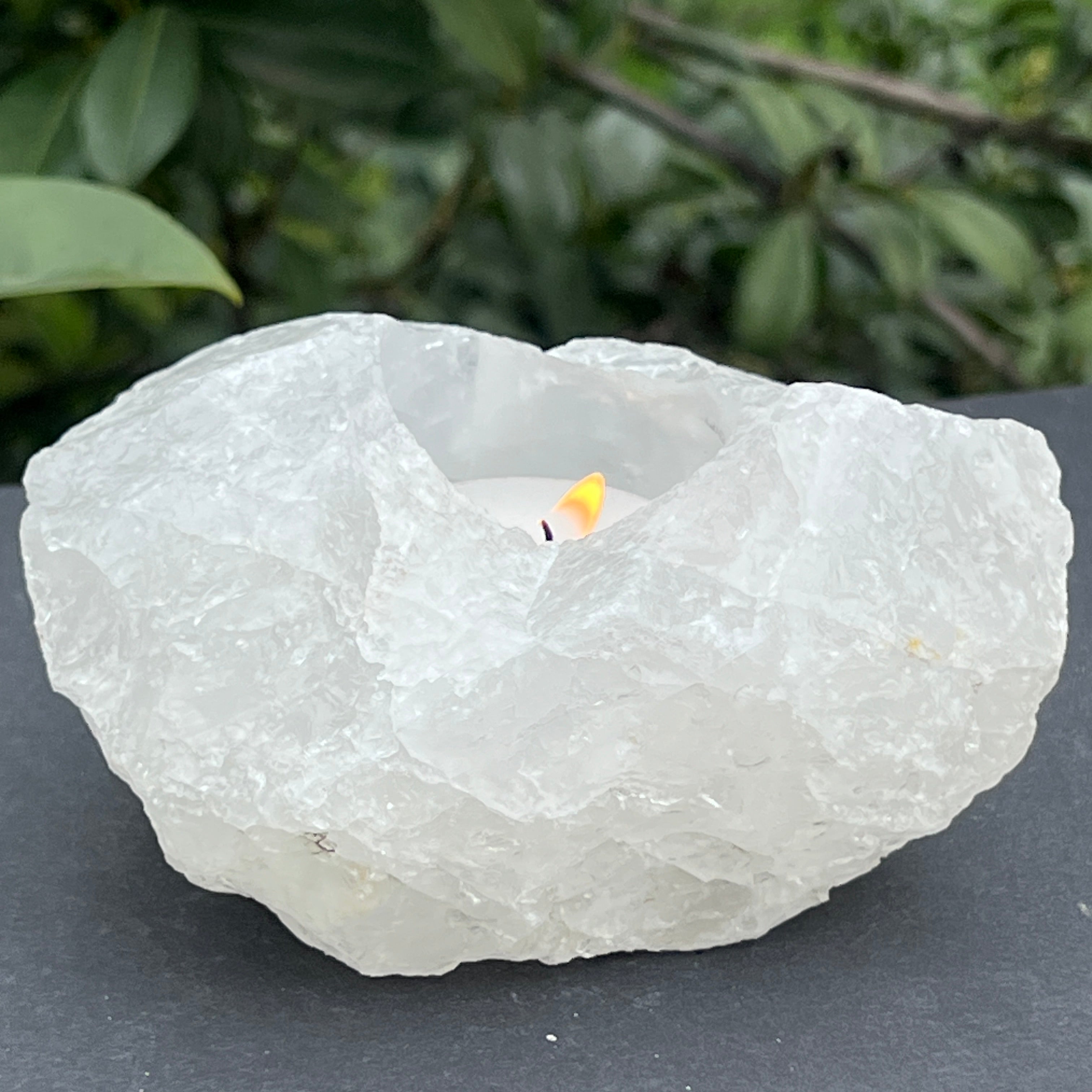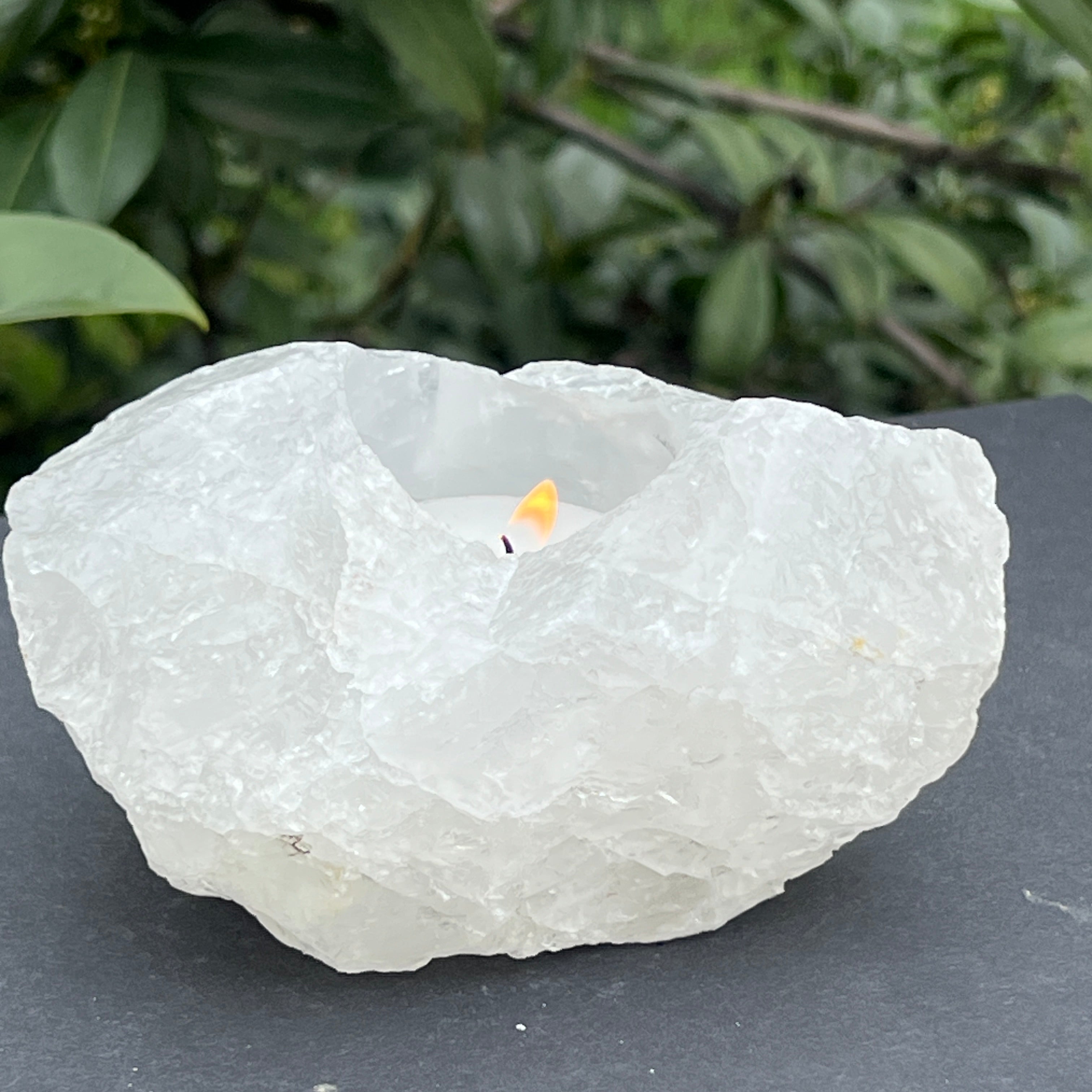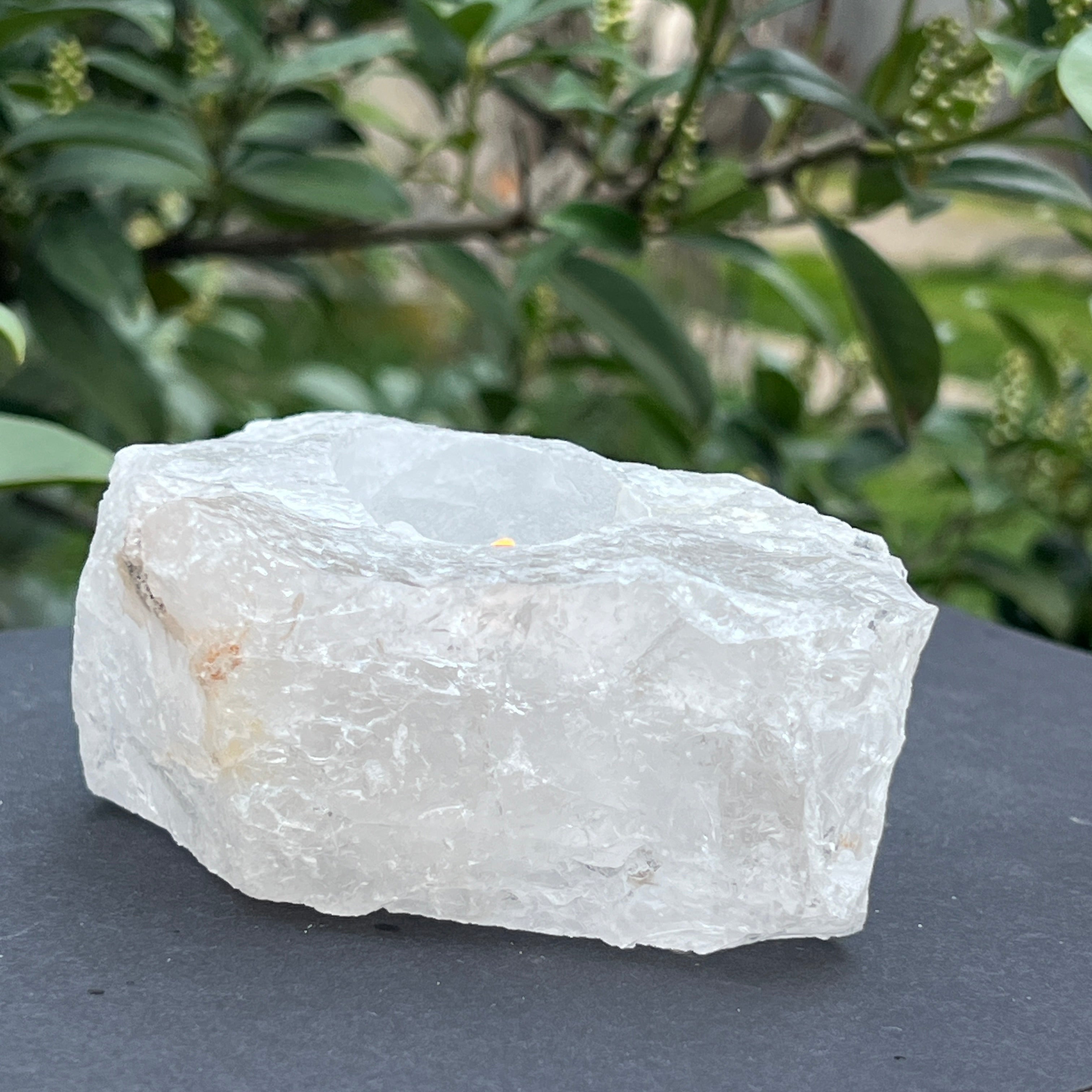 Стенд за свещ от планински кварц, приблизителни размери: 13-14 * 10 * 5 см