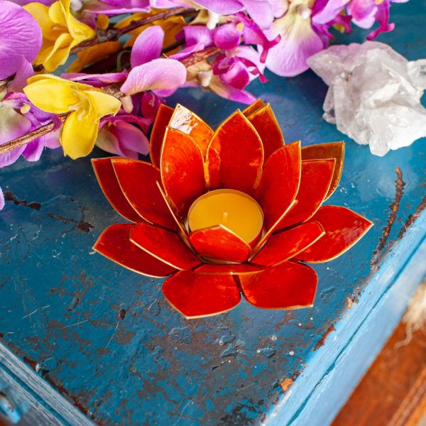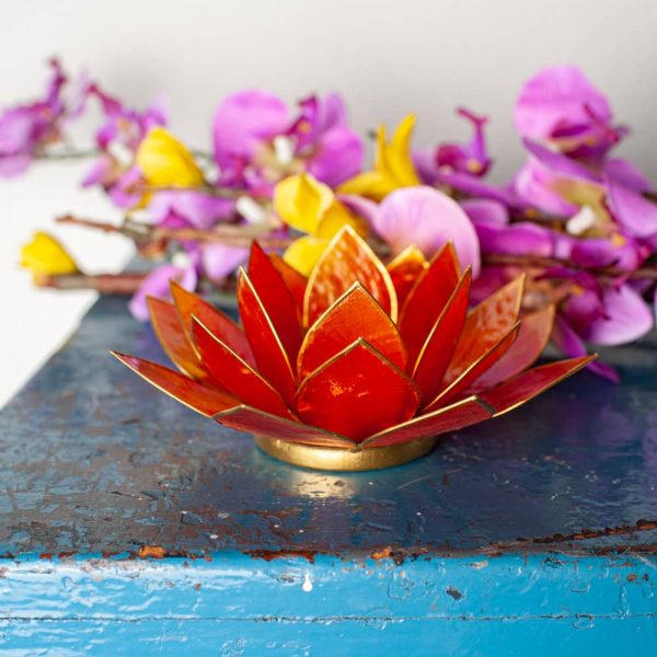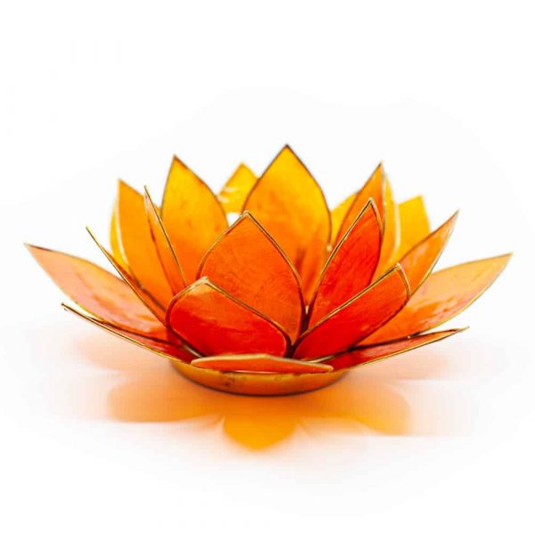 Ревюта – Стойка за свещ оранжев лотосов цвят от Филипините с черупки Capiz