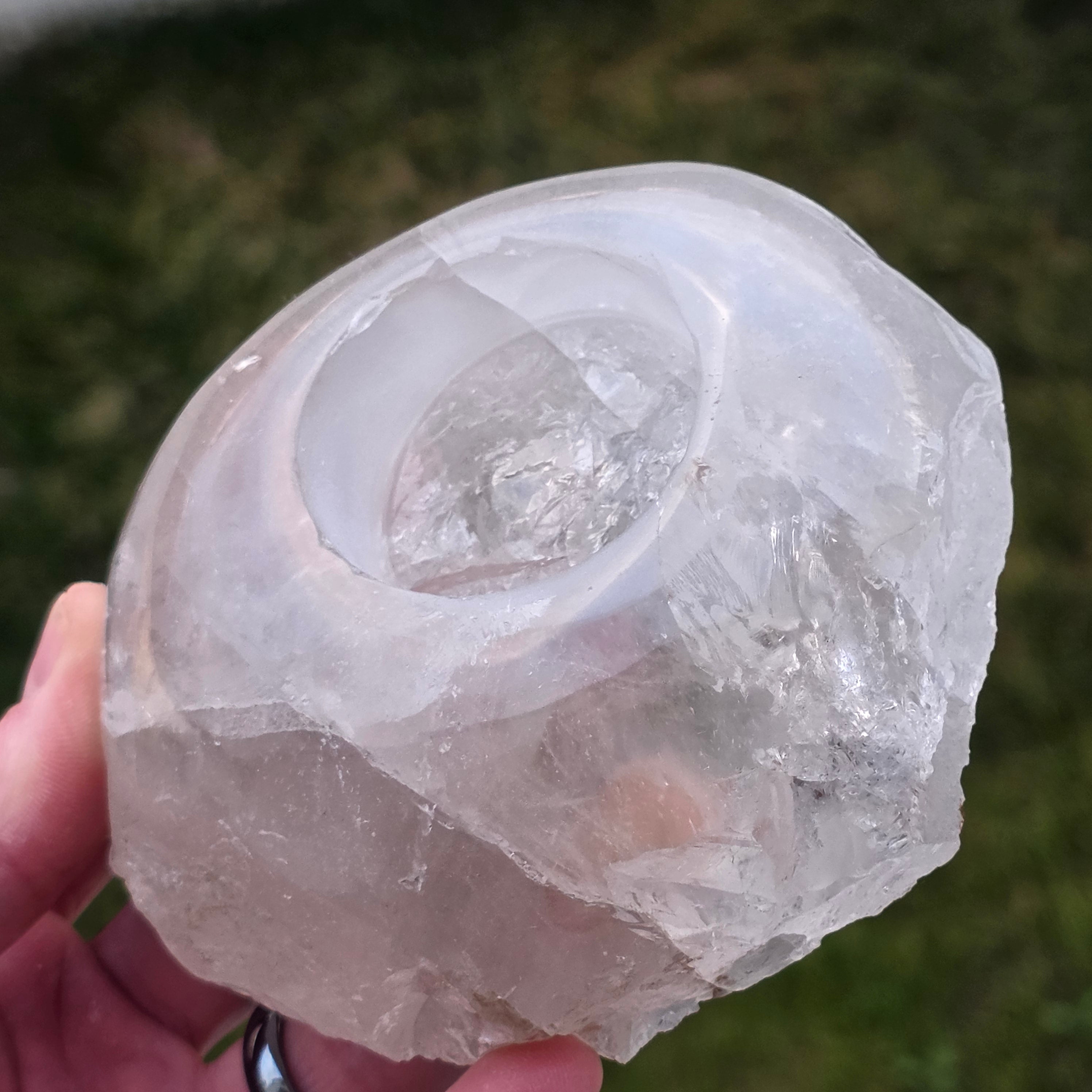 Безцветният кварц е особено ценен за свойството си да пречиства по време на медитация или в пространствата, където е поставен.