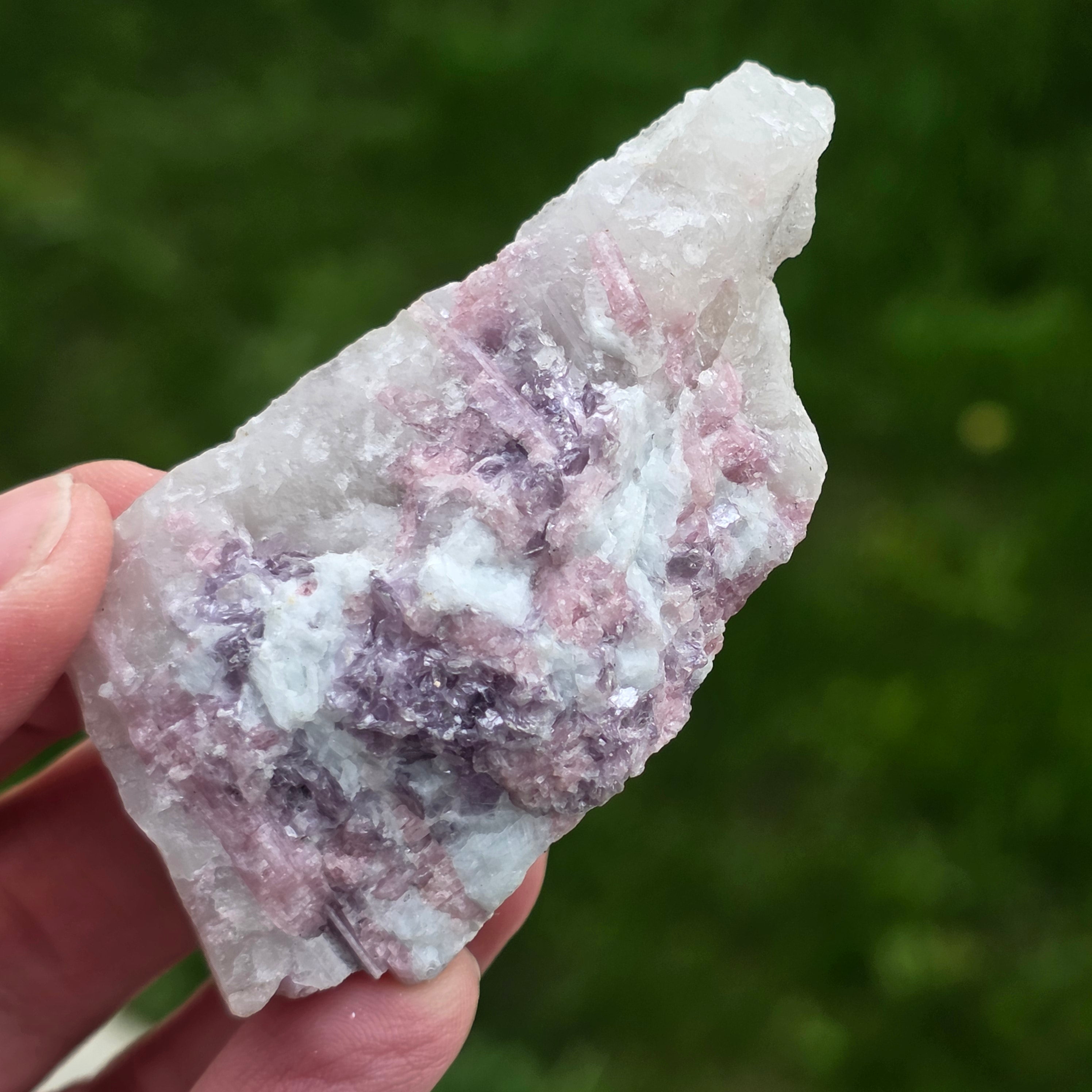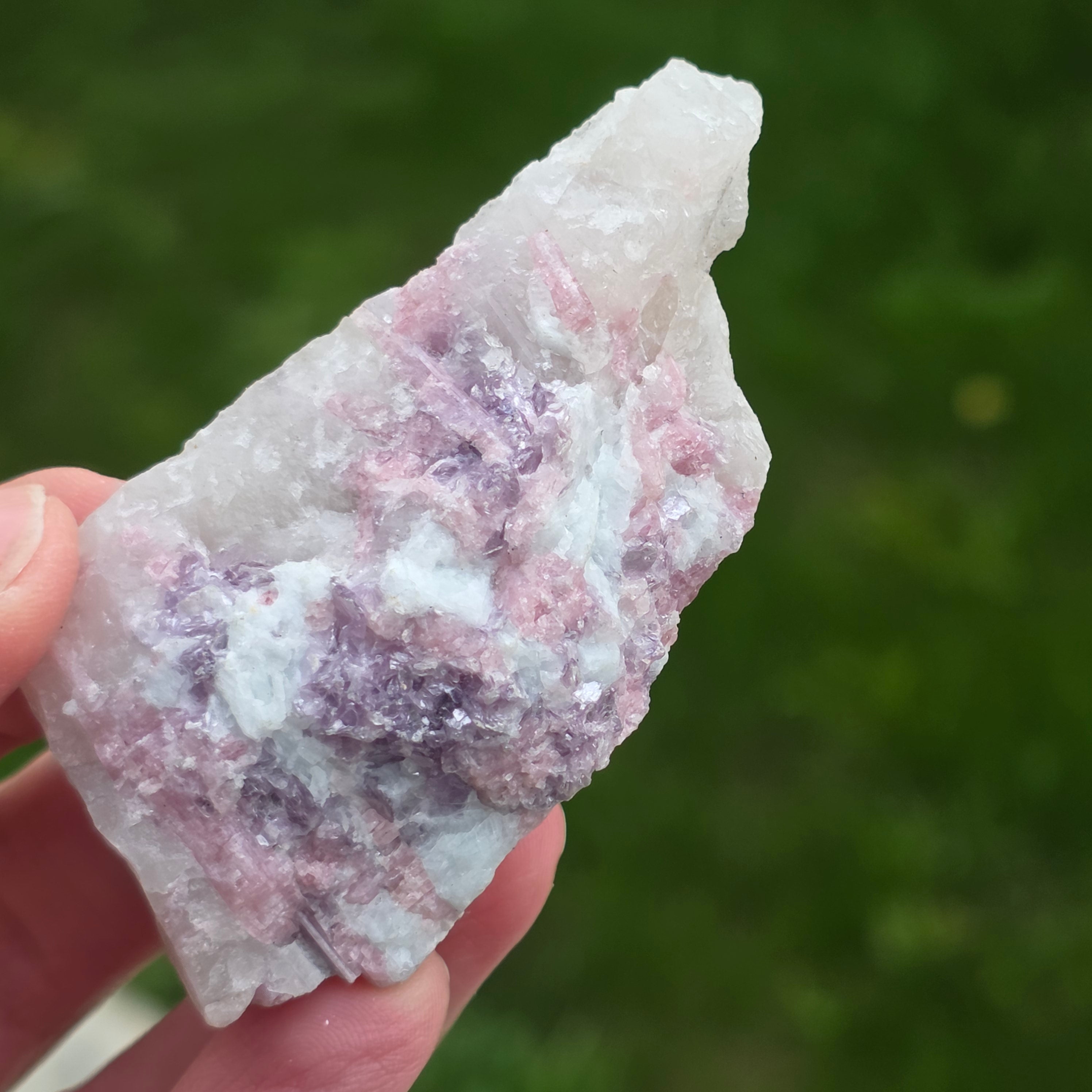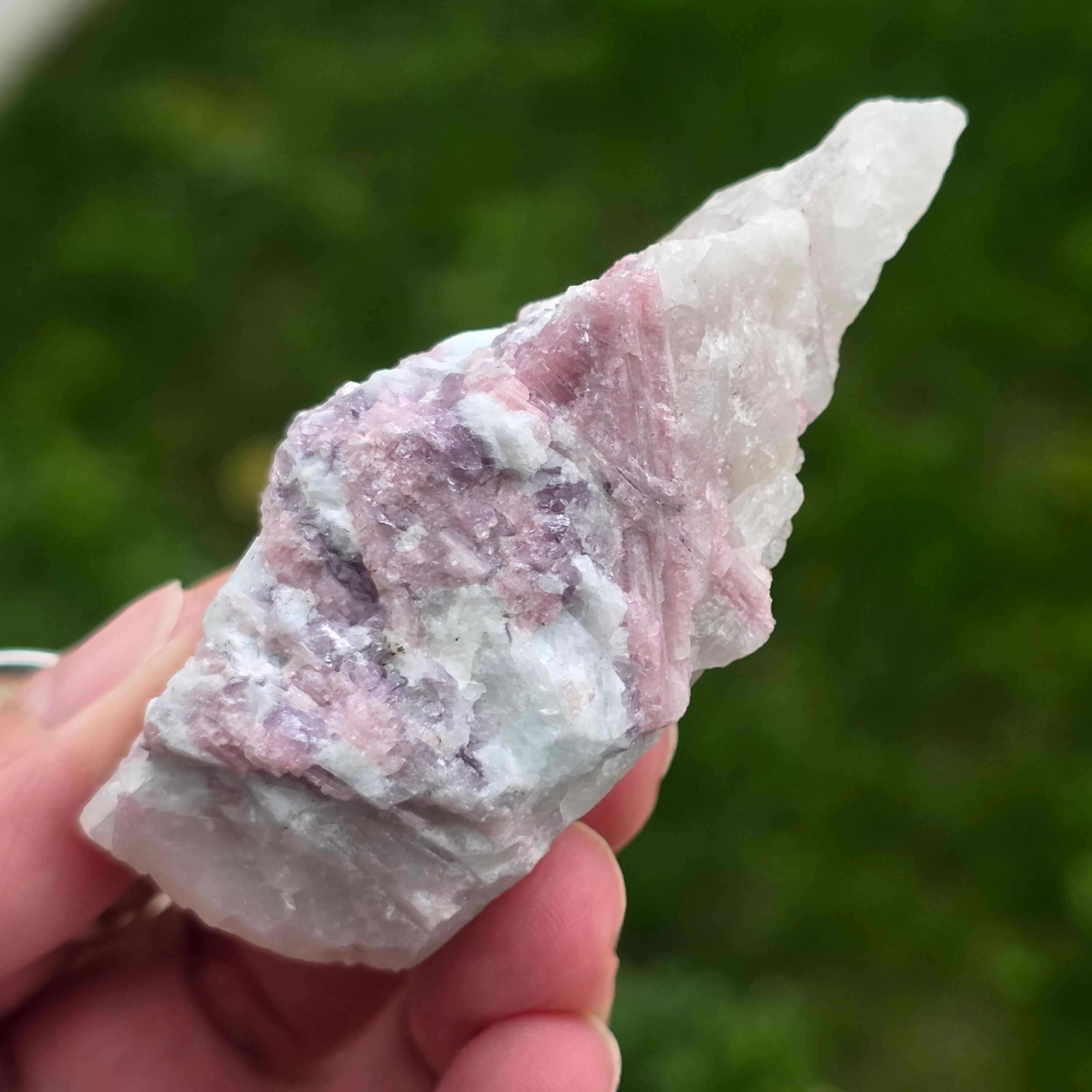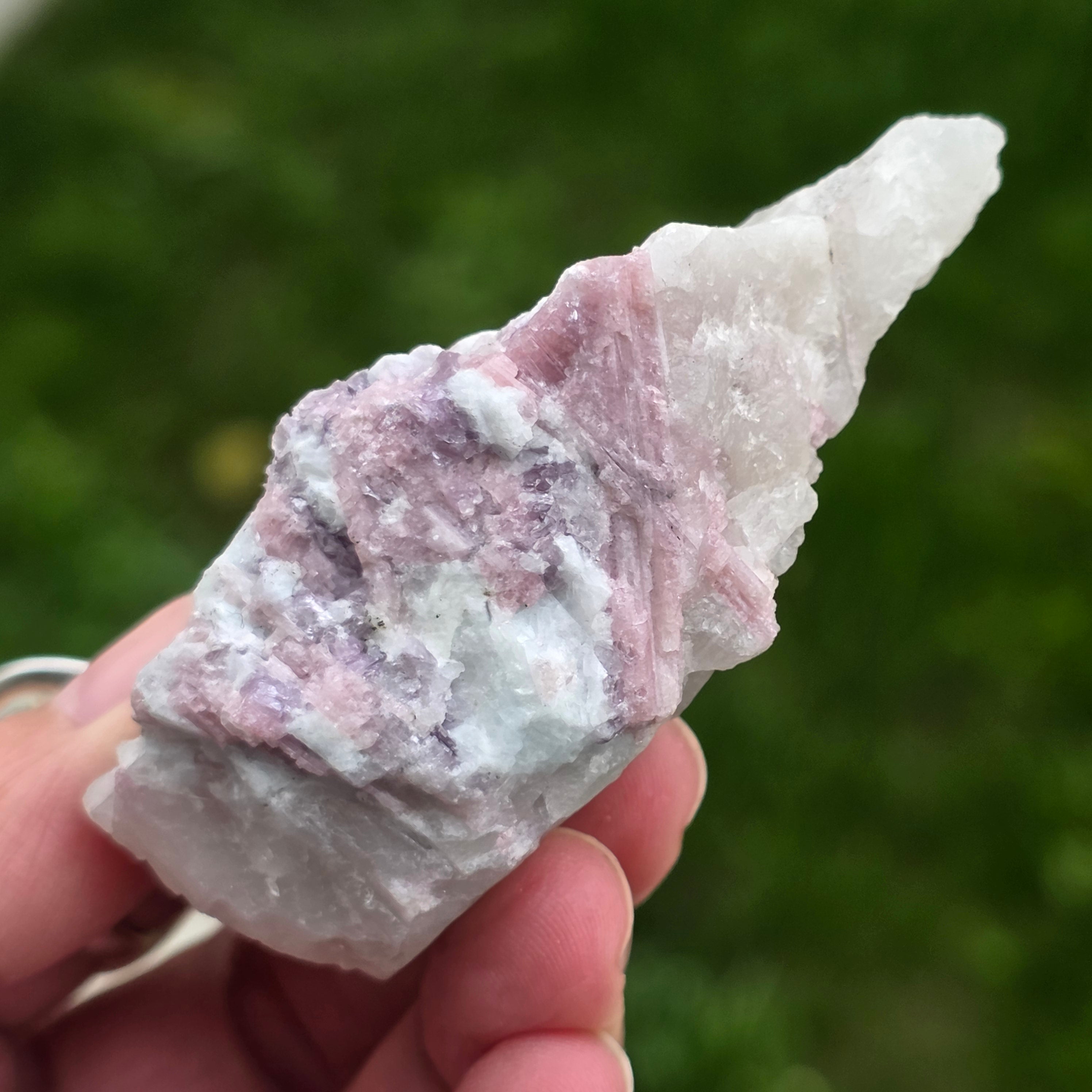 Розовият турмалин се свързва с енергиите на сърцето и се смята, че има успокояващи свойства, емоционално изцеление, насърчаване на любовта към себе си и хармоничните взаимоотношения.