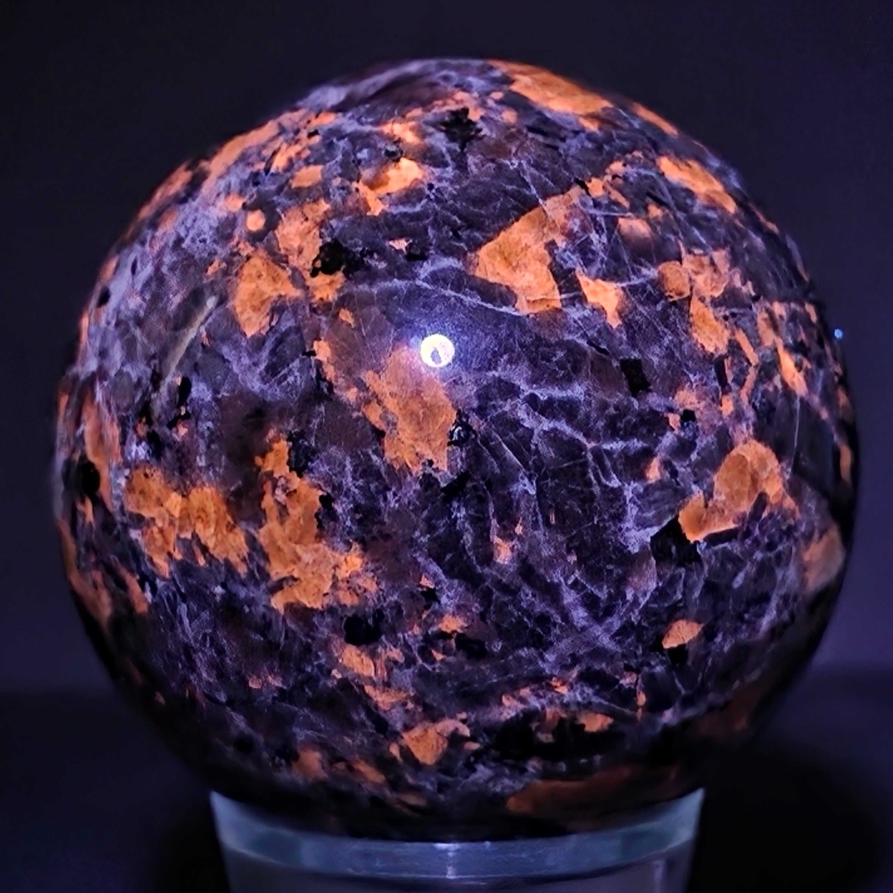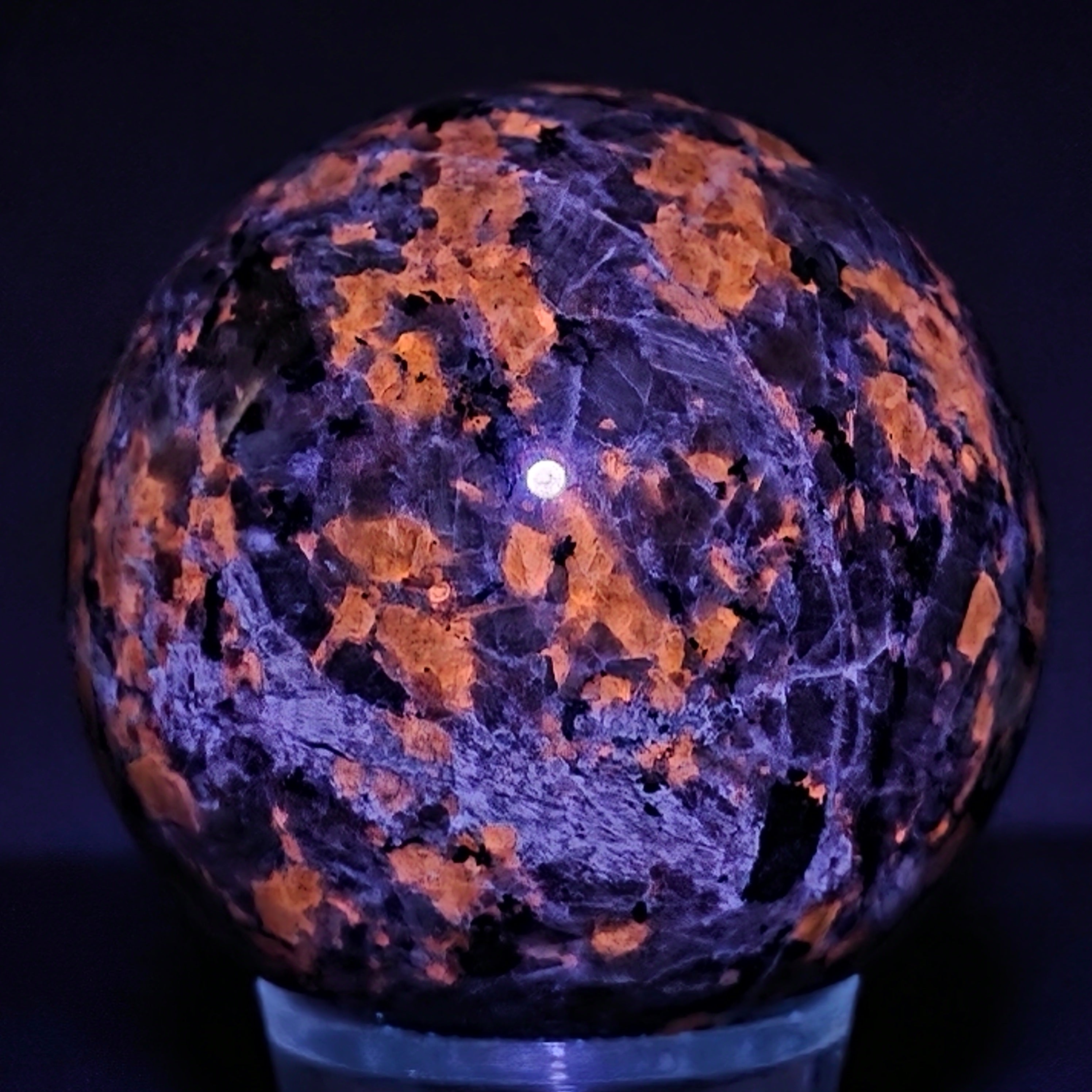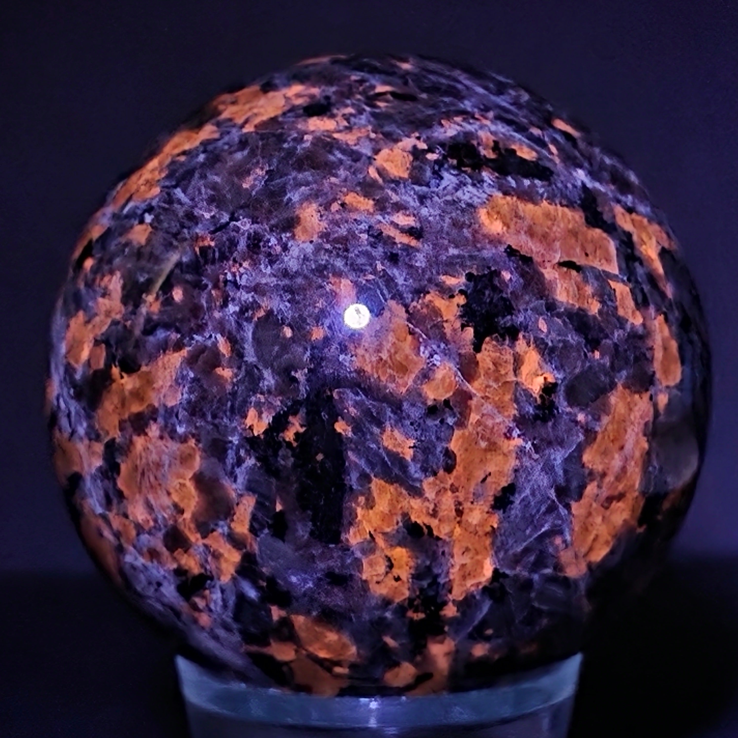 Геологически погледнато, йууперлитът е сиеинитова скала, богата на содалит – и именно содалитът е този, който реагира на UV и създава този впечатляващ ефект.