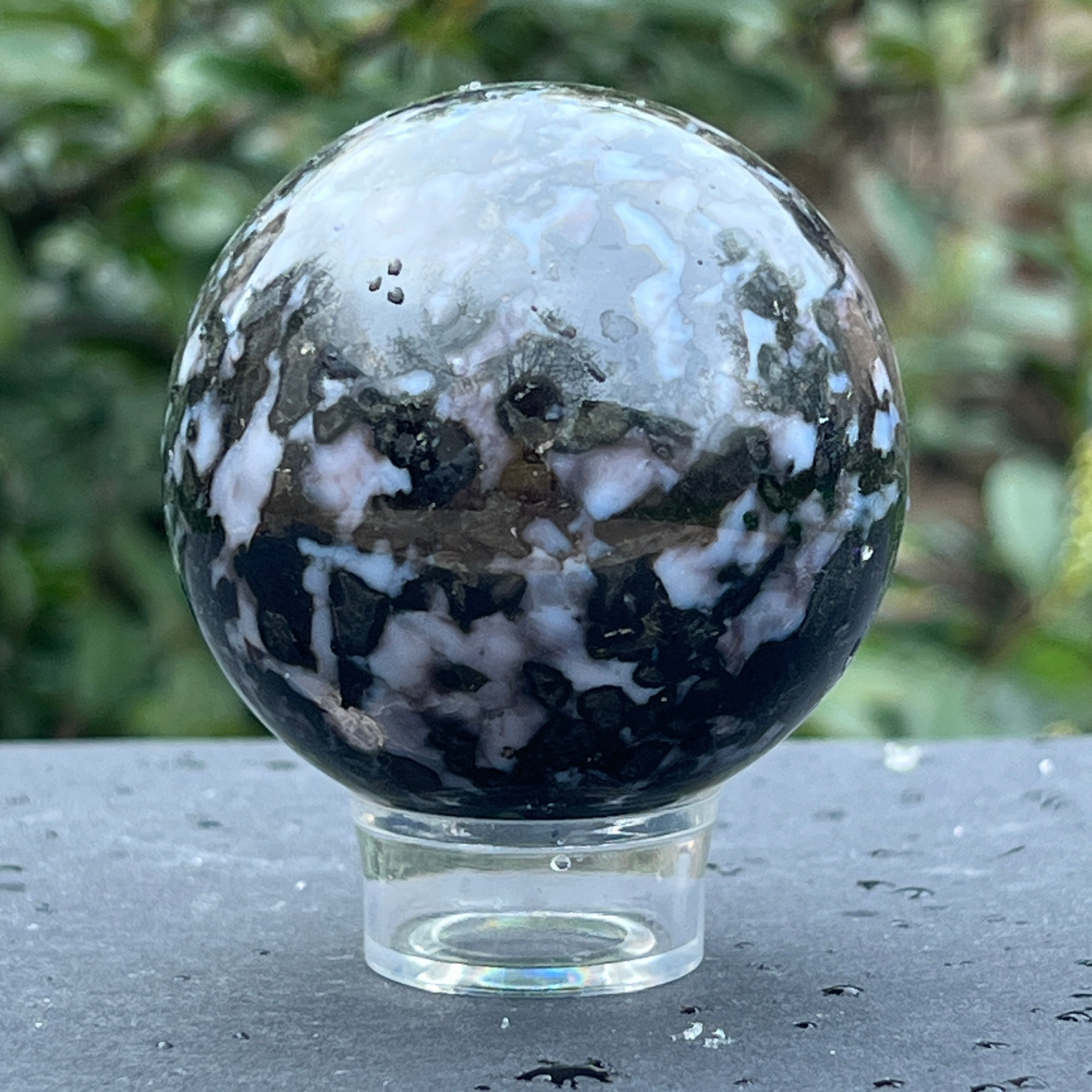 Мерланитът е рядък и впечатляващ полускъпоценен камък, известен с комбинацията си от контрастни цветове, бяло и черно, което му придава уникален вид. Той се счита за разновидност на дендритния опал или комбинация от кварц и други минерали, а сложната му структура го прави ценен както за красотата си, така и за предполагаемите си енергийни свойства. Мерланитът е известен в света на кристалотерапията със своите мистични енергии и връзка с интуицията, ясновидството и духовното познание.