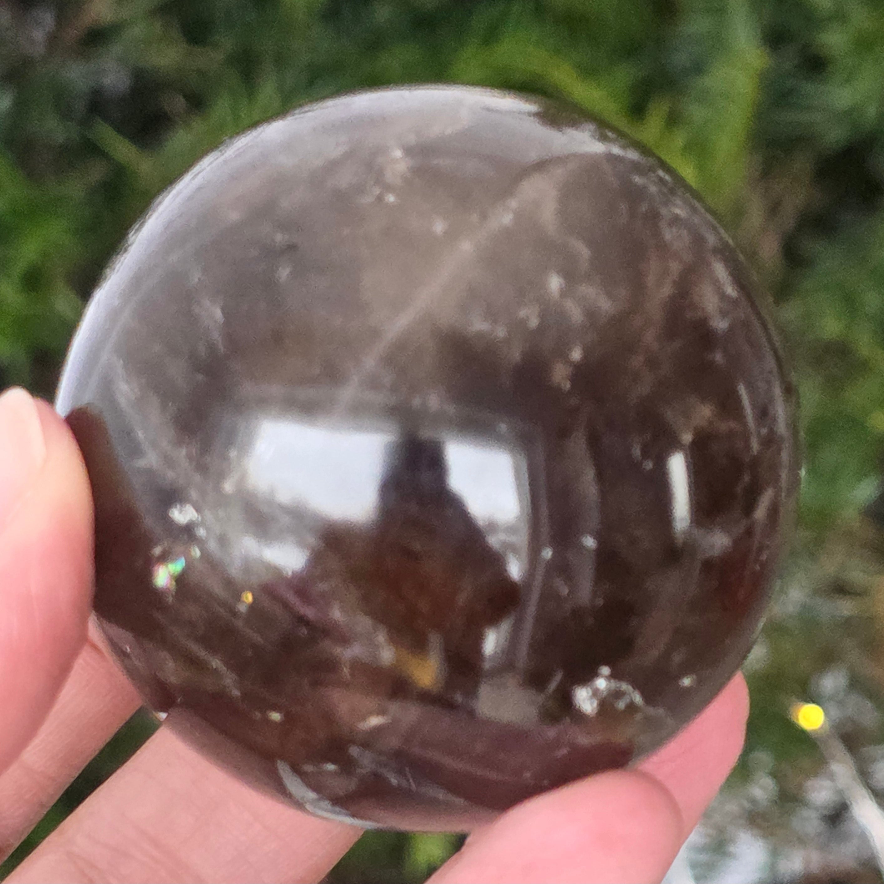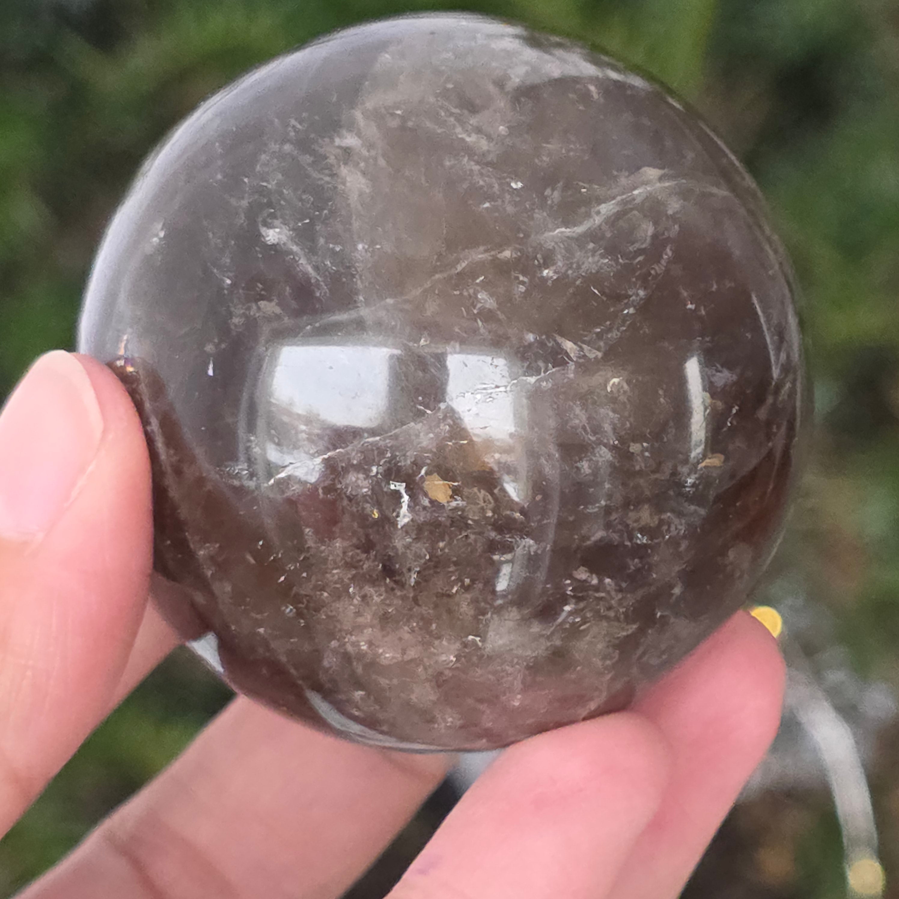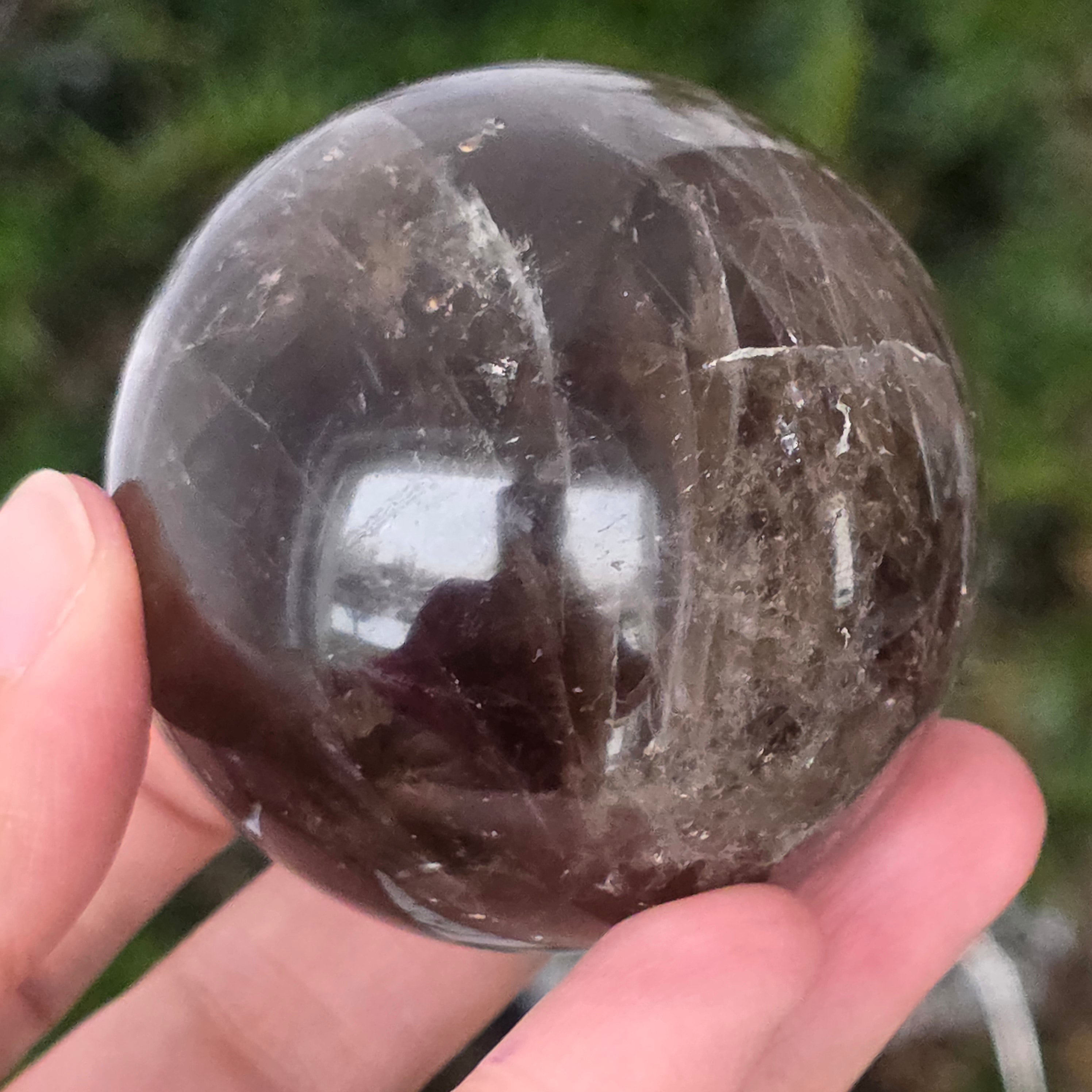 Сферата от морион кварц е мощен и елегантен артикул, известен със своята дълбока, димна или прозрачна обсидианова тоналност. Морионът е най-тъмният вид димно стъкло, а в тази перфектно кръгла форма разкрива дискретни отблясъци, фини вътрешни детайли и наистина изискано визуално присъствие.