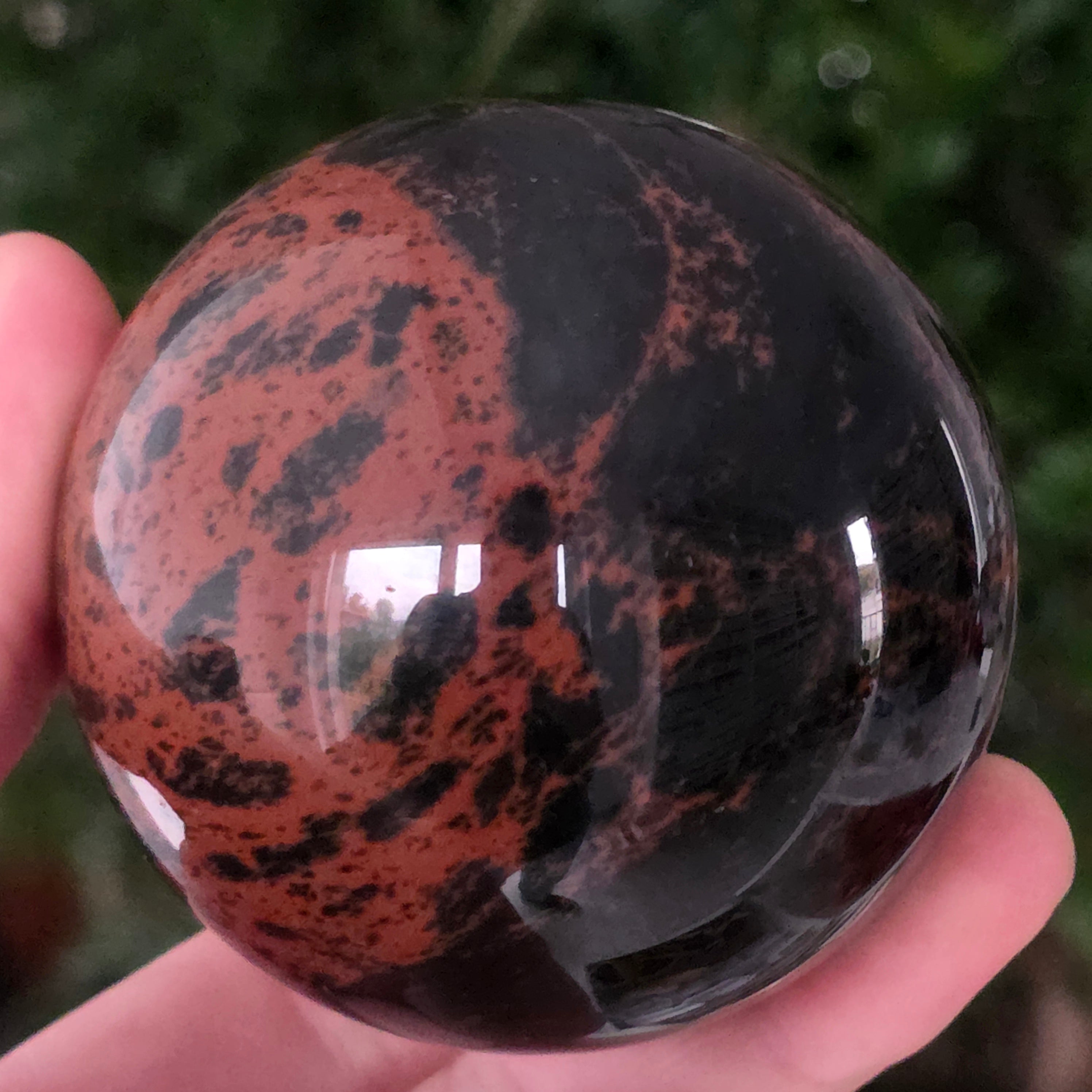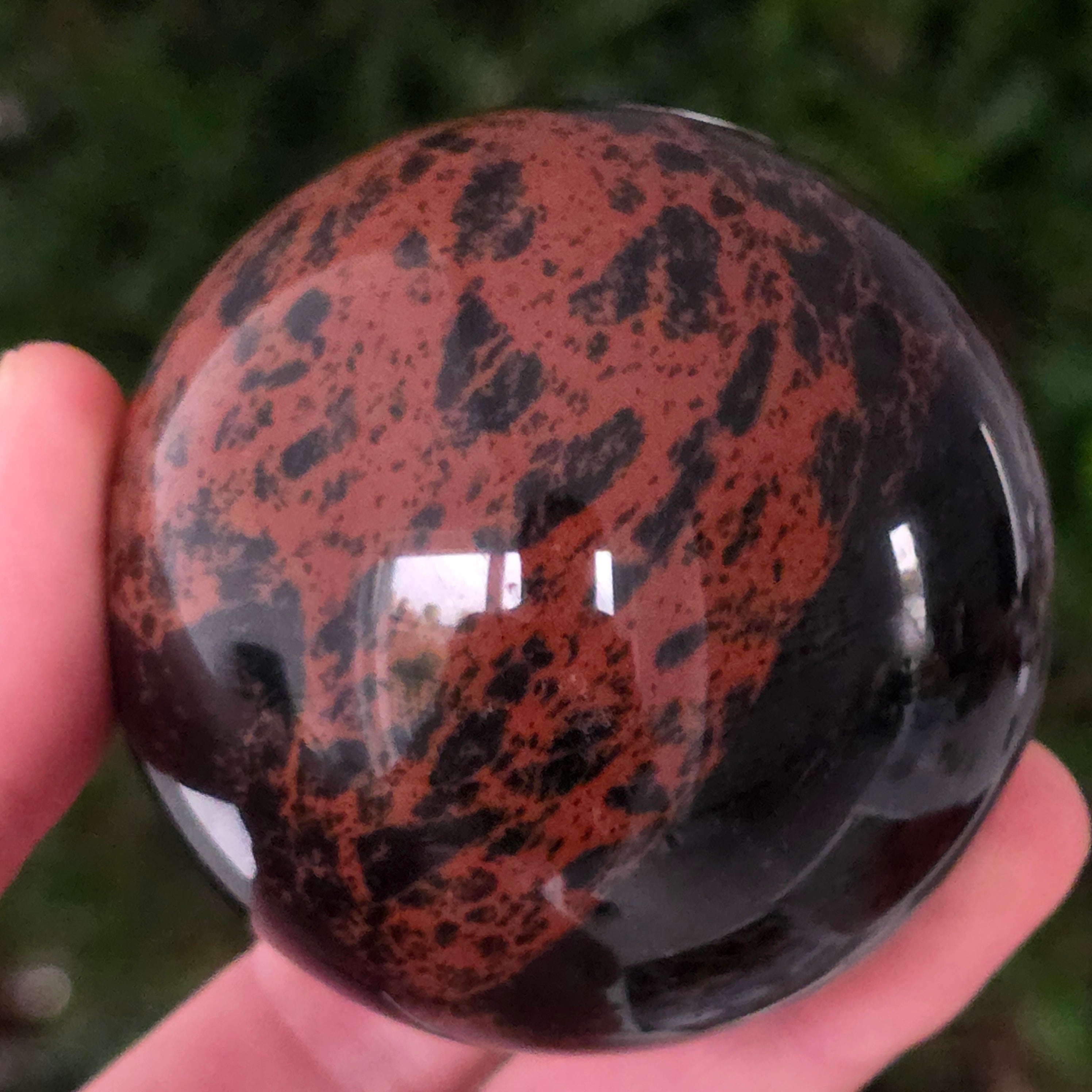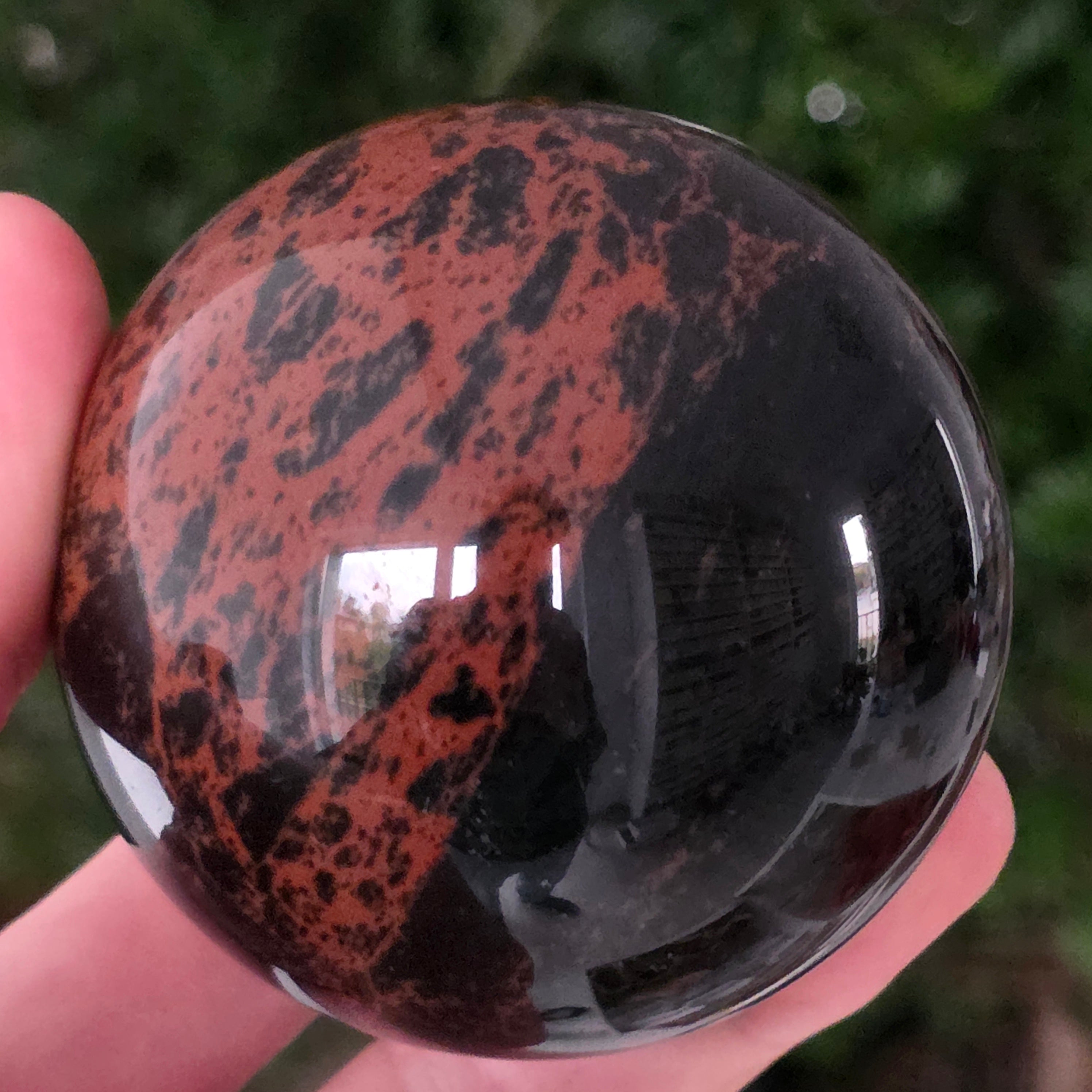 Остави се да бъдеш вдъхновен от тихата сила на Земята чрез тази: сфера от махагонов обсидиан.