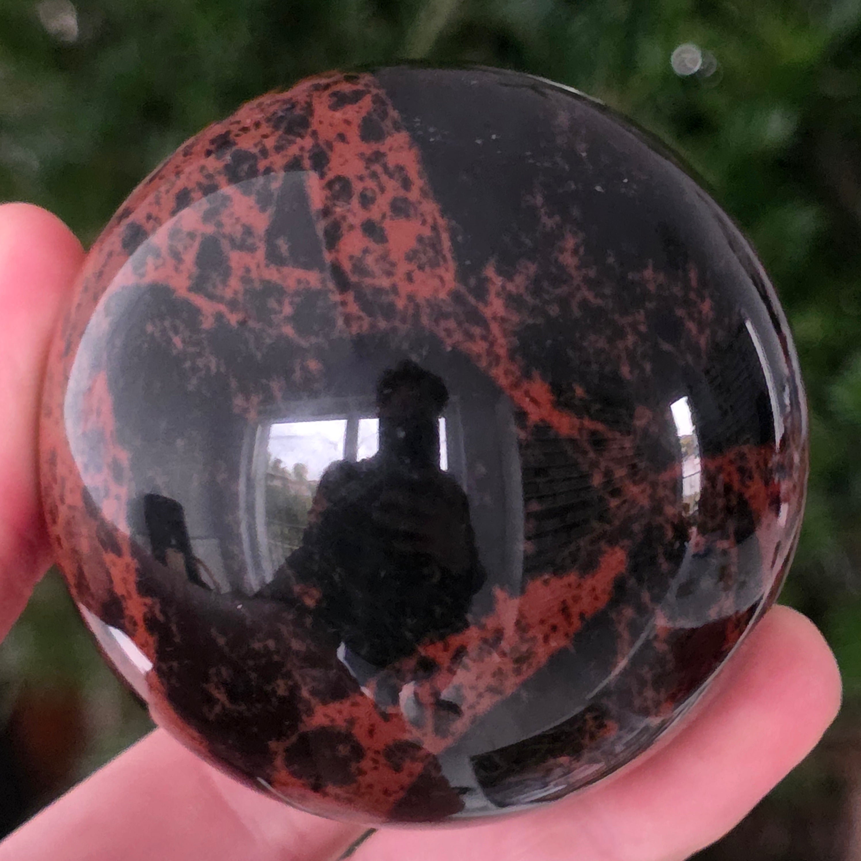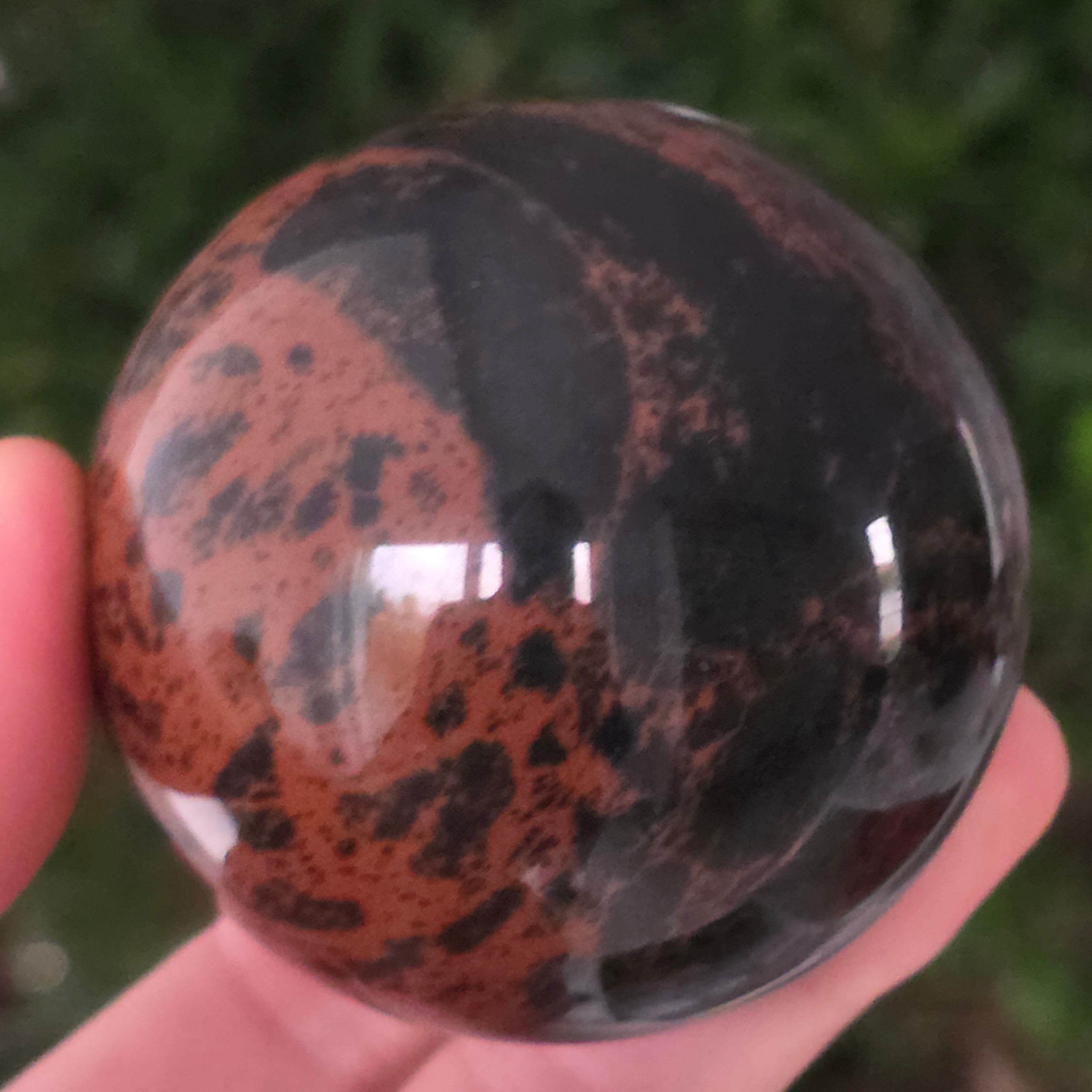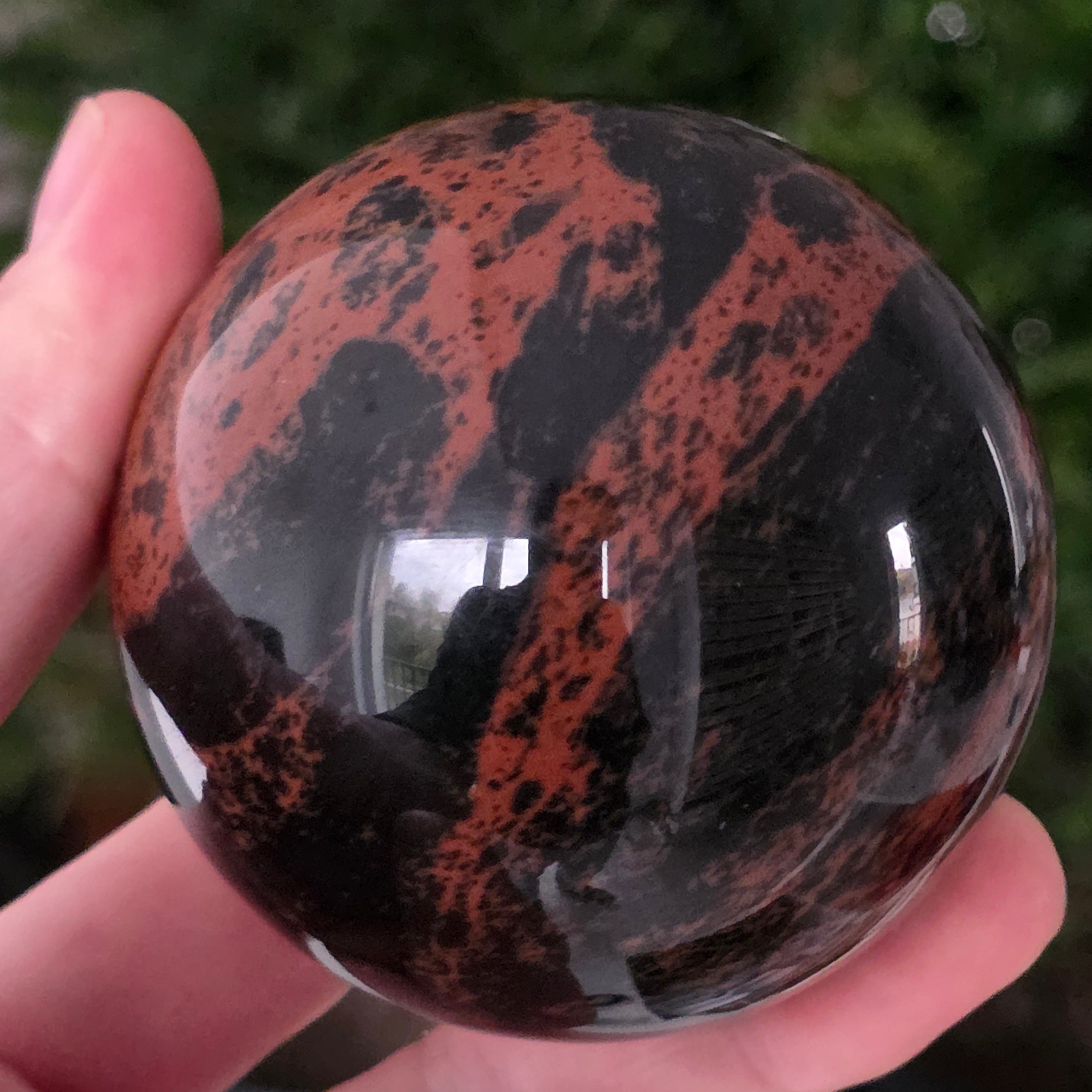 Остави се да бъдеш вдъхновен от тихата сила на Земята чрез тази: сфера от махагонов обсидиан.