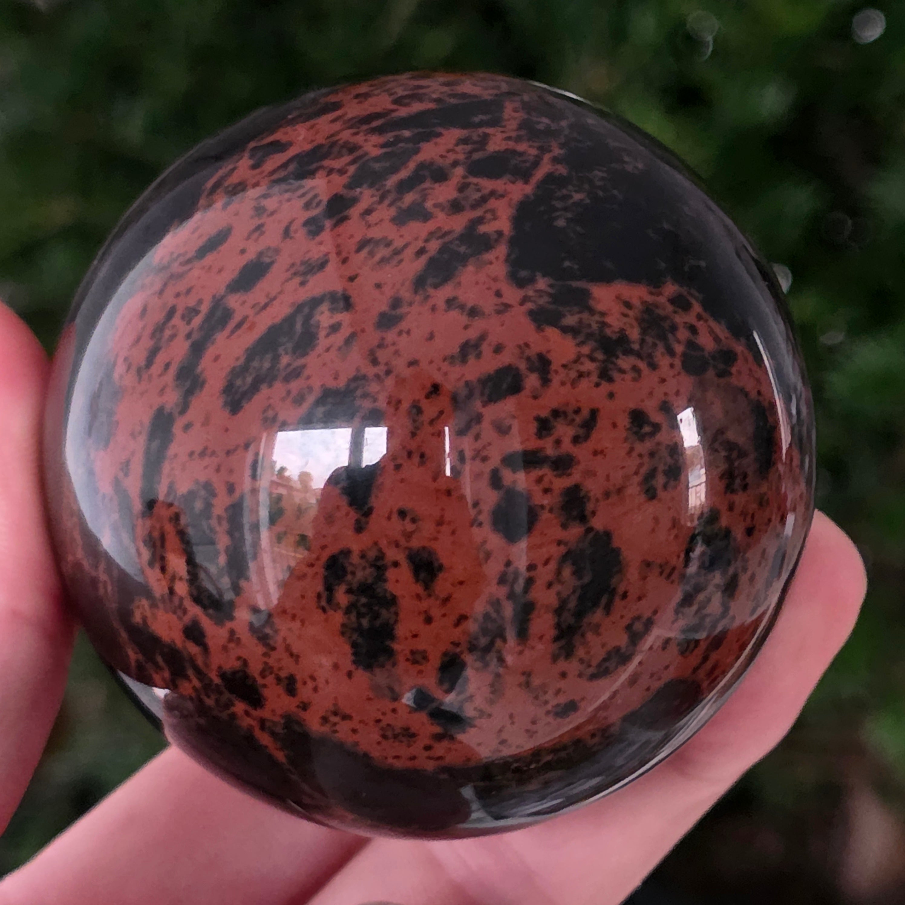 Тази сфера от махагонов обсидиан е въплъщение на първичната сила на Земята — камък на корените, сигурността и вътрешната трансформация.