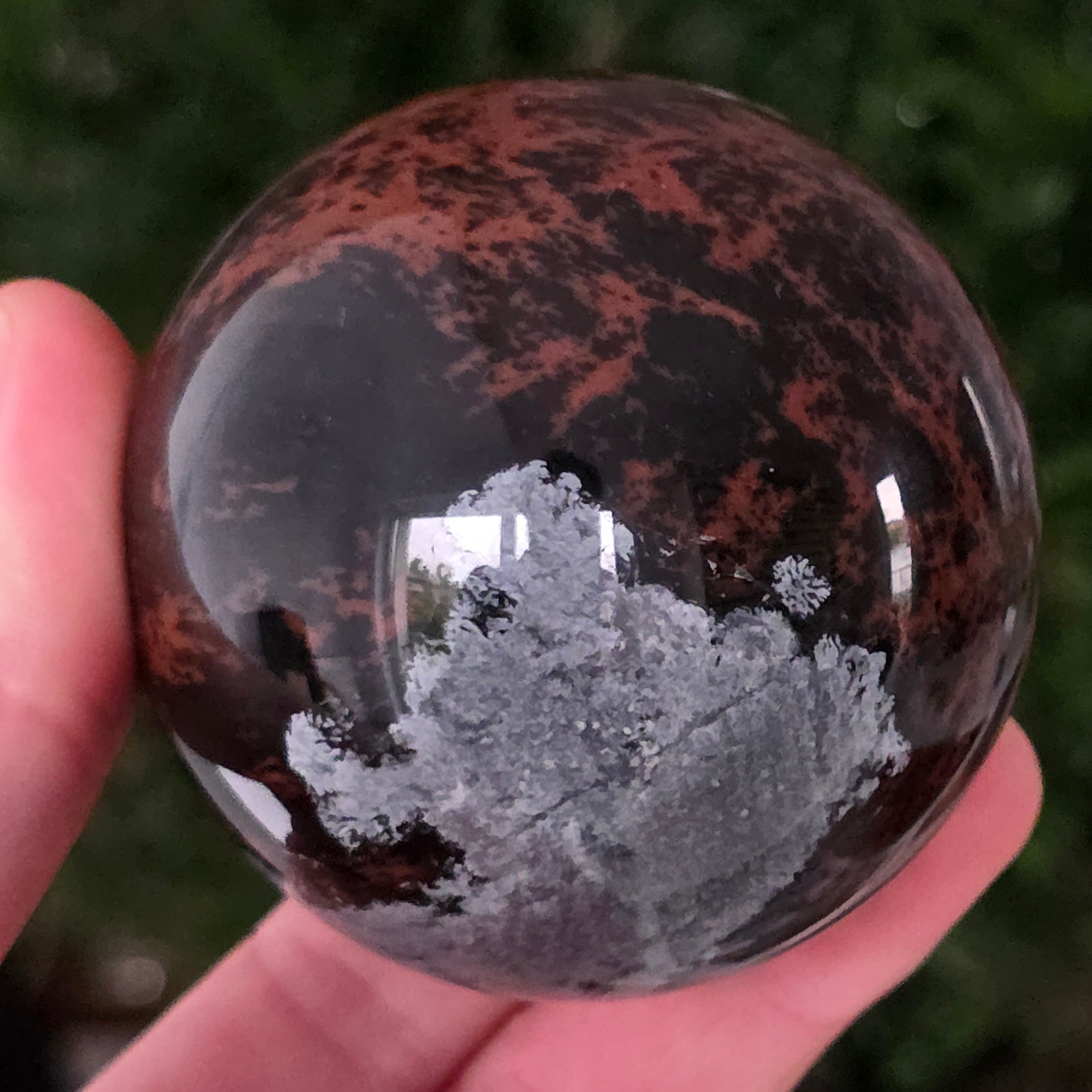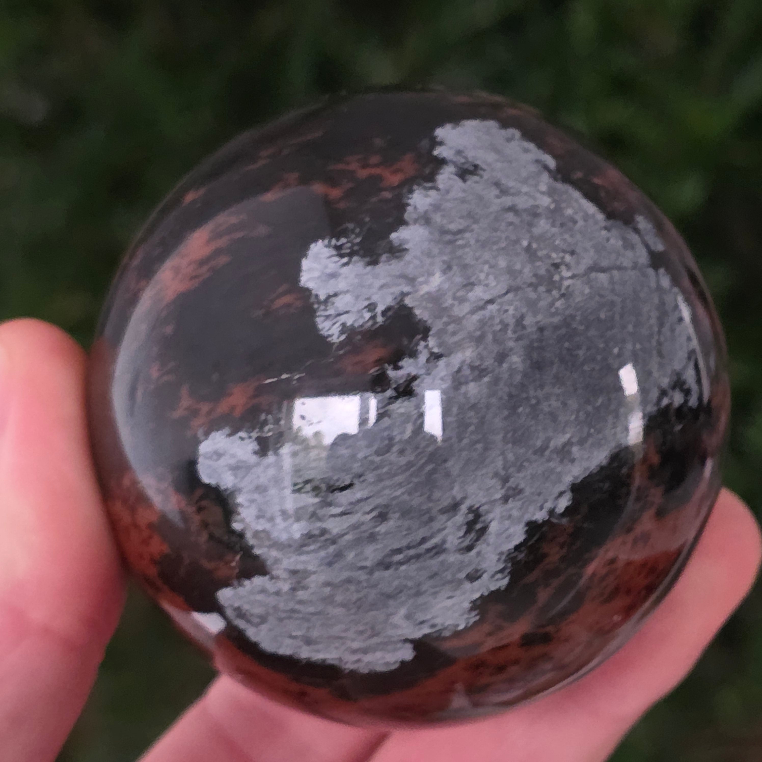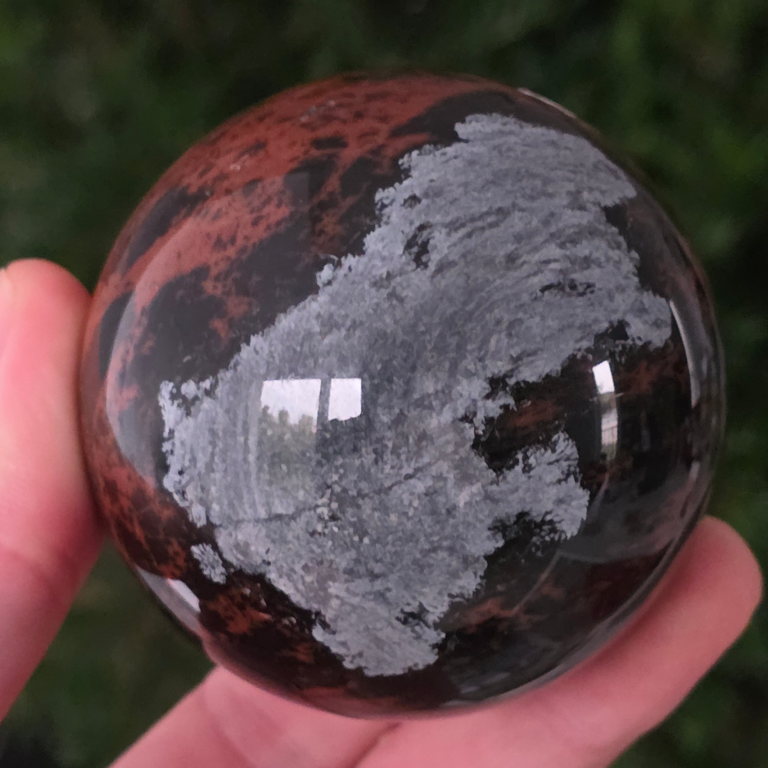 Позволи на тихата сила на Земята да те вдъхнови чрез тази сфера от махагонов обсидиан.