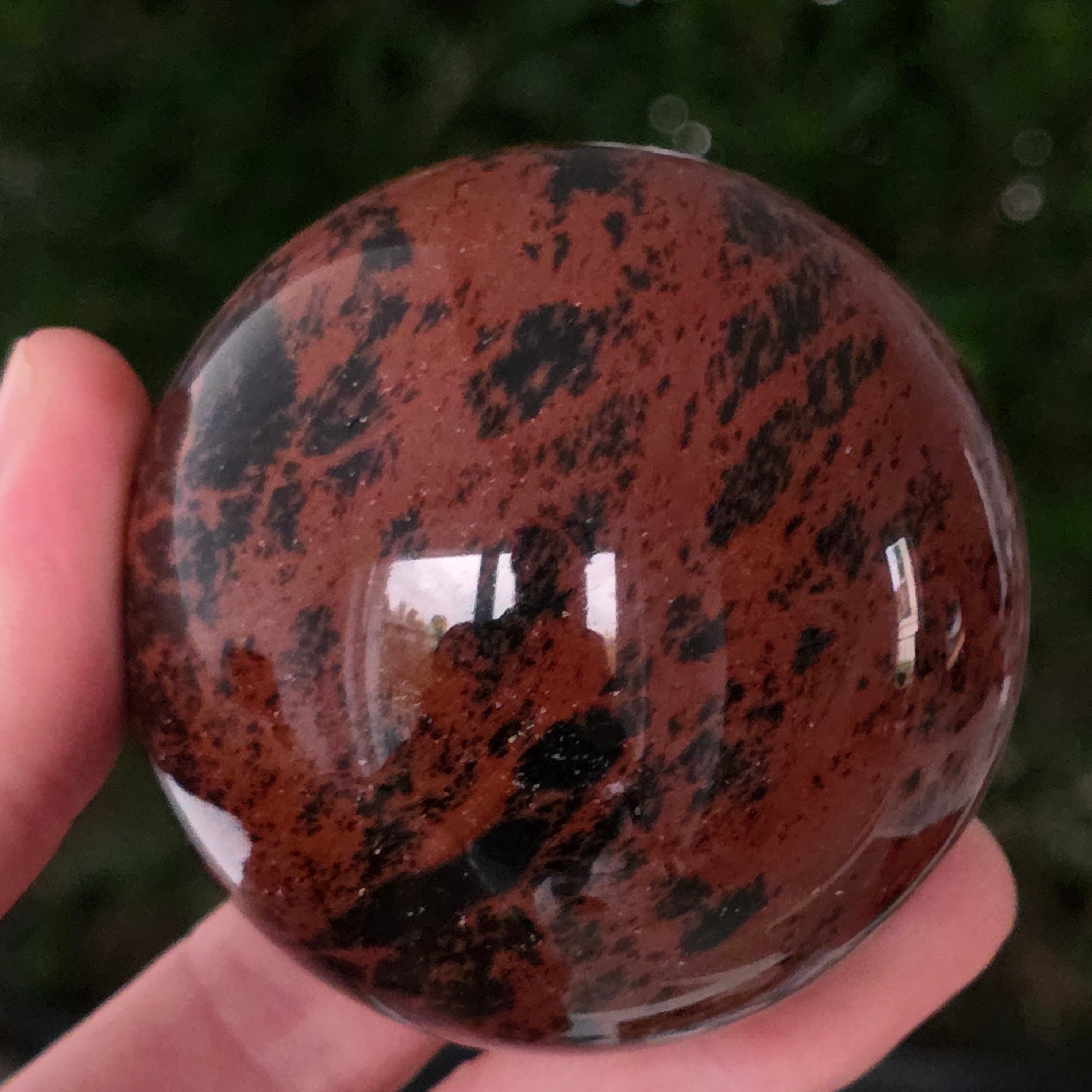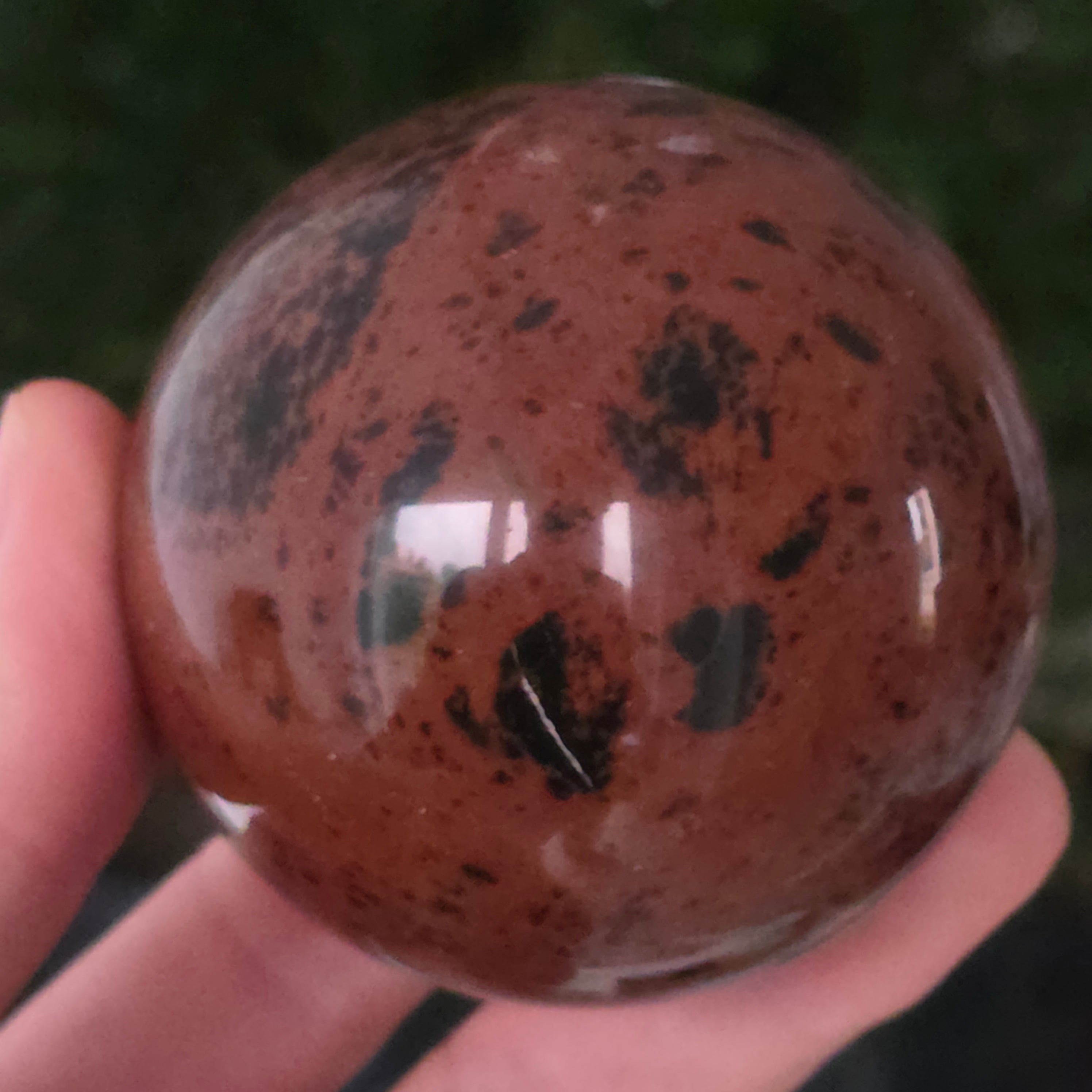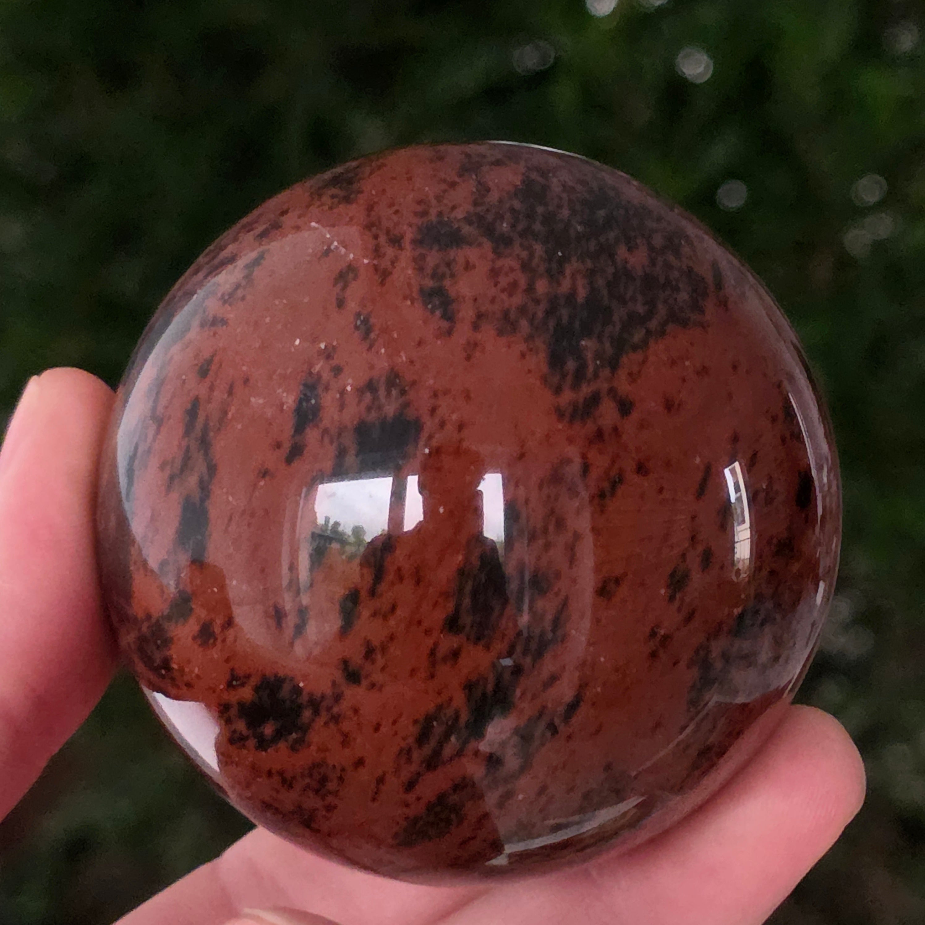Остави се да бъдеш вдъхновен от тихата сила на Земята чрез тази: сфера от махагонов обсидиан.