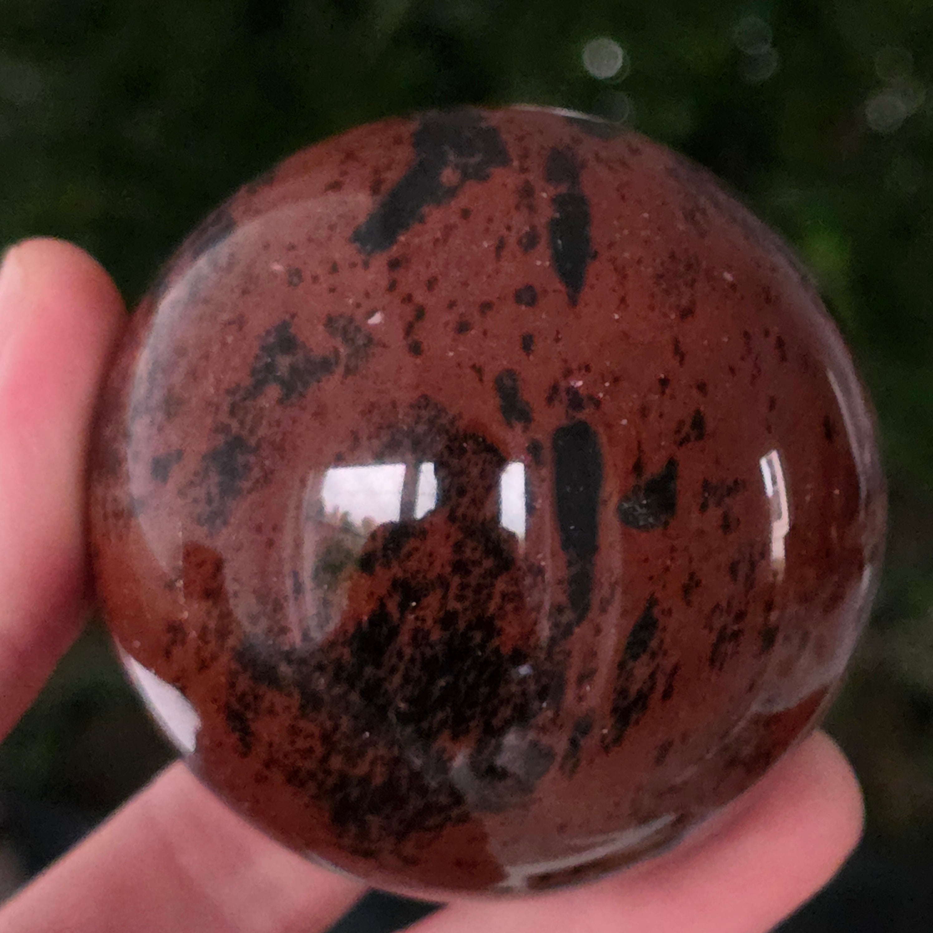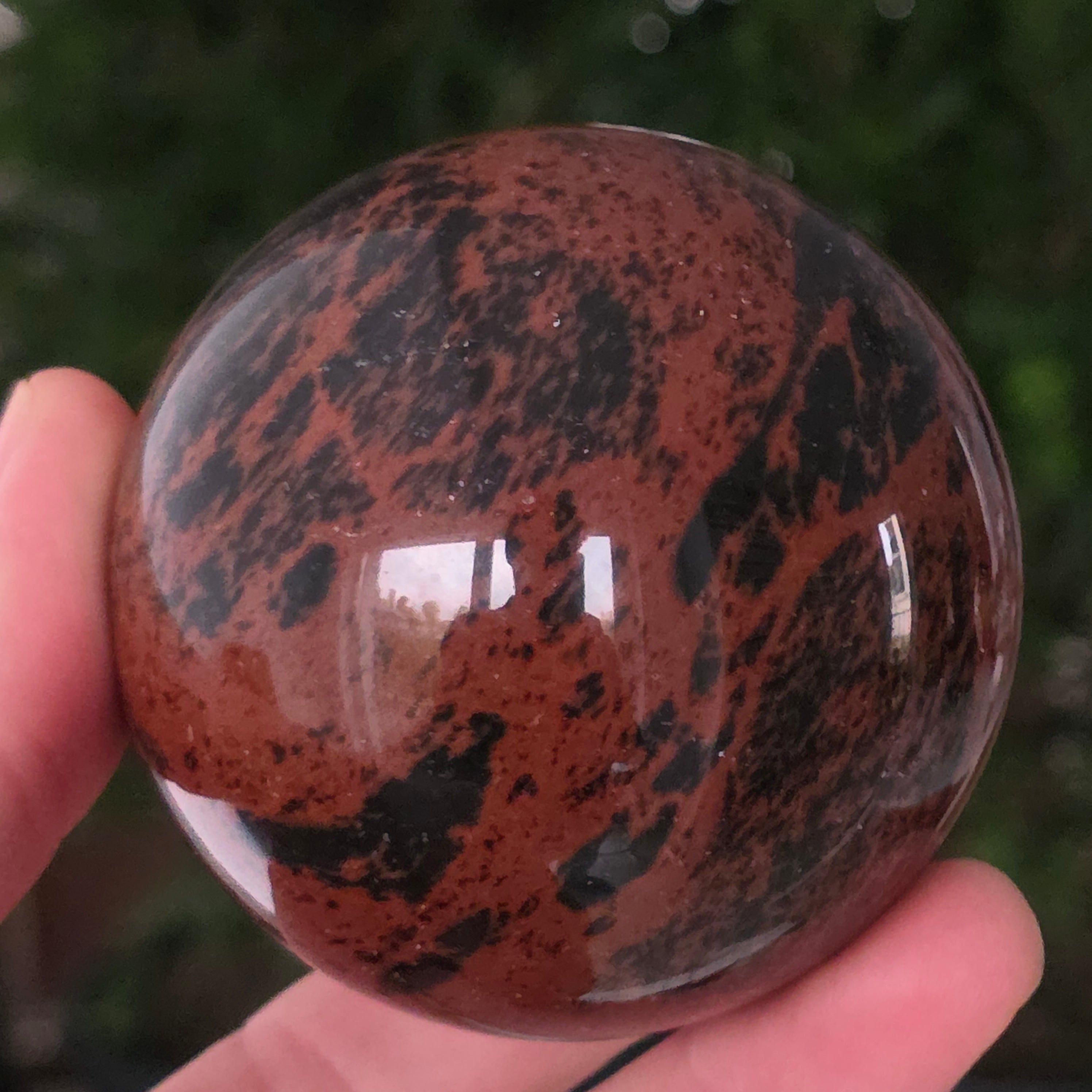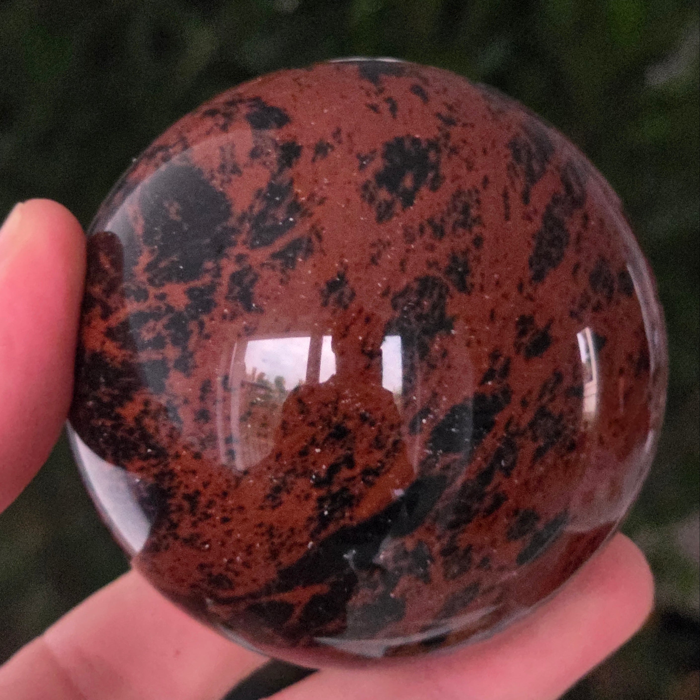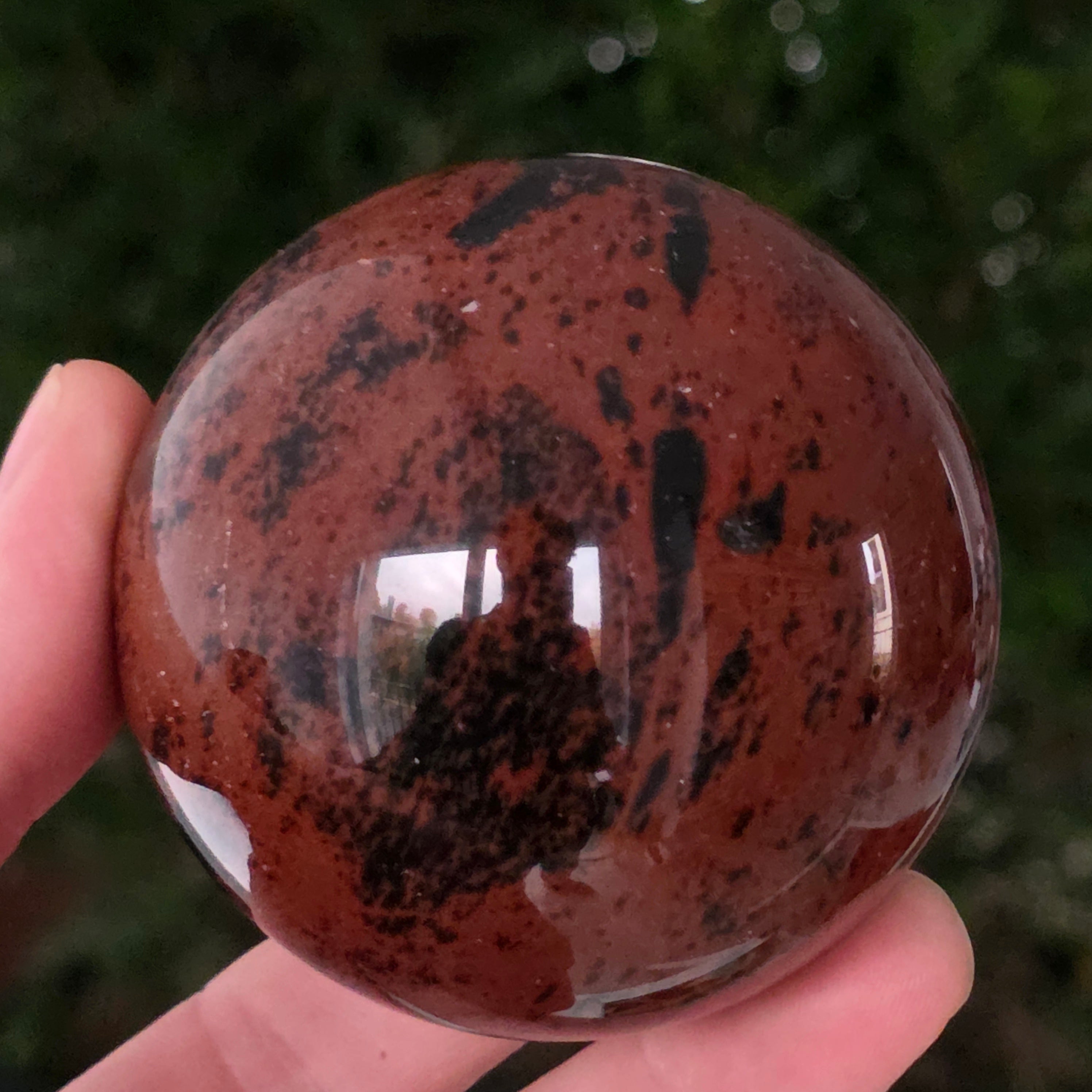 Тази сфера от махагонов обсидиан е въплъщение на първичната сила на Земята — камък на корените, сигурността и вътрешната трансформация.