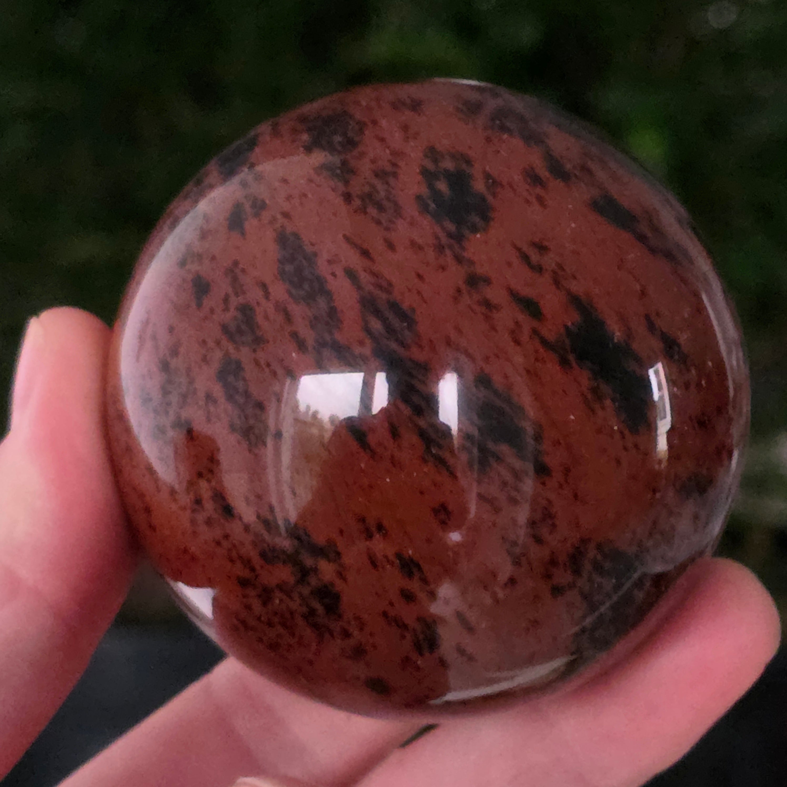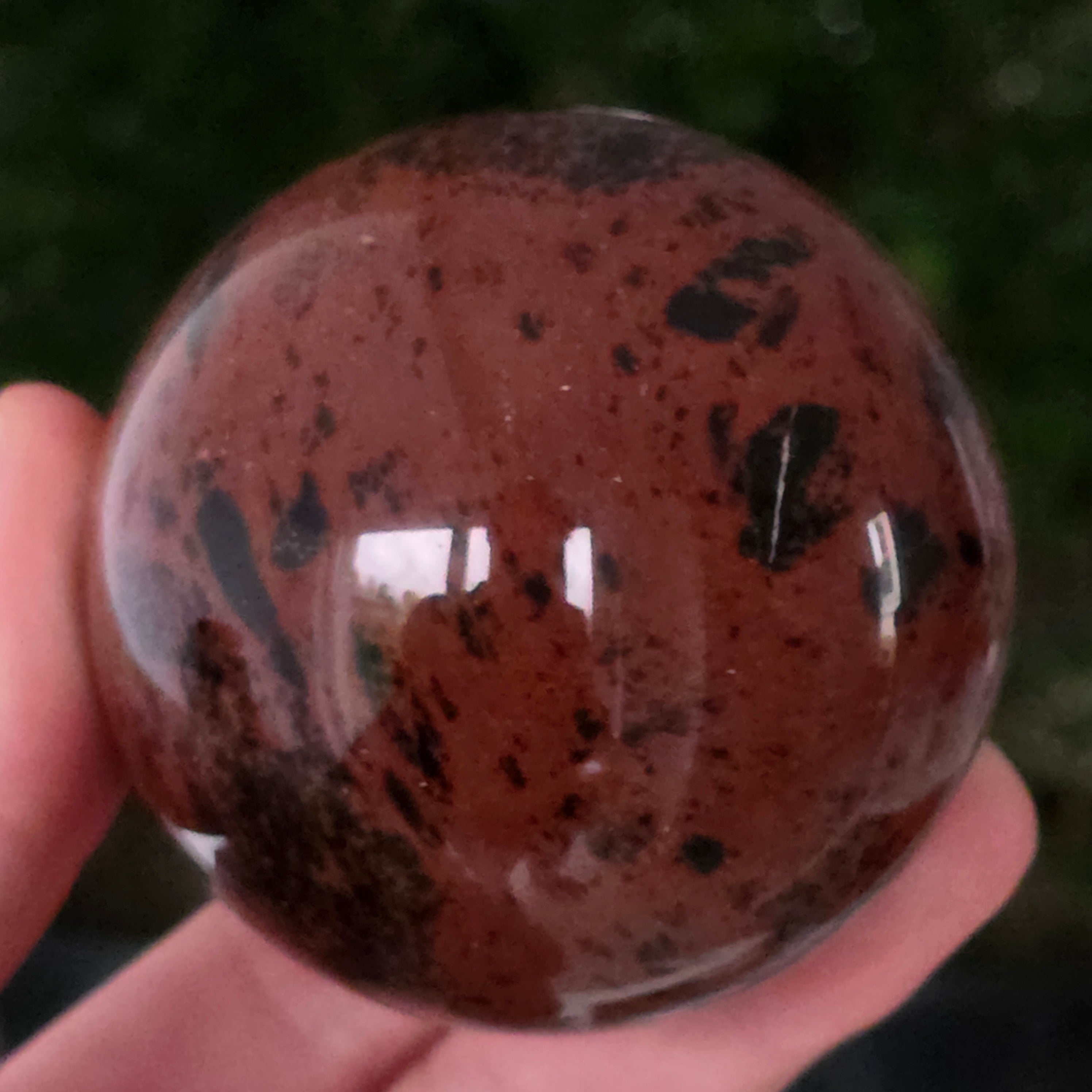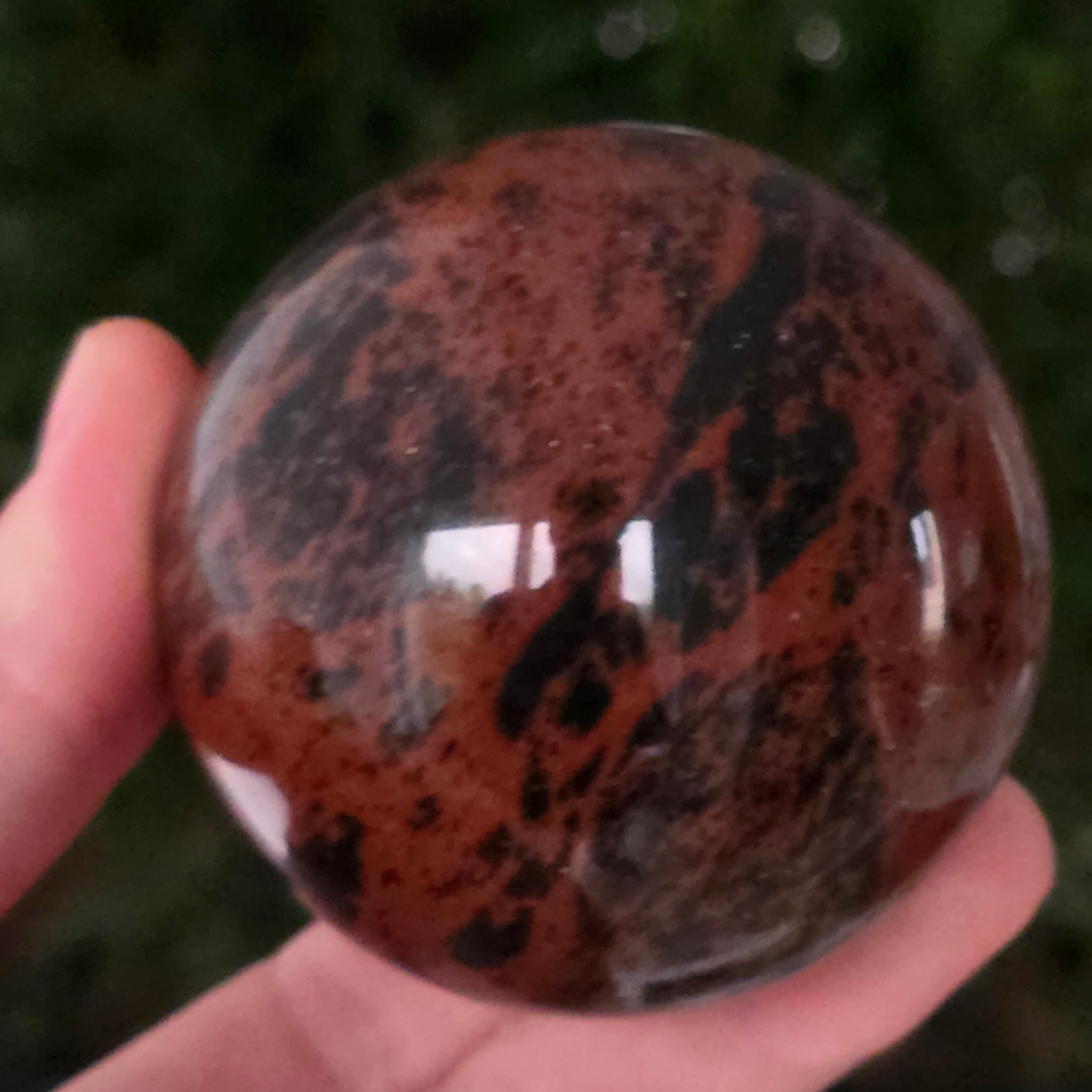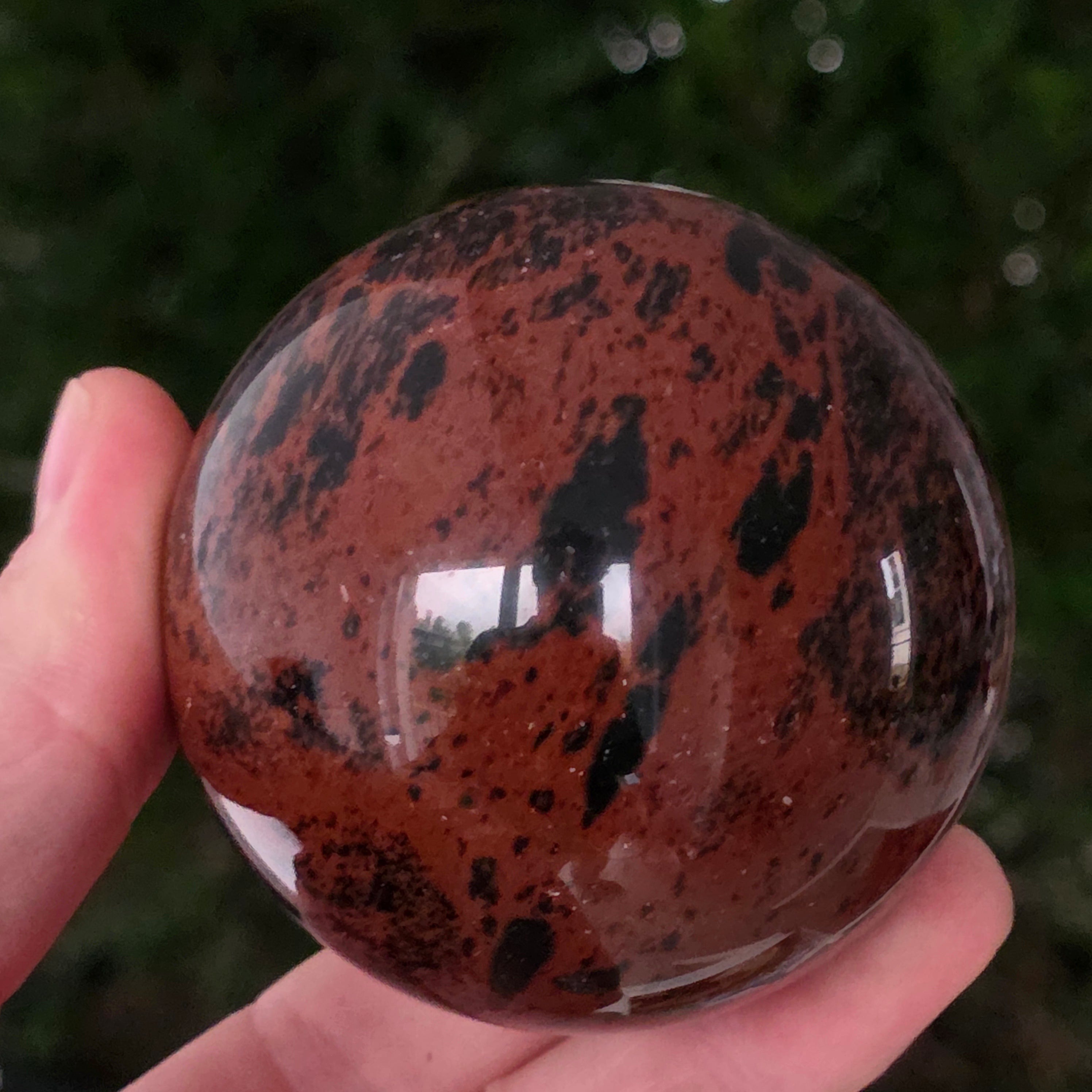 Тази сфера от махагонов обсидиан е въплъщение на първичната сила на Земята — камък на корените, сигурността и вътрешната трансформация.