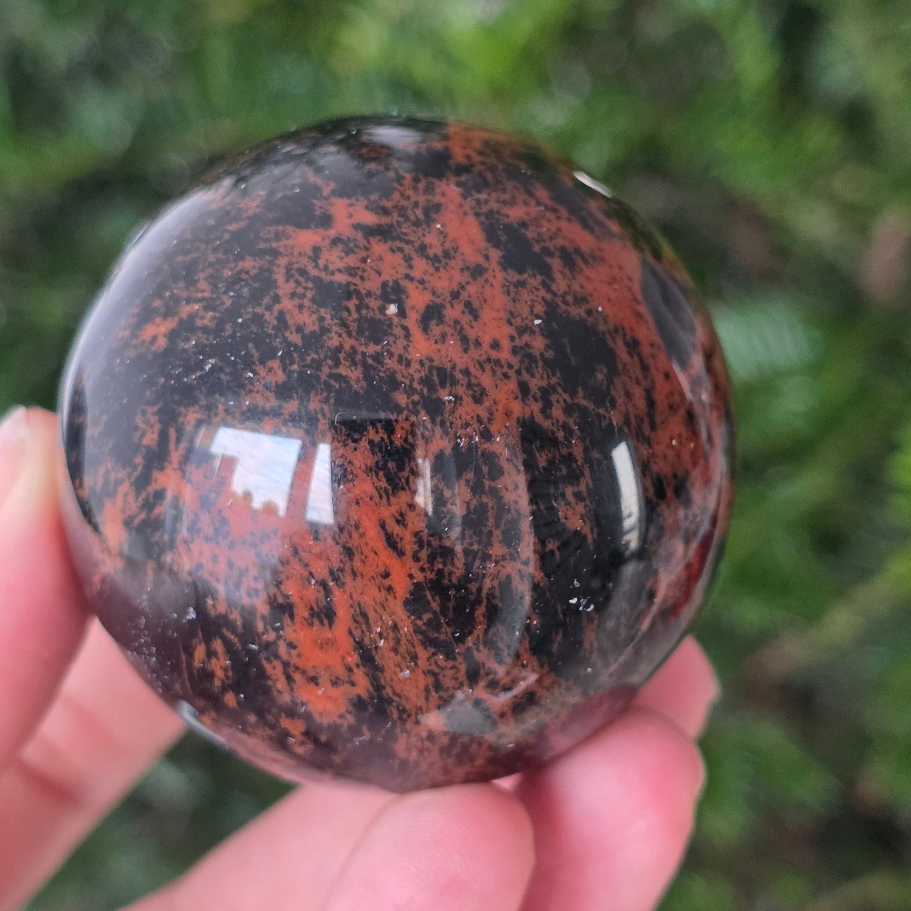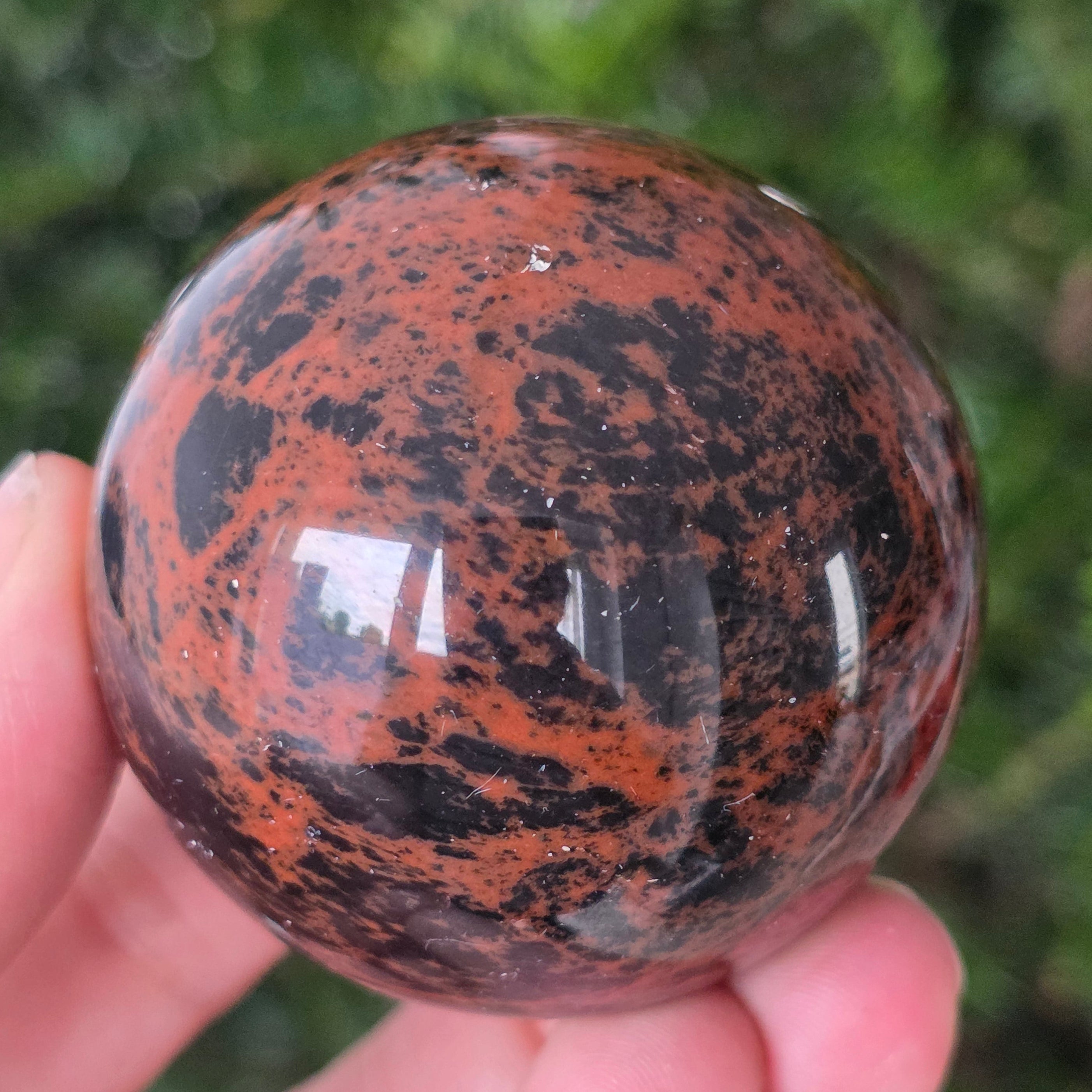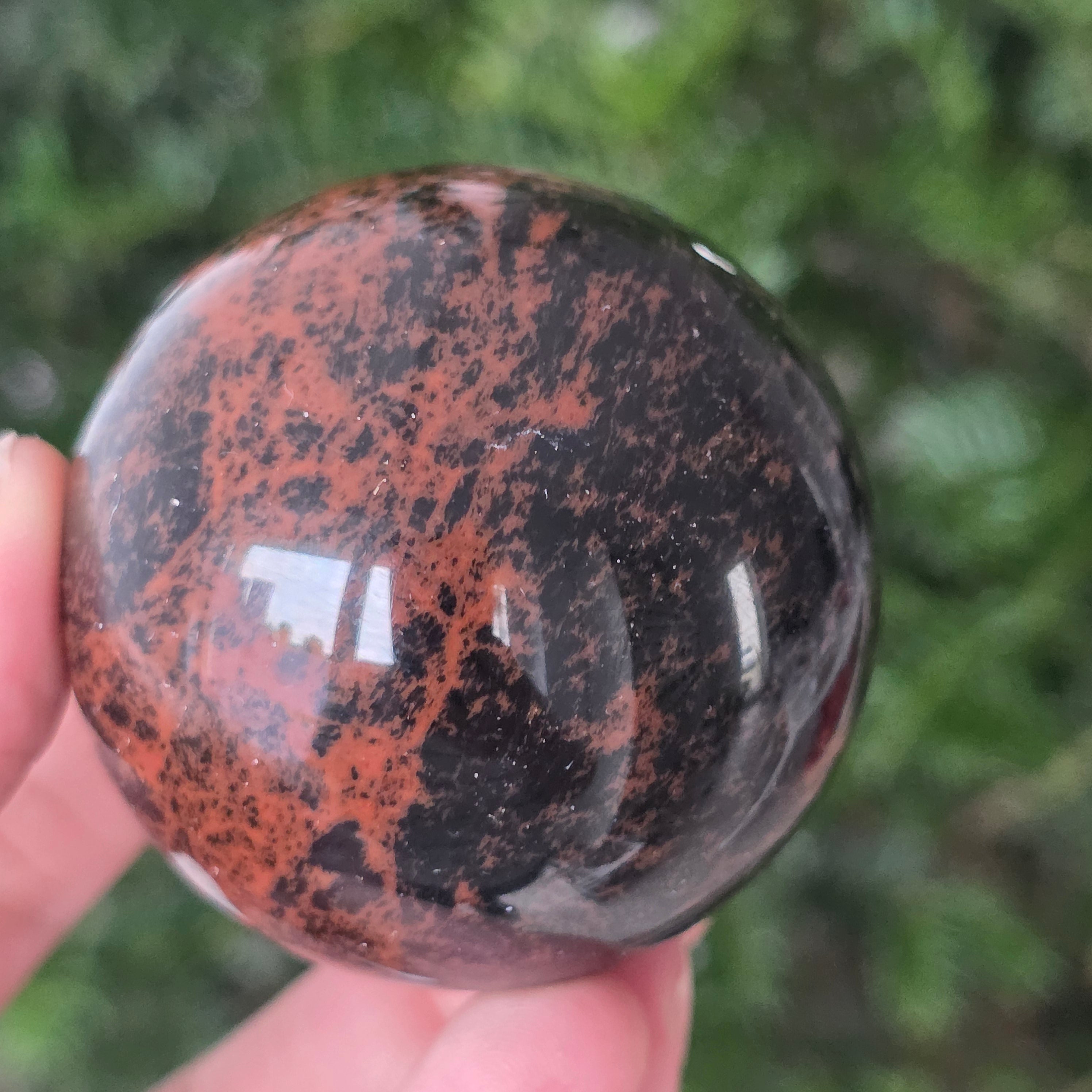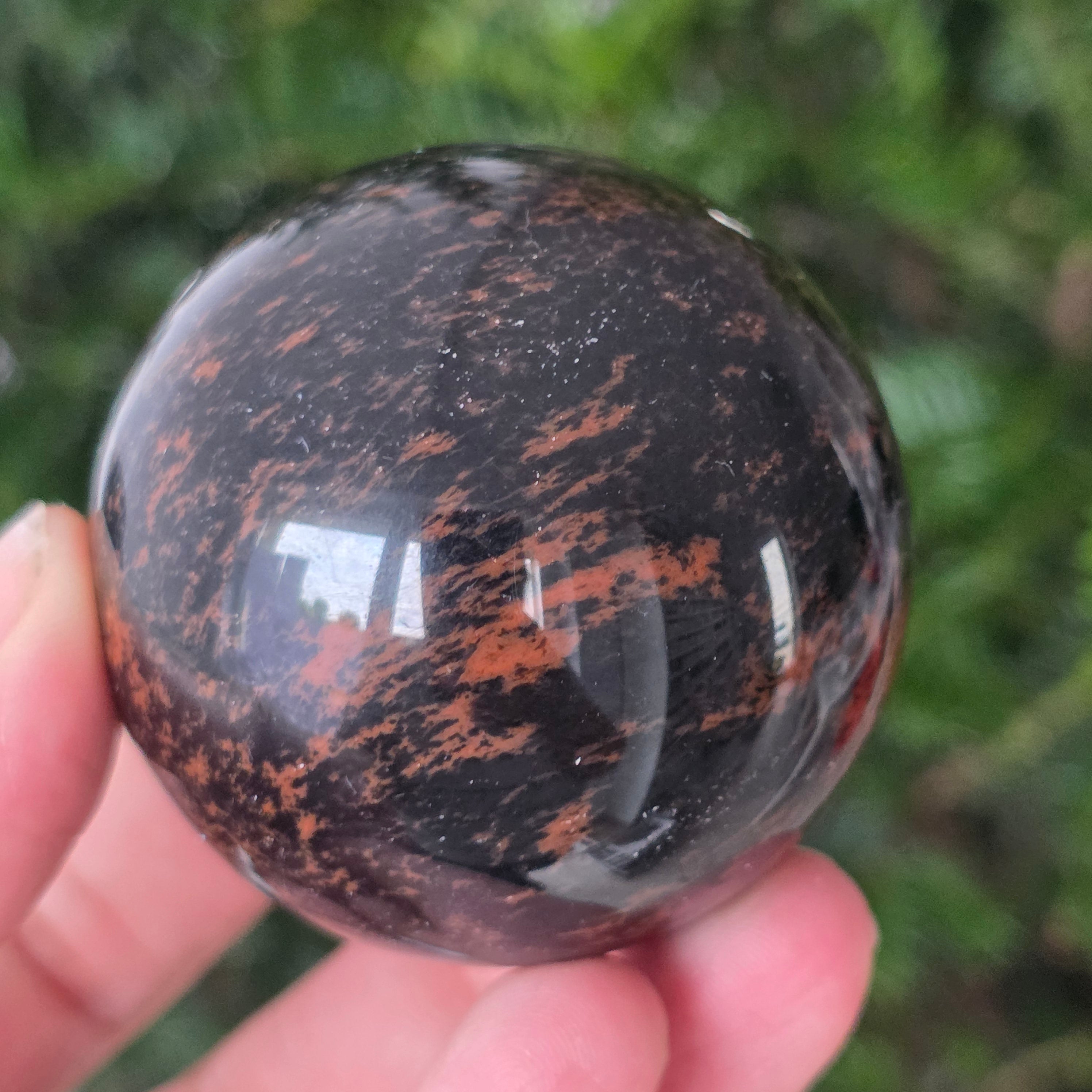 Позволи на тихата сила на Земята да те вдъхнови чрез тази сфера от махагонов обсидиан.