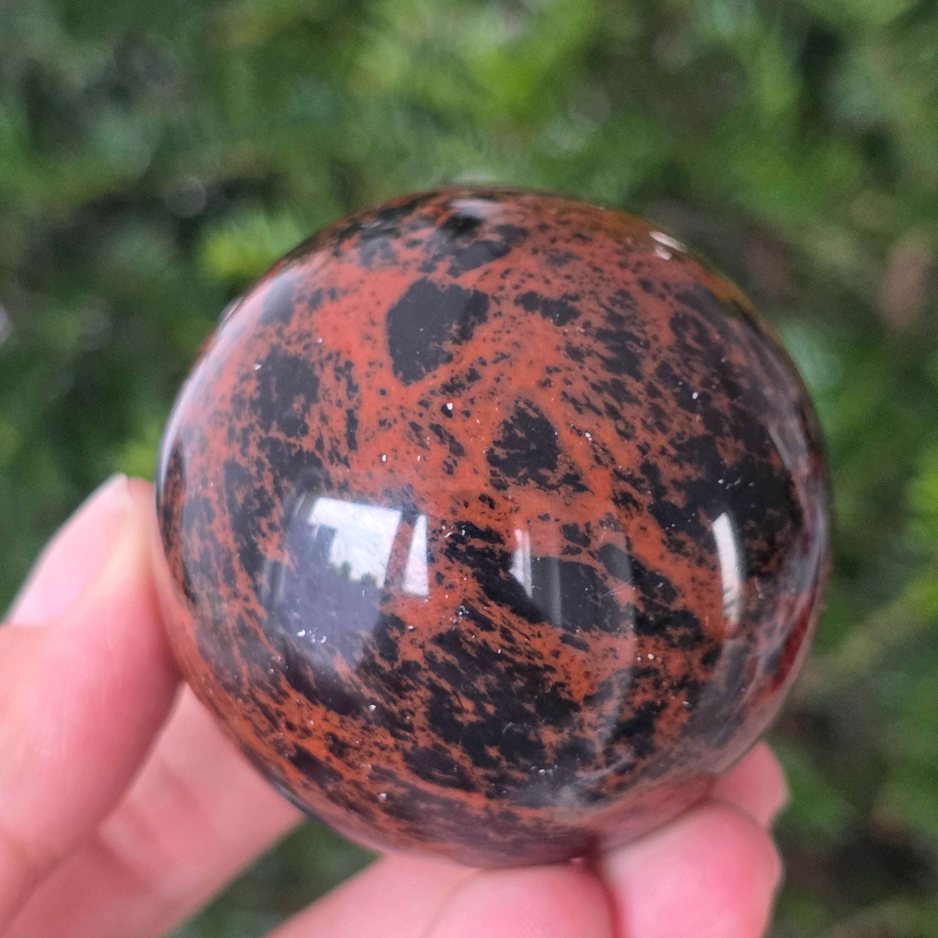 Тази сфера от махагонов обсидиан е въплъщение на първичната сила на Земята — камък на корените, сигурността и вътрешната трансформация.